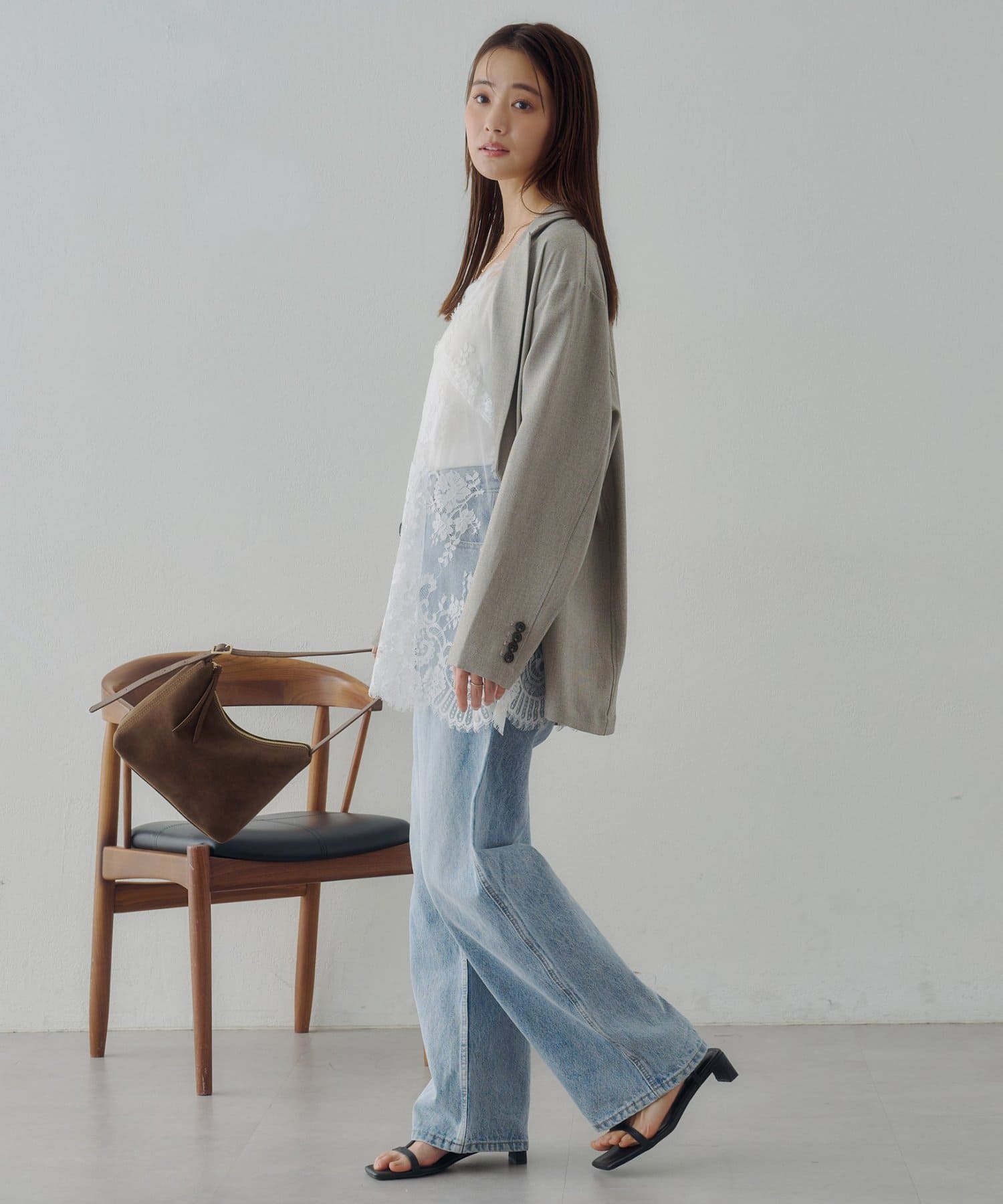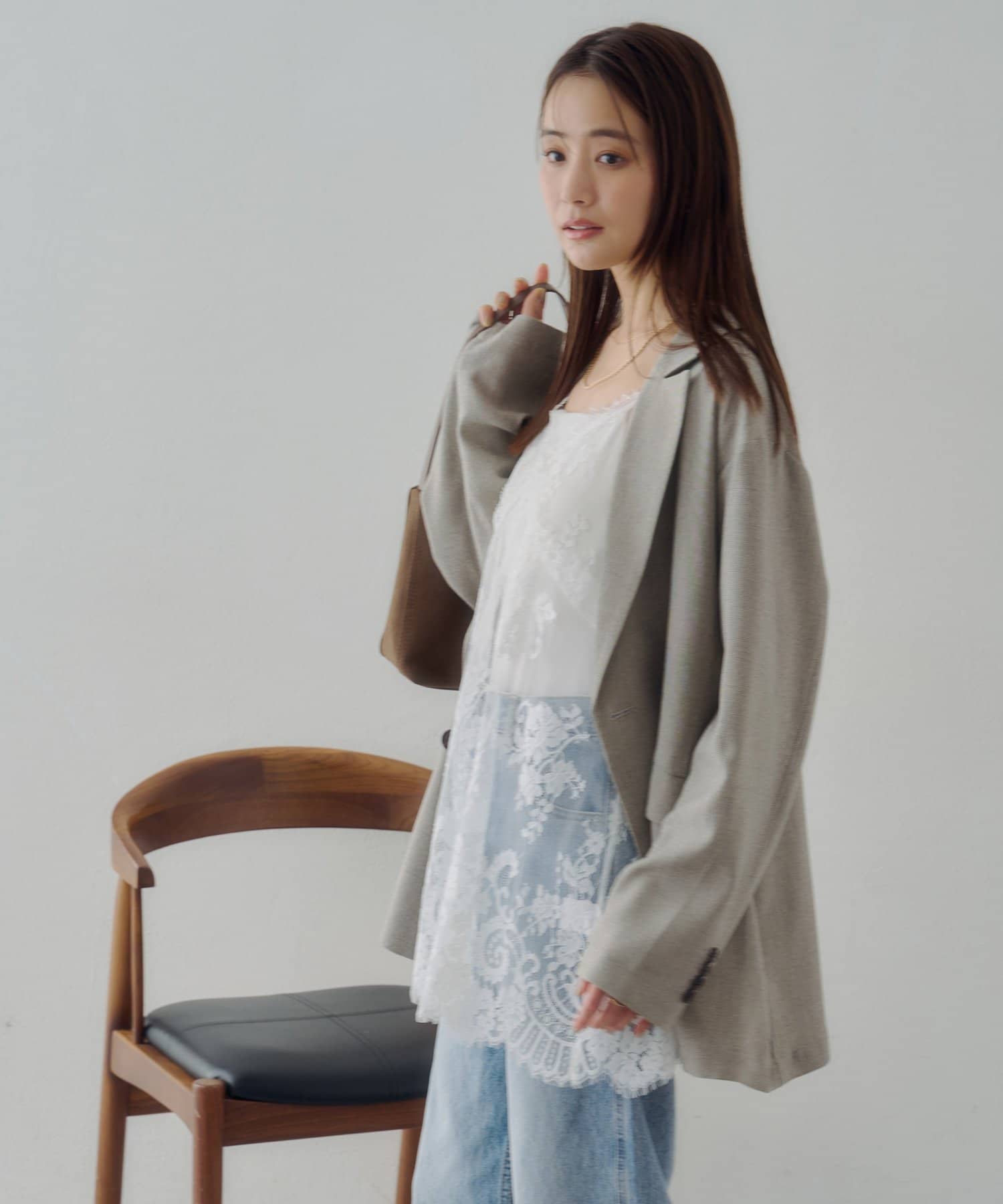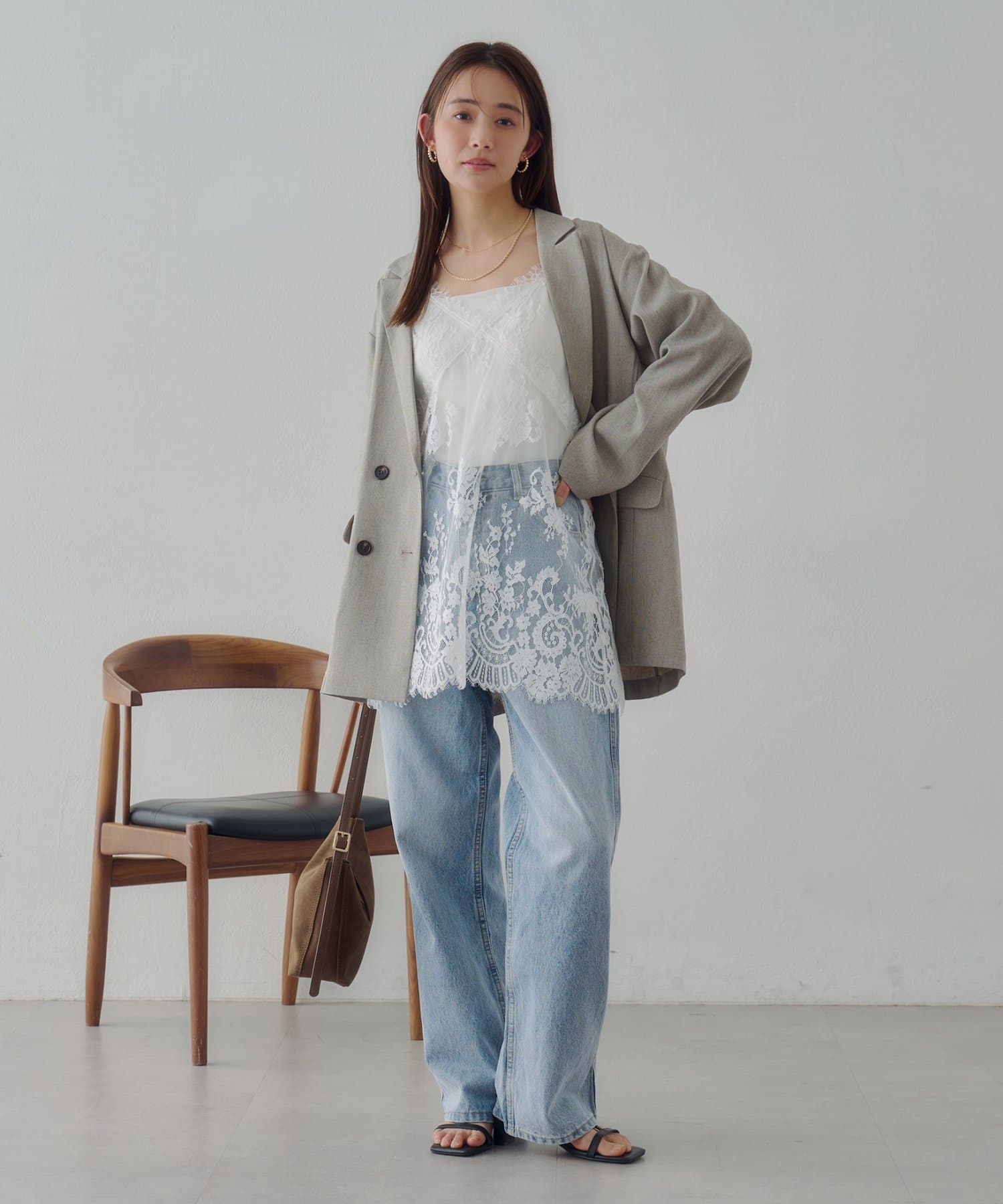 158cmスタッフ:ジャケットやカーディガンを羽織ると裾からちらっとレースが見えてコーディネートのポイントになります。