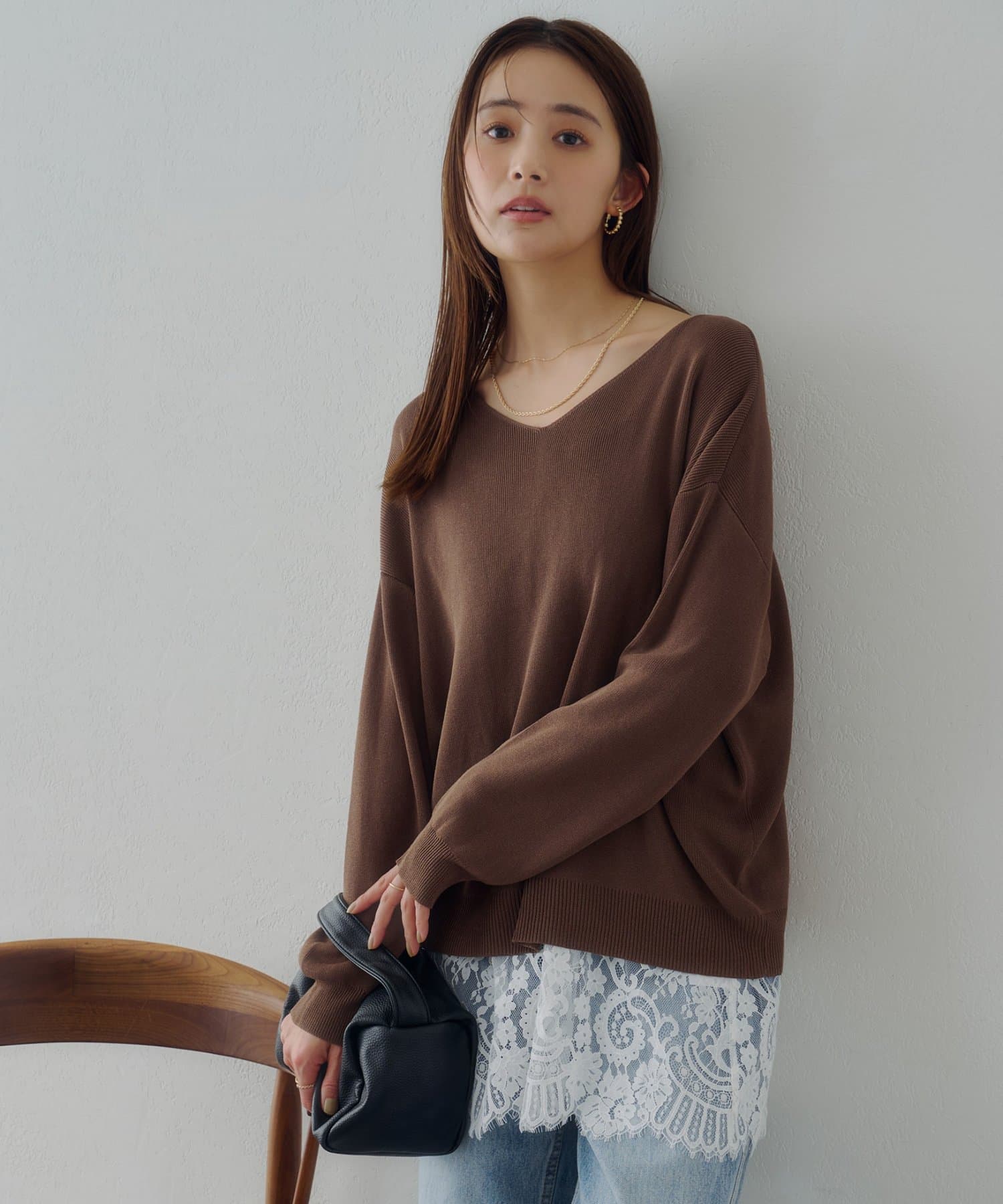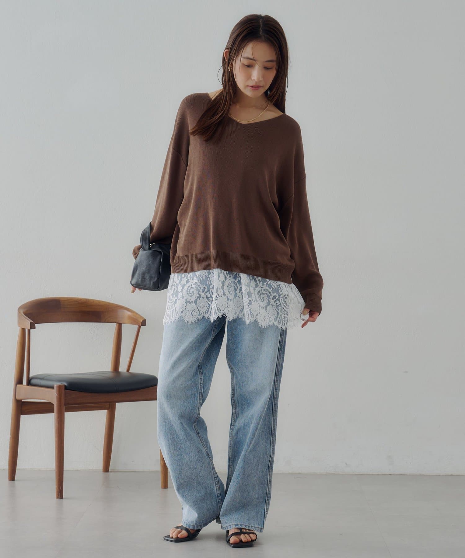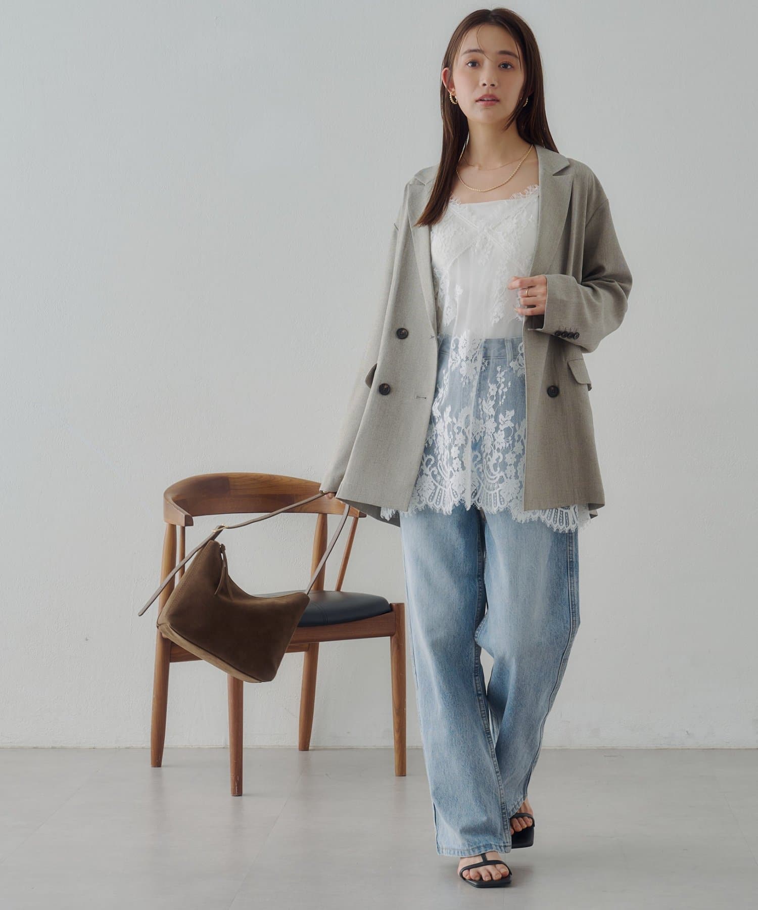 158cmスタッフ:ジャケットやカーディガンを羽織ると裾からちらっとレースが見えてコーディネートのポイントになります。