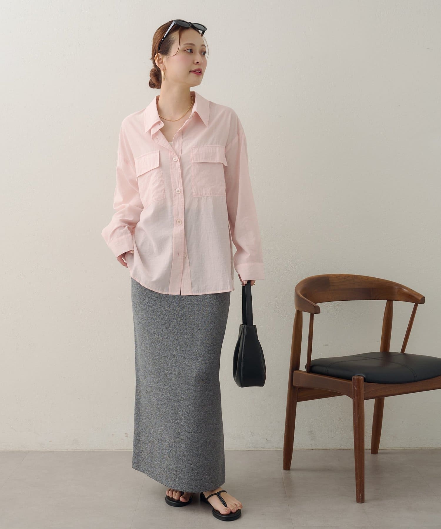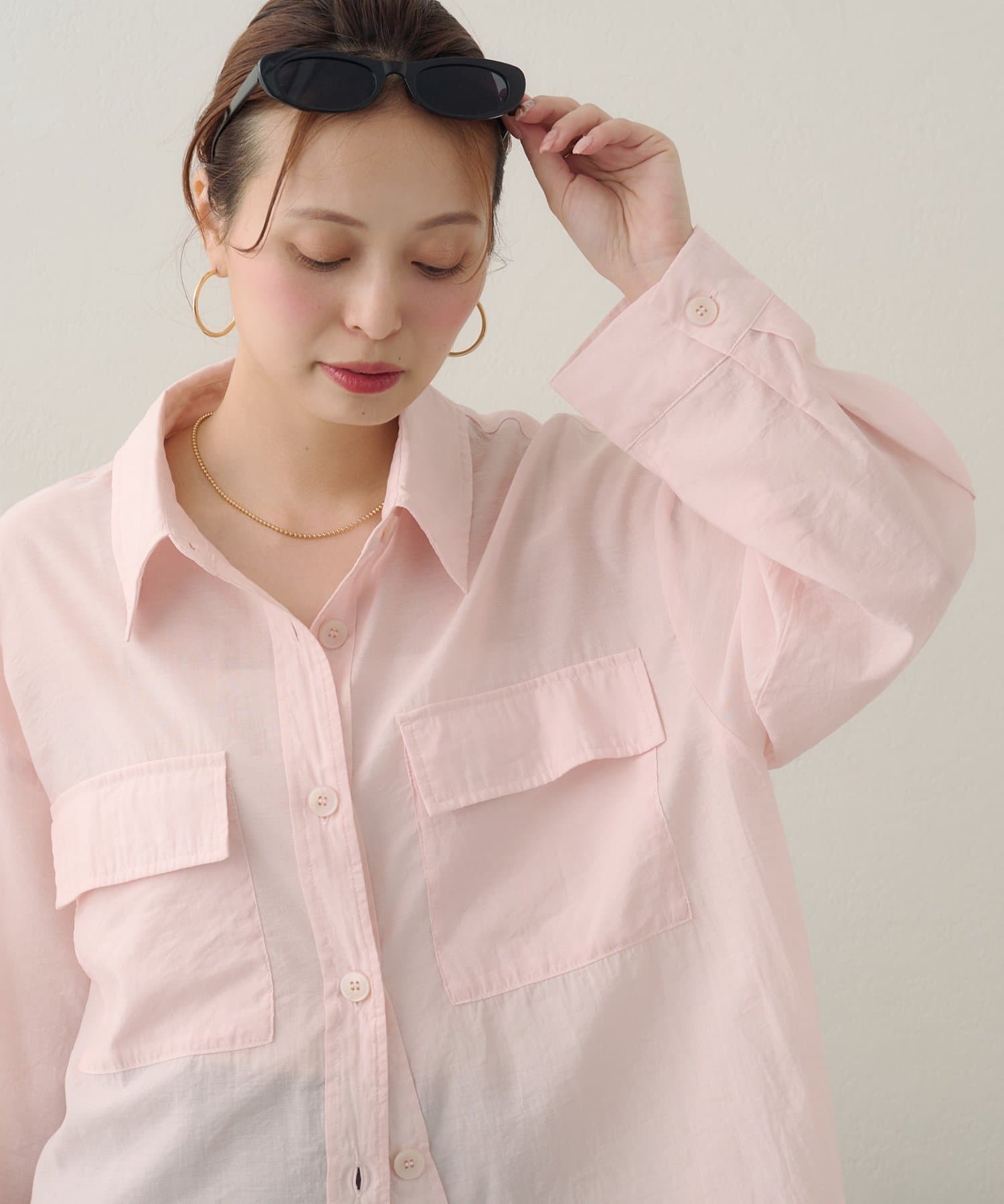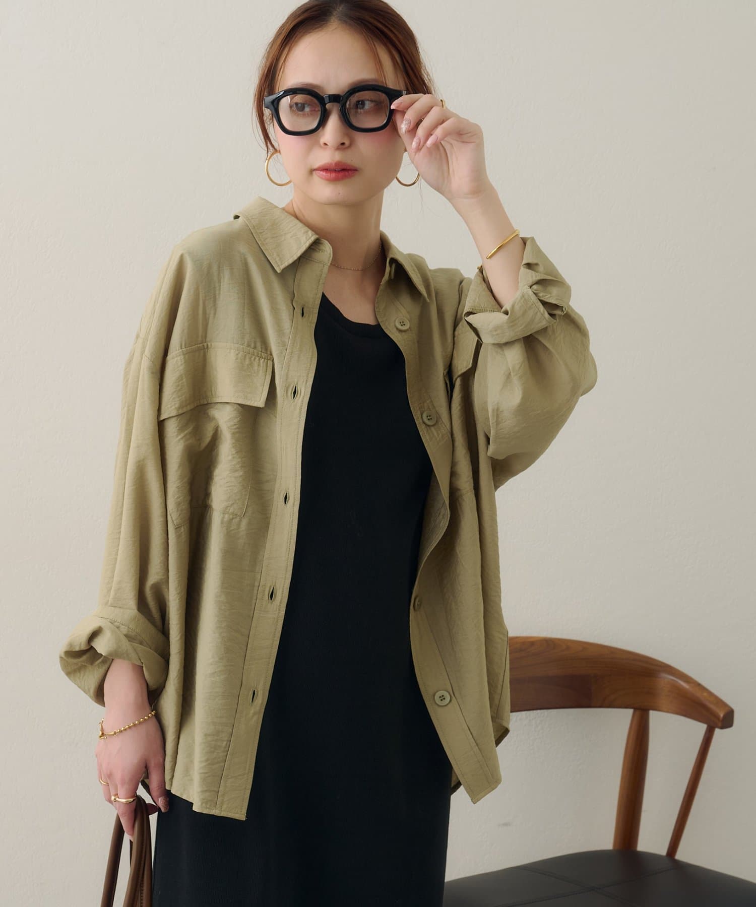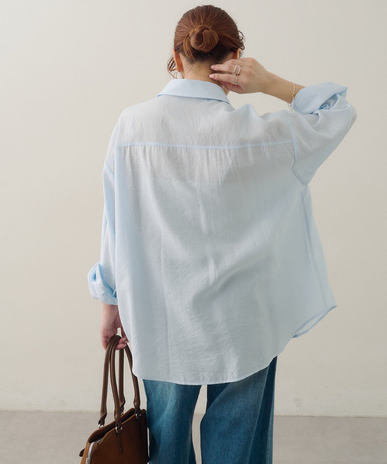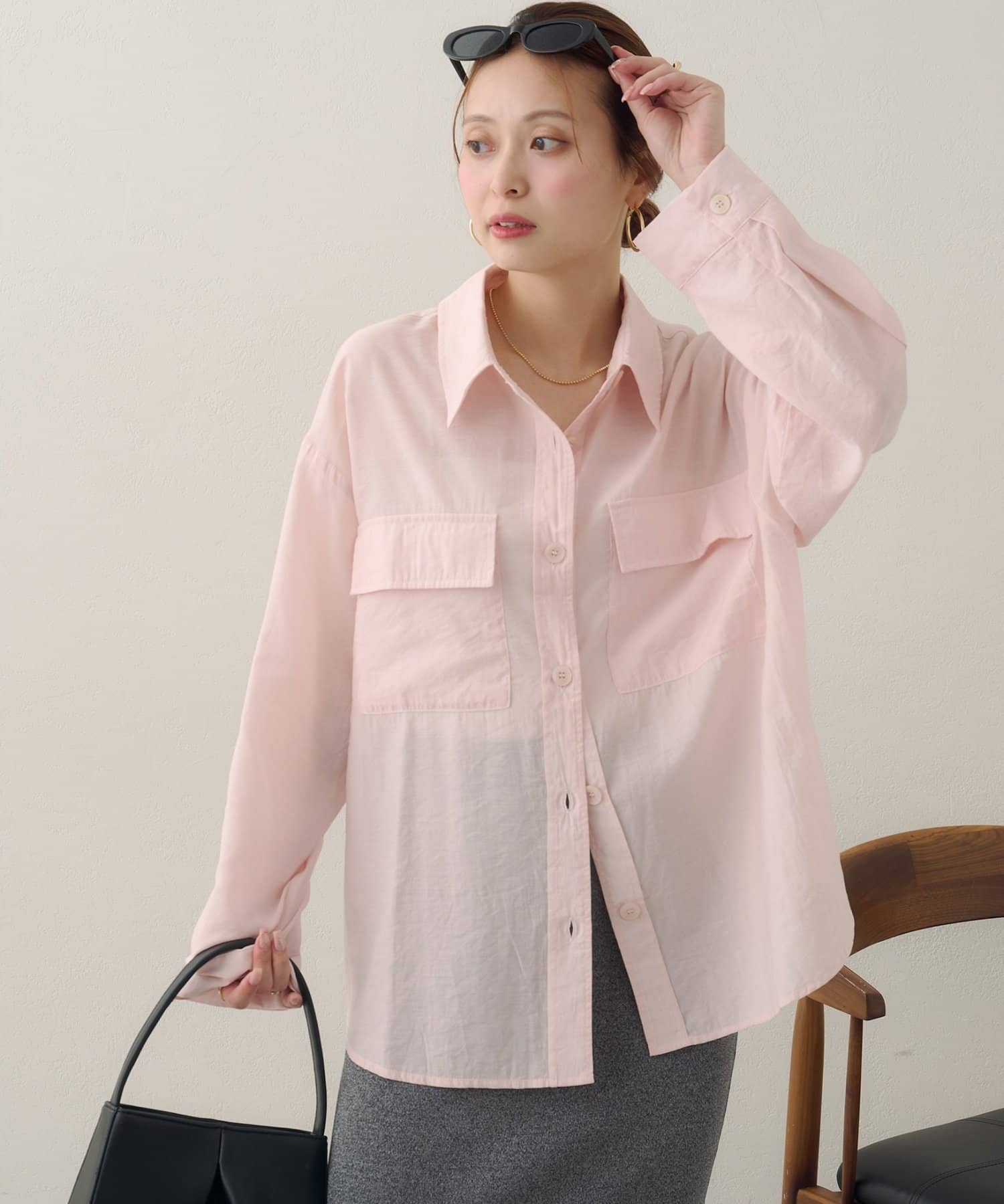 150cmスタッフ:太ももまわりまでカバーするロングな丈感で、細身のパンツとも安心して合わせられます。タンクトップの上からさらりと羽織ったサマースタイルをたくさん楽しみたいです♪袖をまくってラフに着こなすと、こなれ感が出るのでおすすめです◎