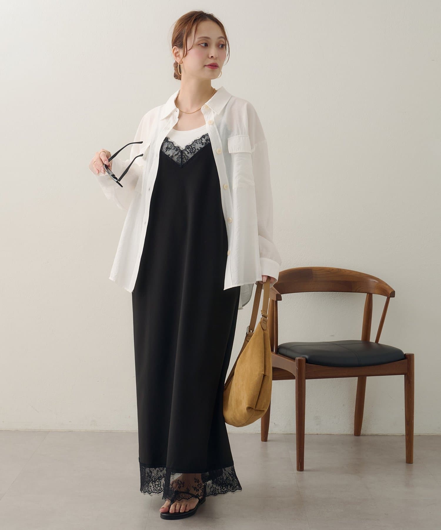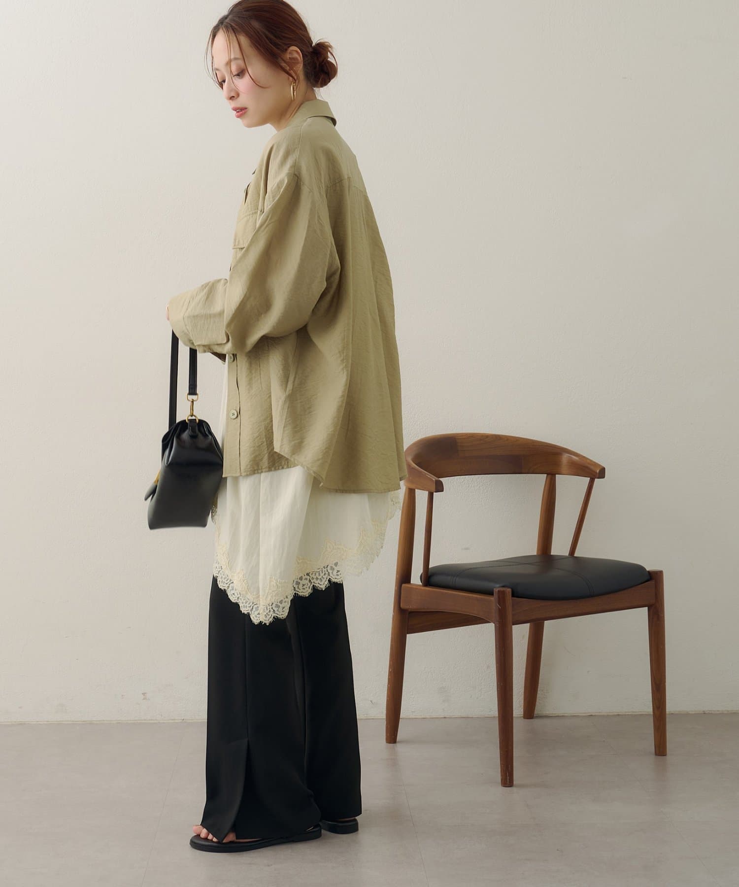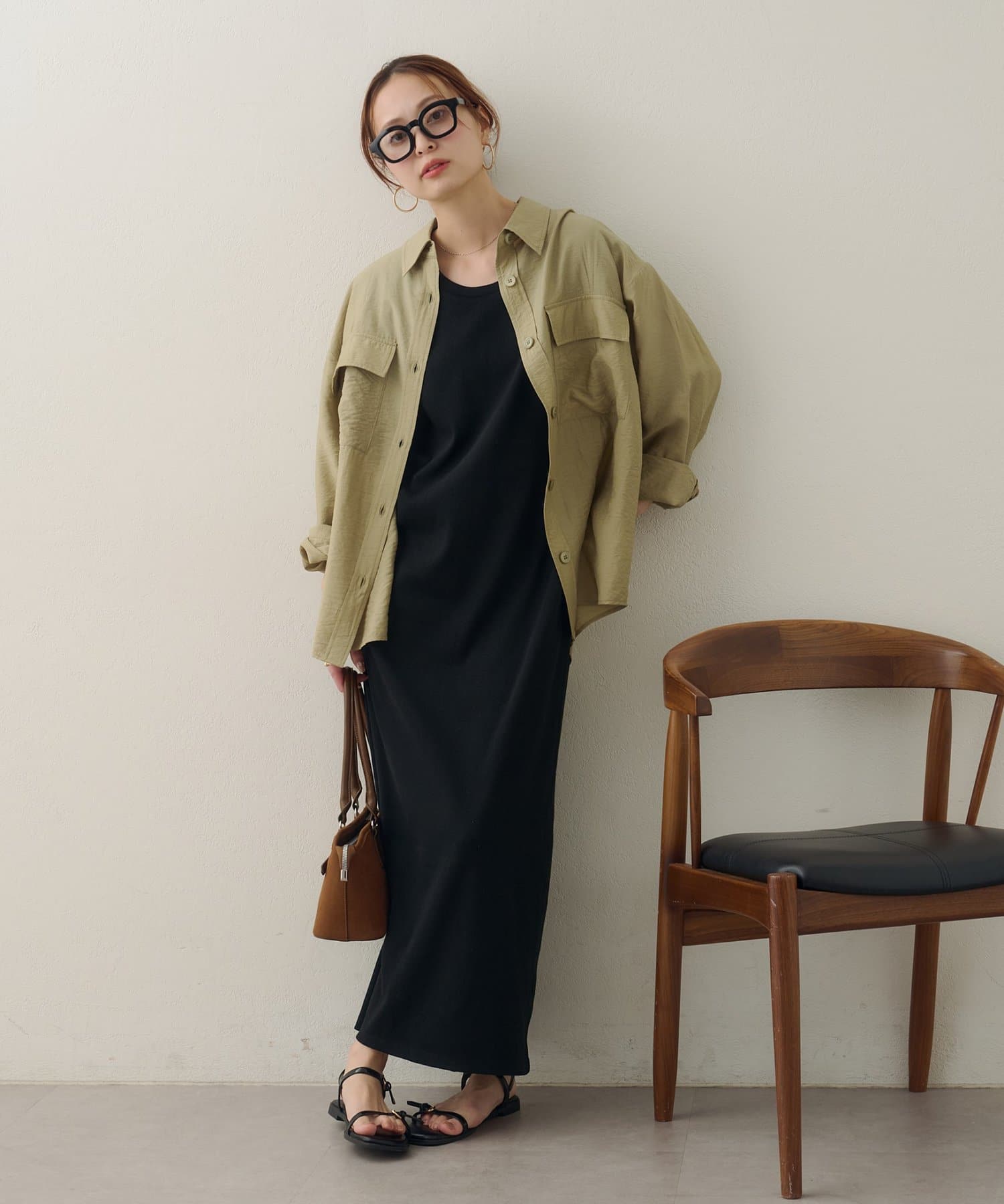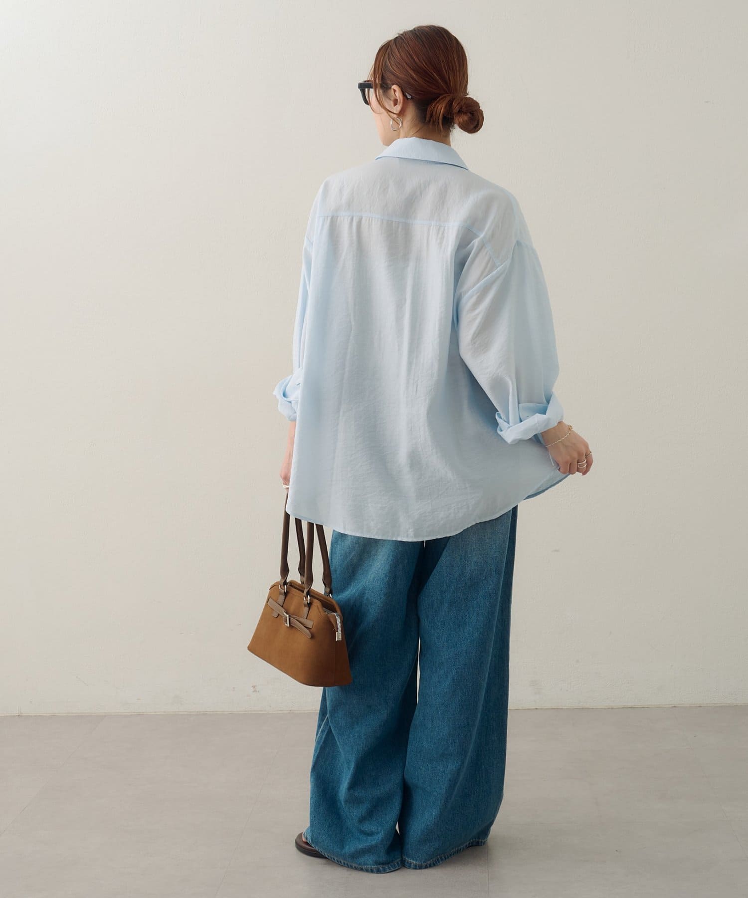 150cmスタッフ:太ももまわりまでカバーするロングな丈感で、細身のパンツとも安心して合わせられます。タンクトップの上からさらりと羽織ったサマースタイルをたくさん楽しみたいです♪袖をまくってラフに着こなすと、こなれ感が出るのでおすすめです◎