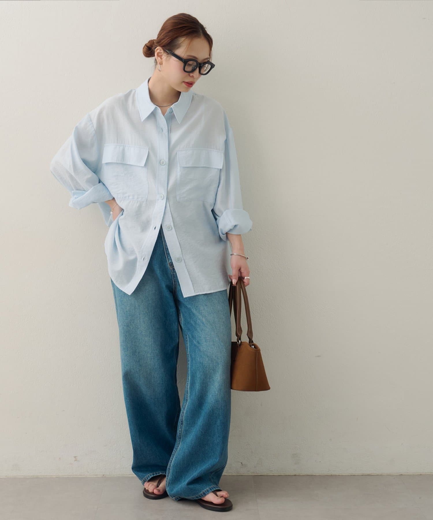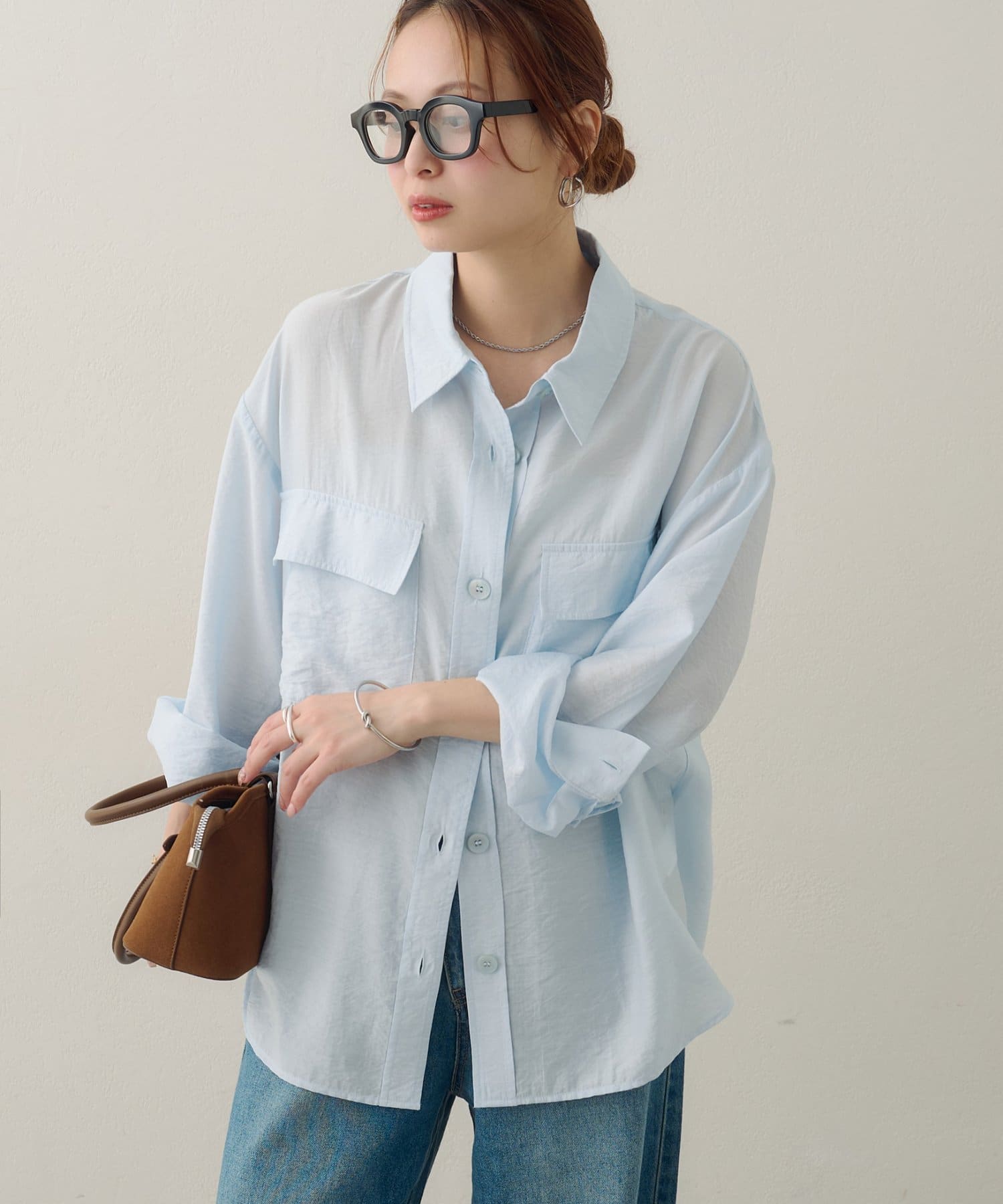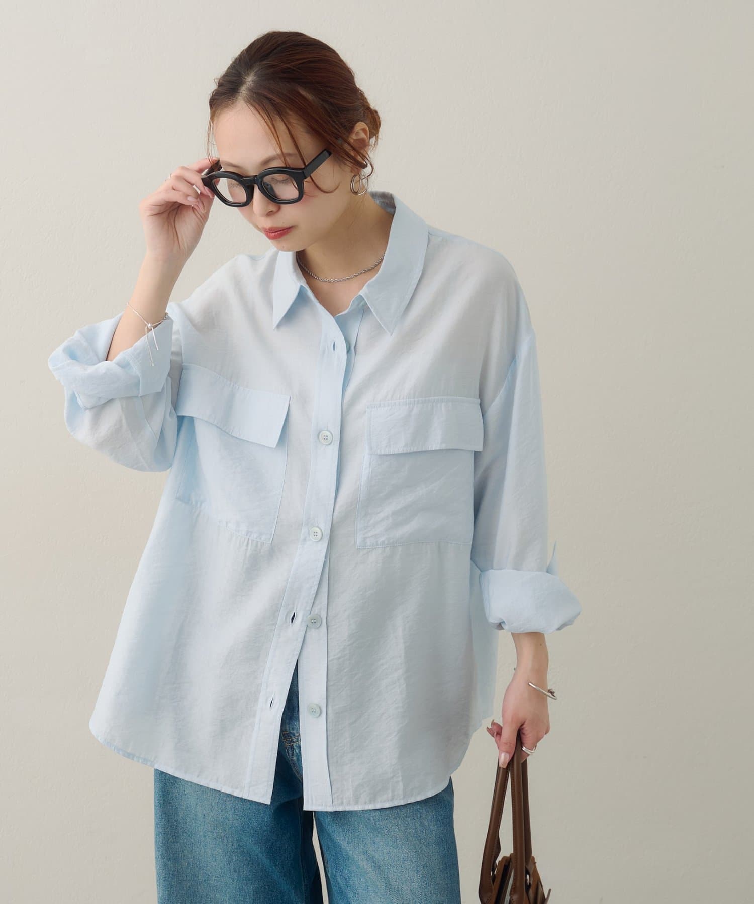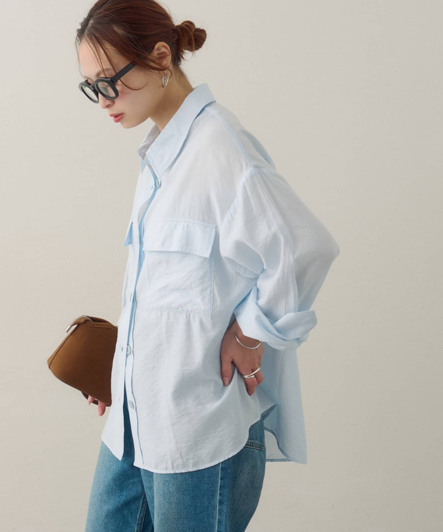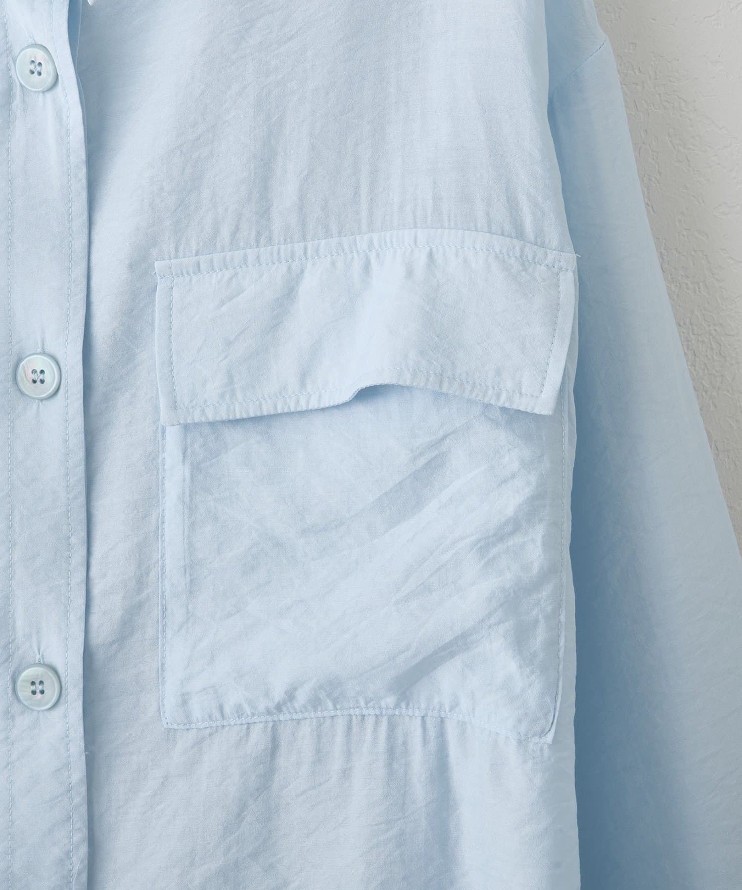 166cmスタッフ:お尻がすっぽり隠れる丈感なので、ロングスカートやワイドパンツともバランスが取りやすいです。一捻り効いたフロントのポケットと大き目ボタンが、コーディネートのアクセントになってくれます!薄手素材で風通しもよいので、暑い夏にもとことん頼りたいです!!
