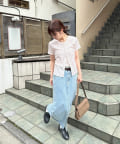 150cmスタッフ:コンパクトなサイズ感がトレンド感ばっちりです!ワイドパンツと相性◎
