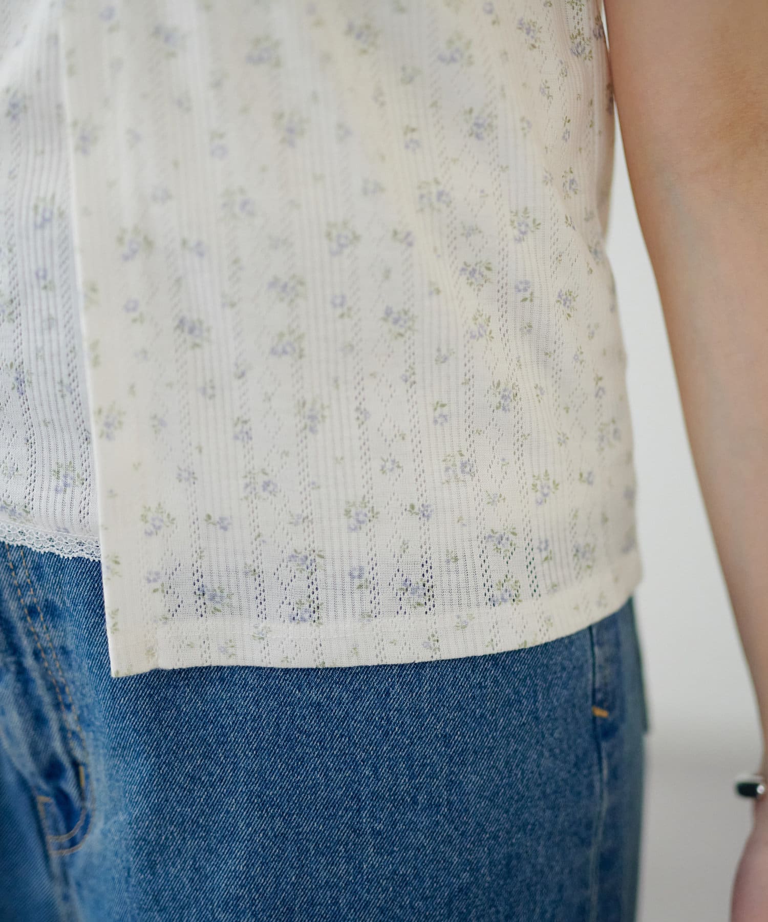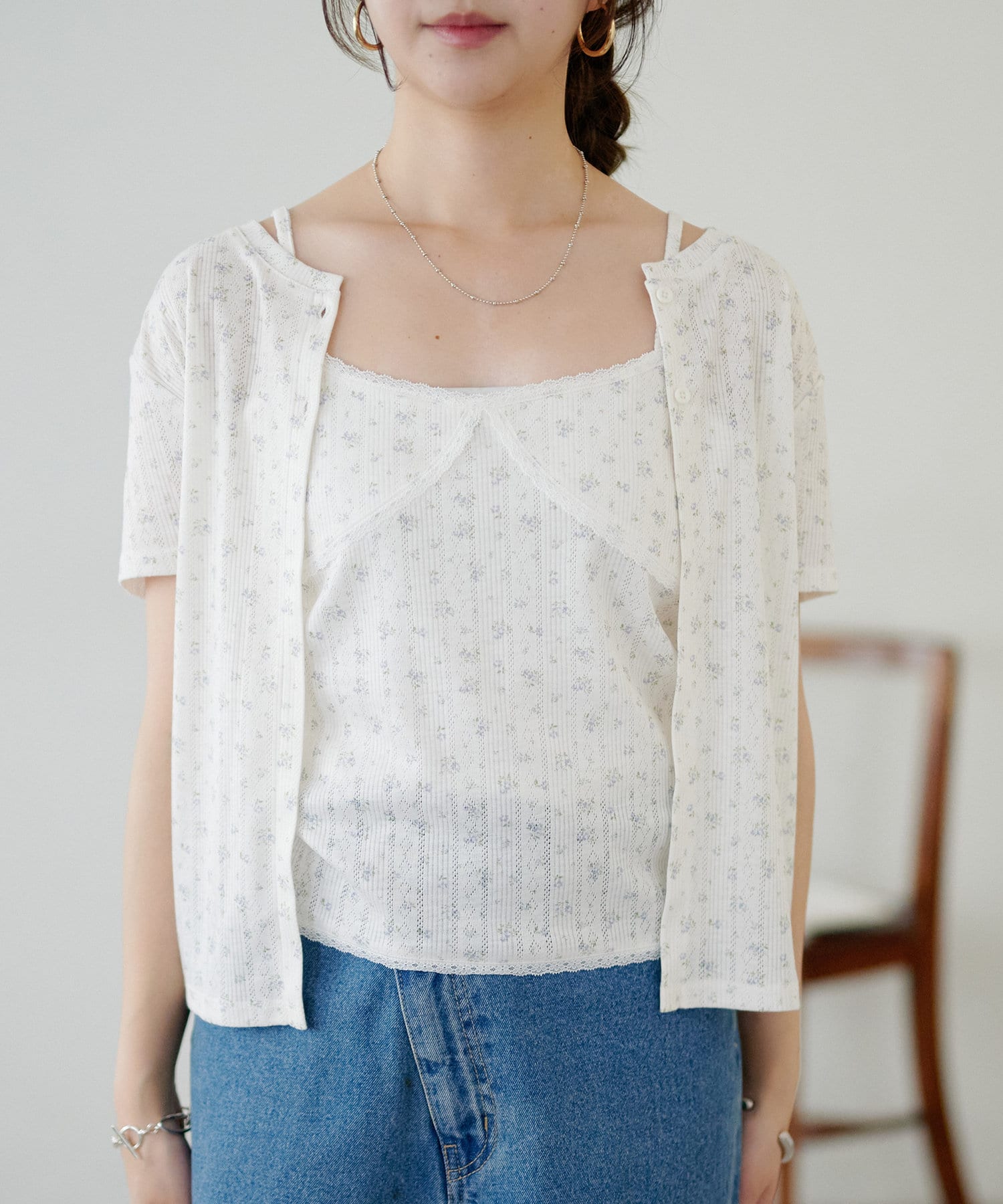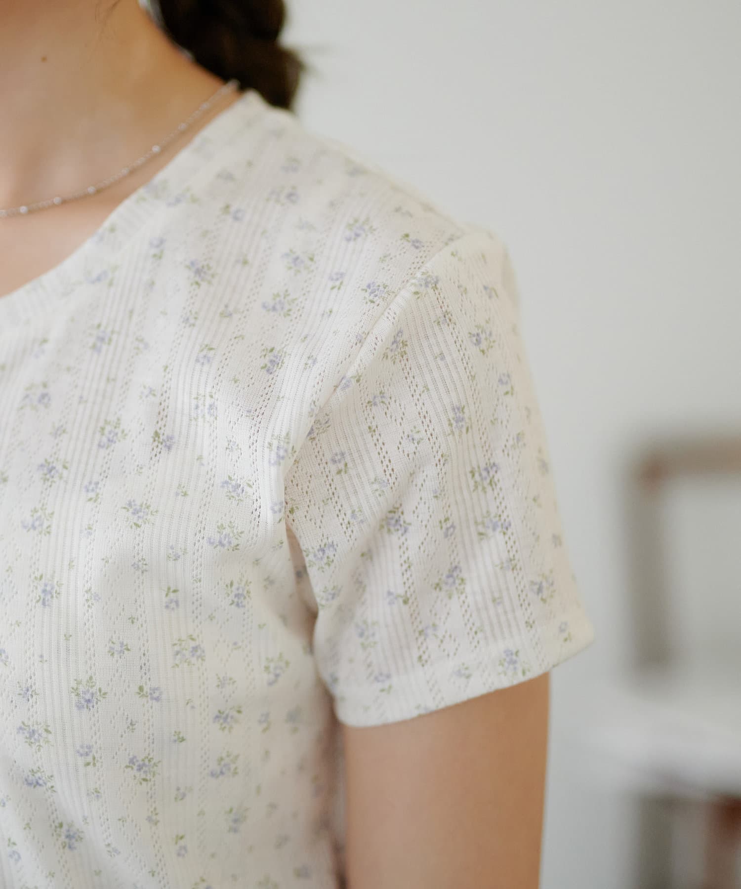 TOP > OUTLET > レディース > トップス > Tシャツ/カットソー > 【Discoat】【umm.】小花柄パターンメッシュアンサンブル