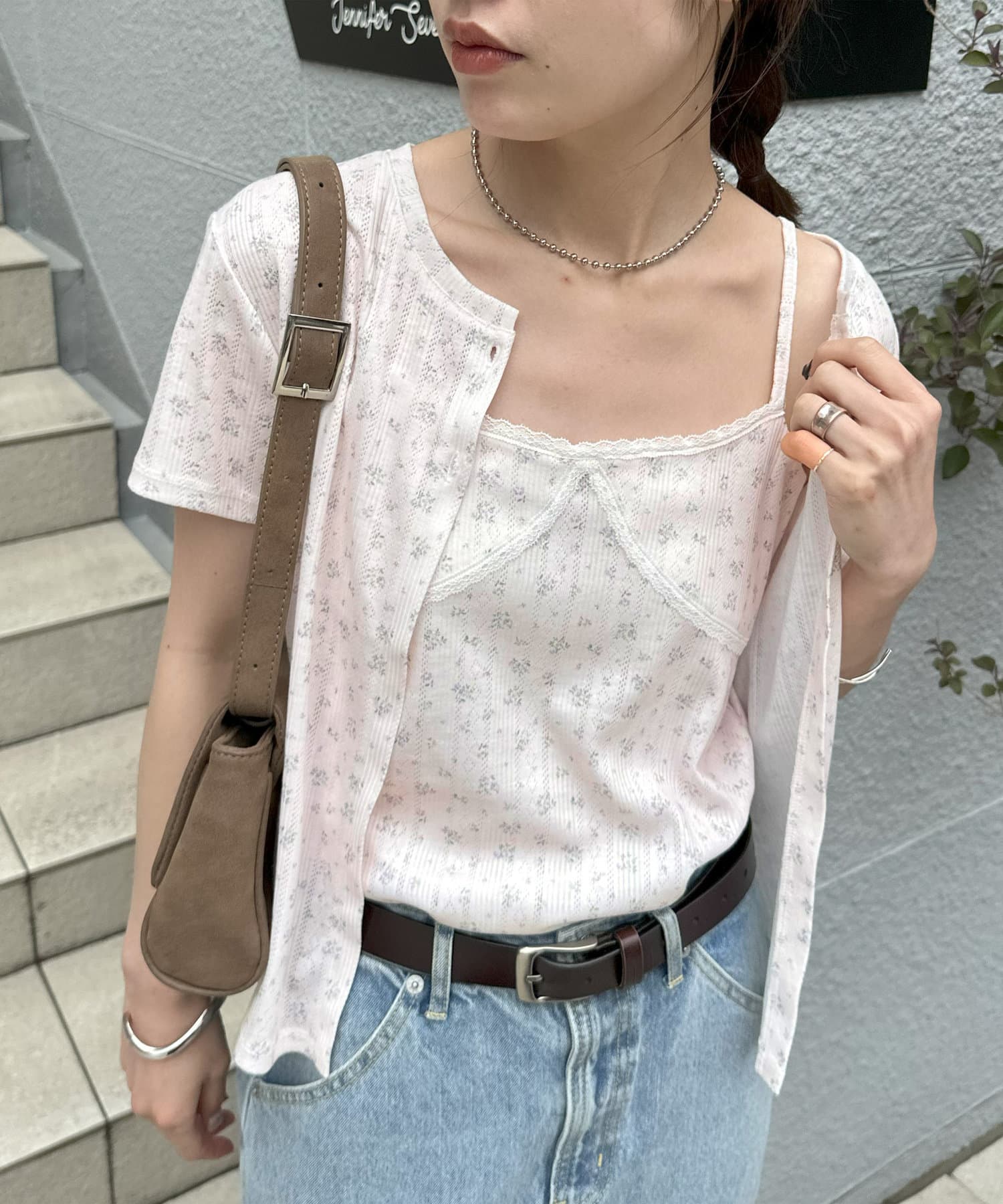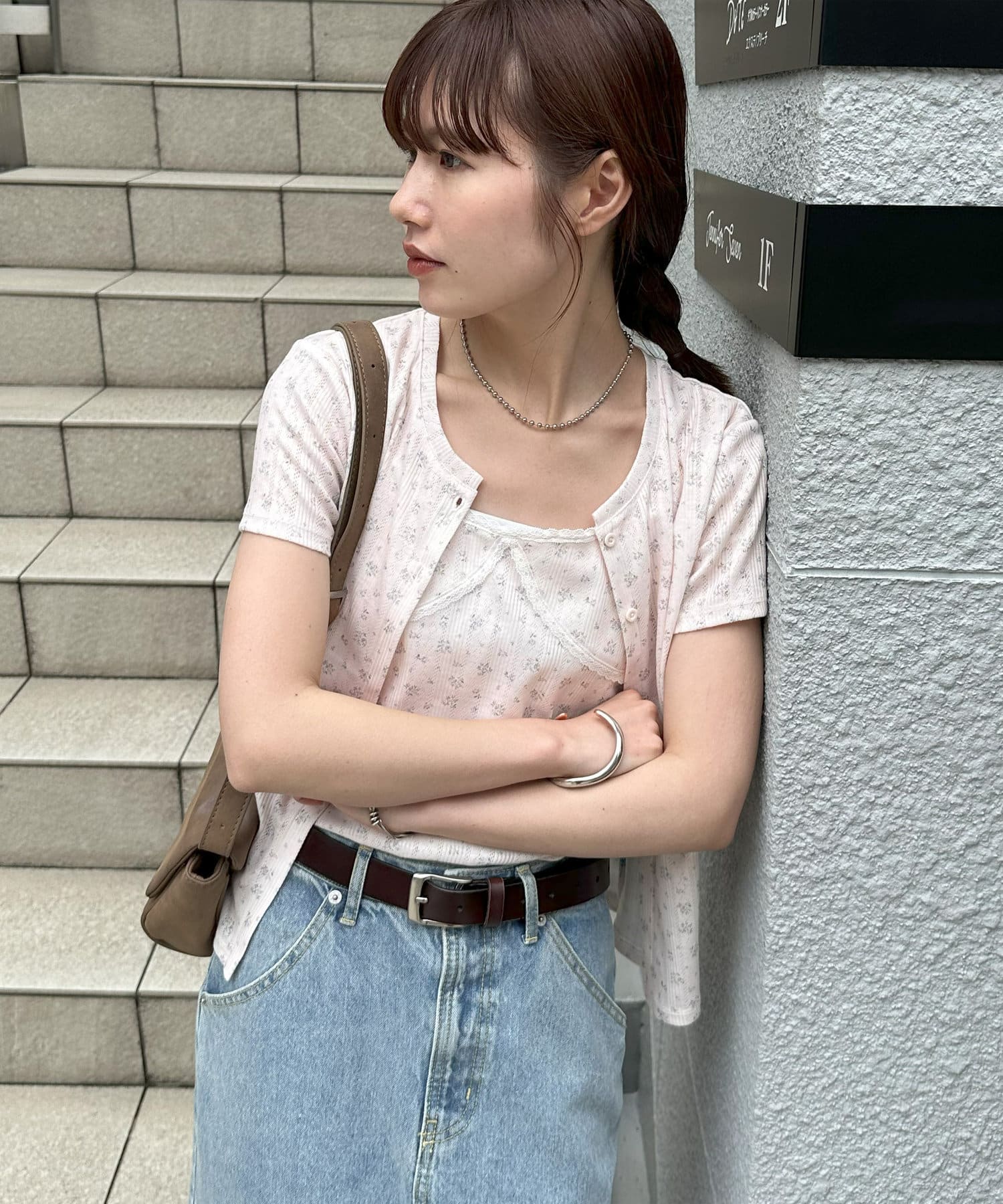 カーディガンとキャミソールのセットで、着こなし方は自由自在です。