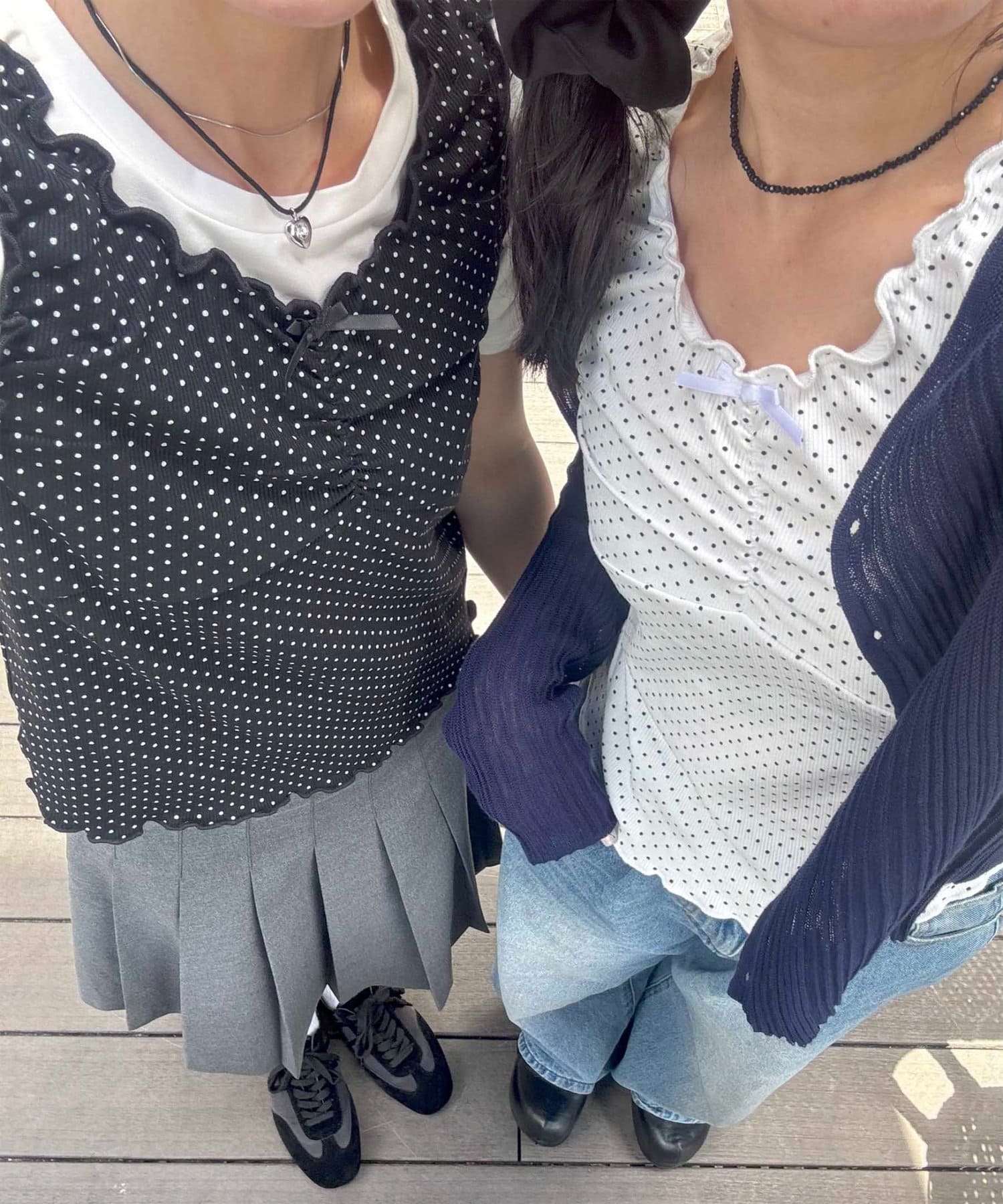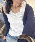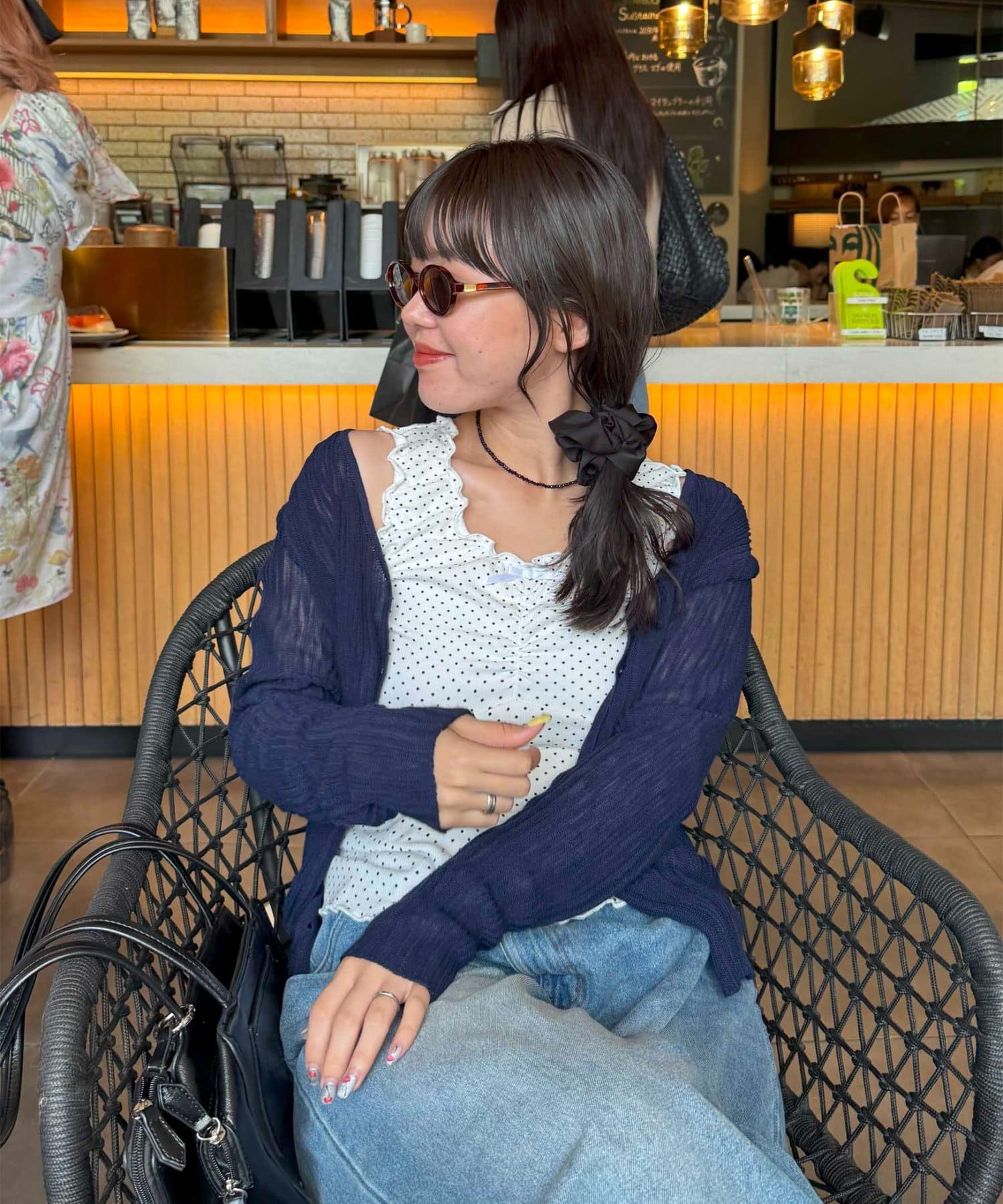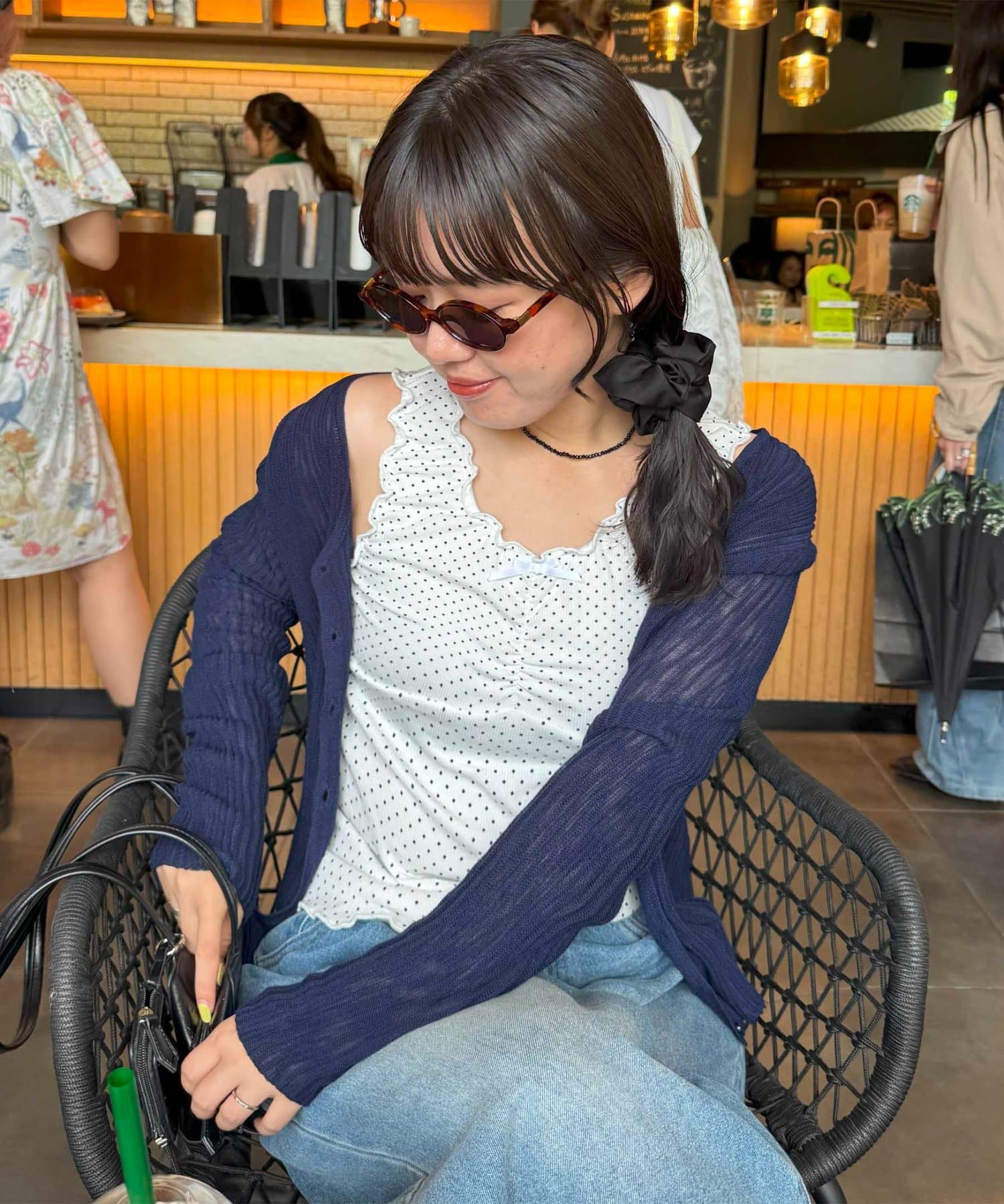 165cmスタッフ:カーディガンと合わせても、メロー部分やリボンがポイントとなってコーディネートが華やかになります!