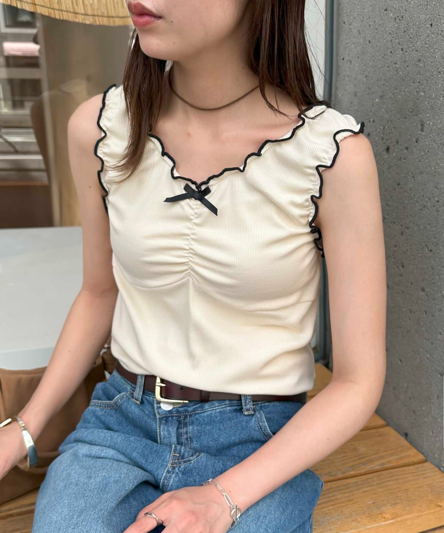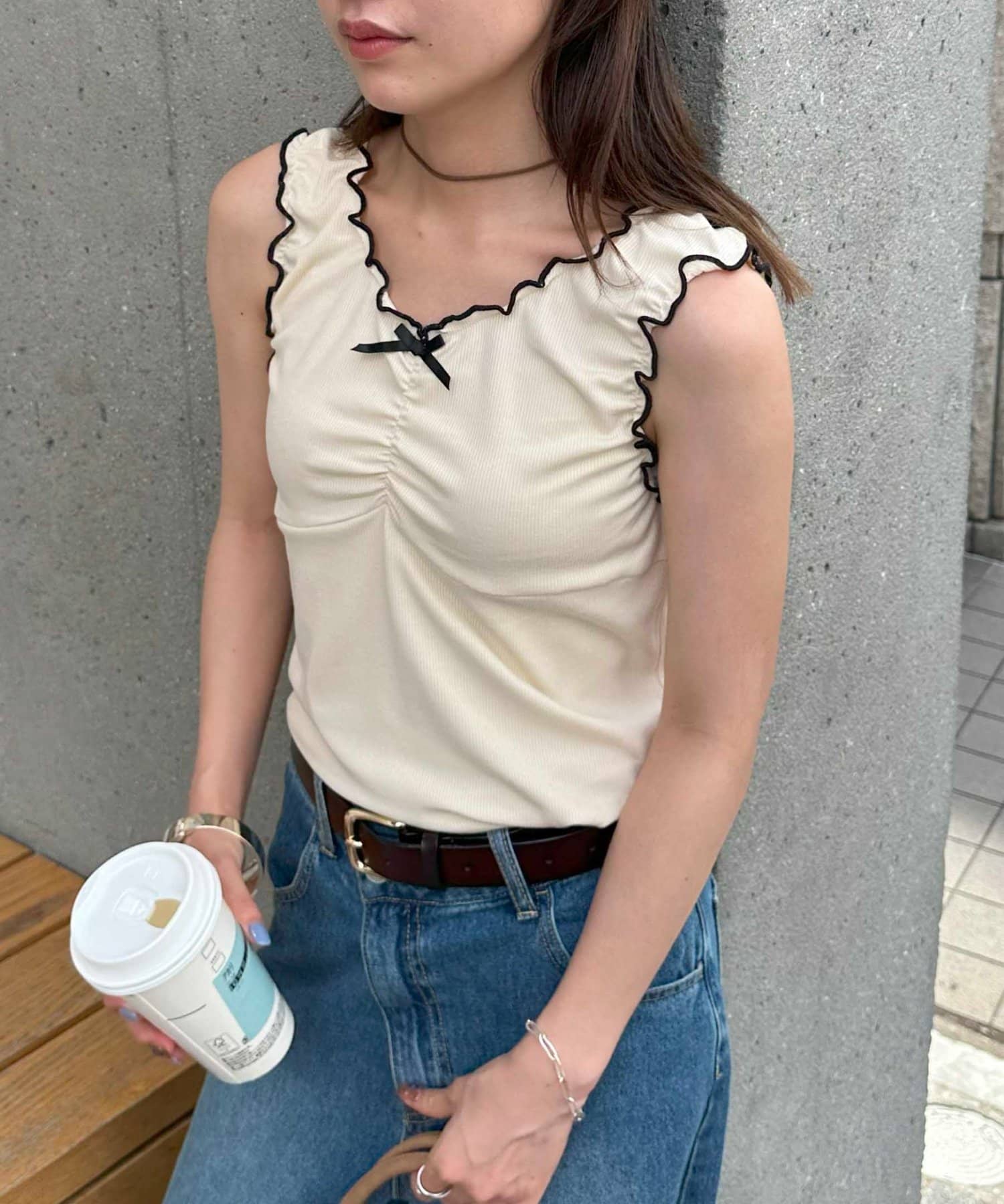 TOP > OUTLET > レディース > トップス > タンクトップ > 【Discoat】【umm.】メロー前リボンタンク