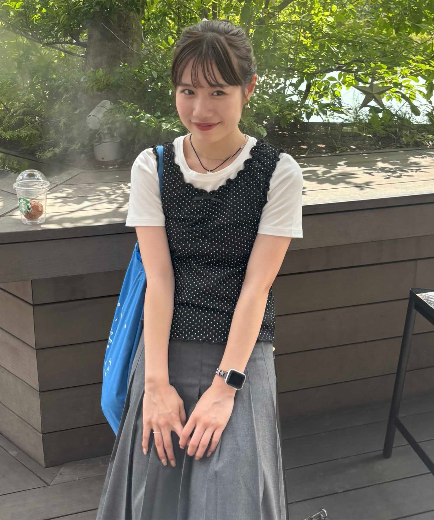 150cmスタッフ:一枚で着てもインナー感が出ないのが嬉しい!胸元にもゴムが入っているので、かがんでもインナーが見えることがなく安心です◎