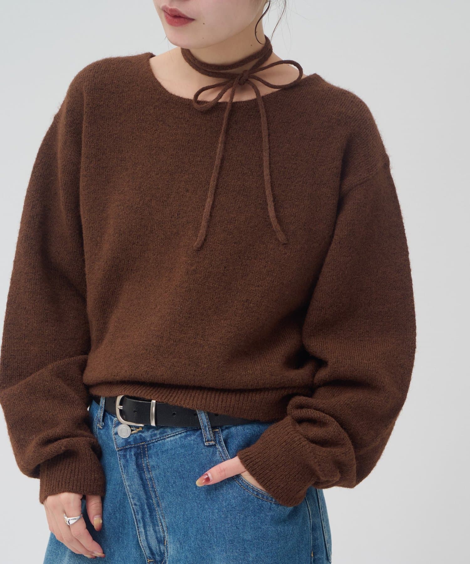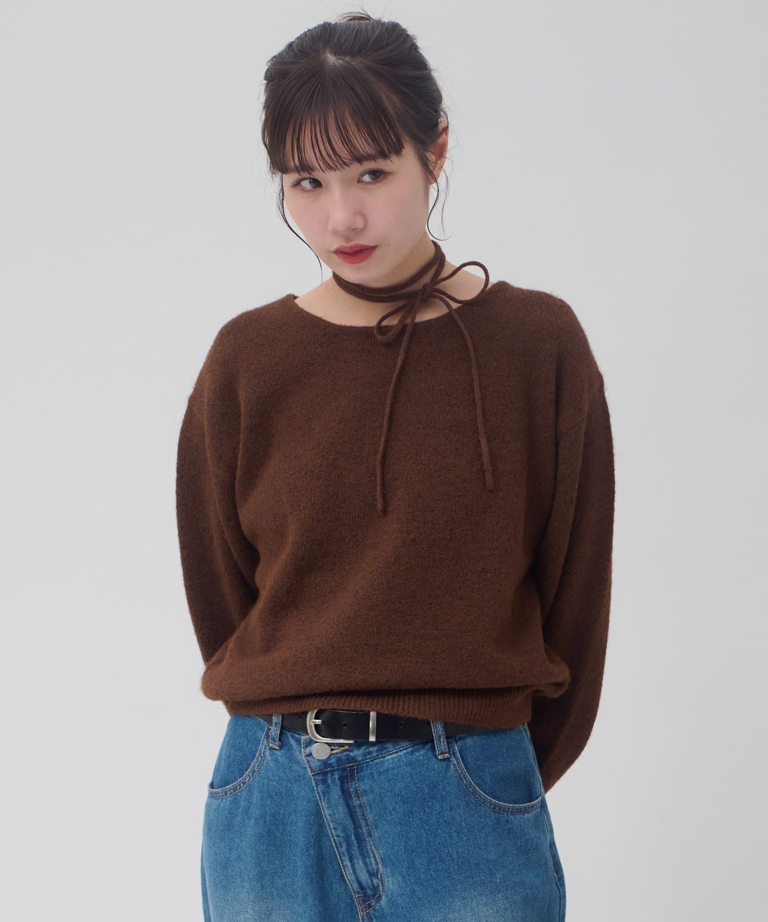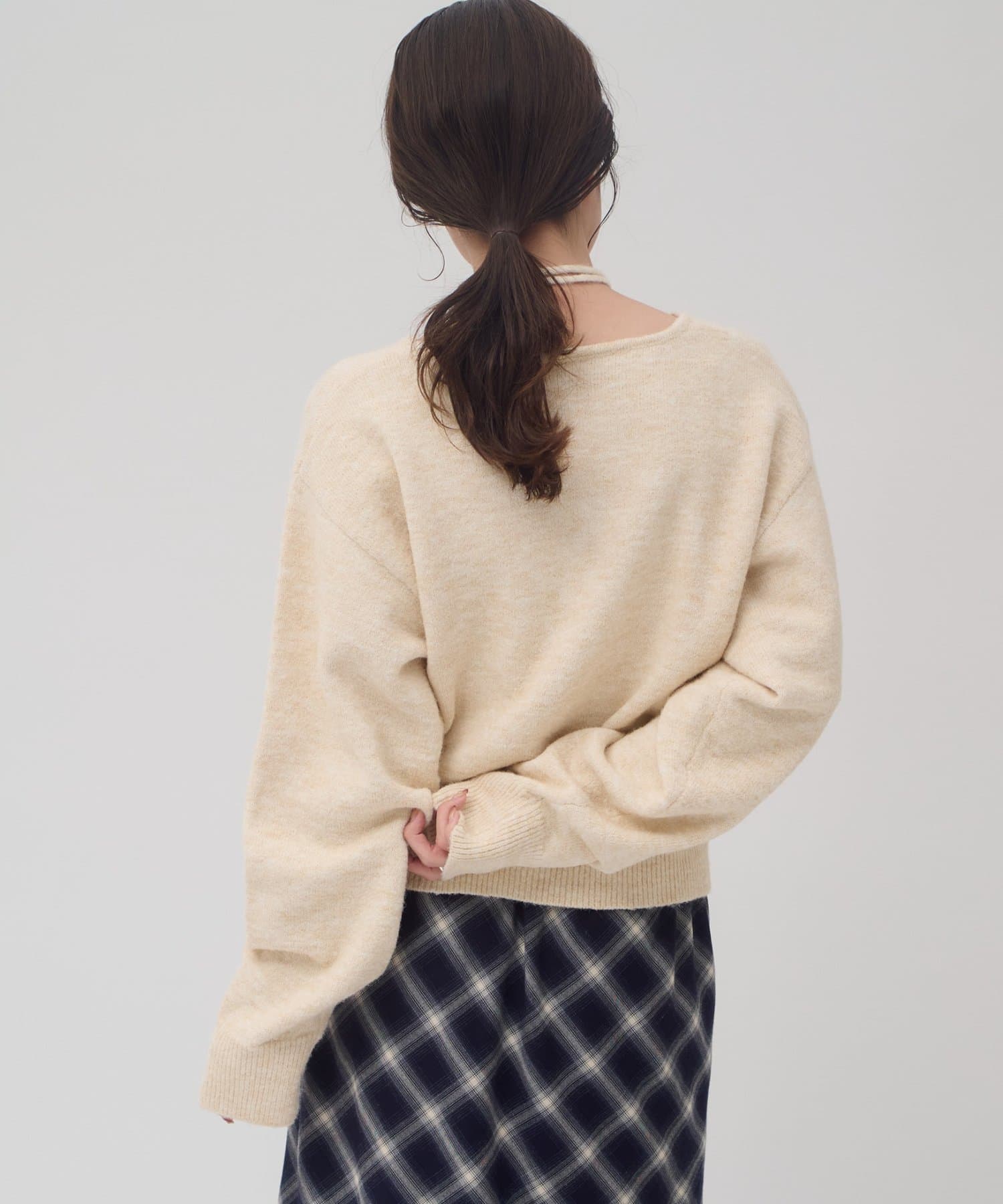 チョーカーと外せば、シンプルなニットプルオーバーとしてコーデを楽しめます!