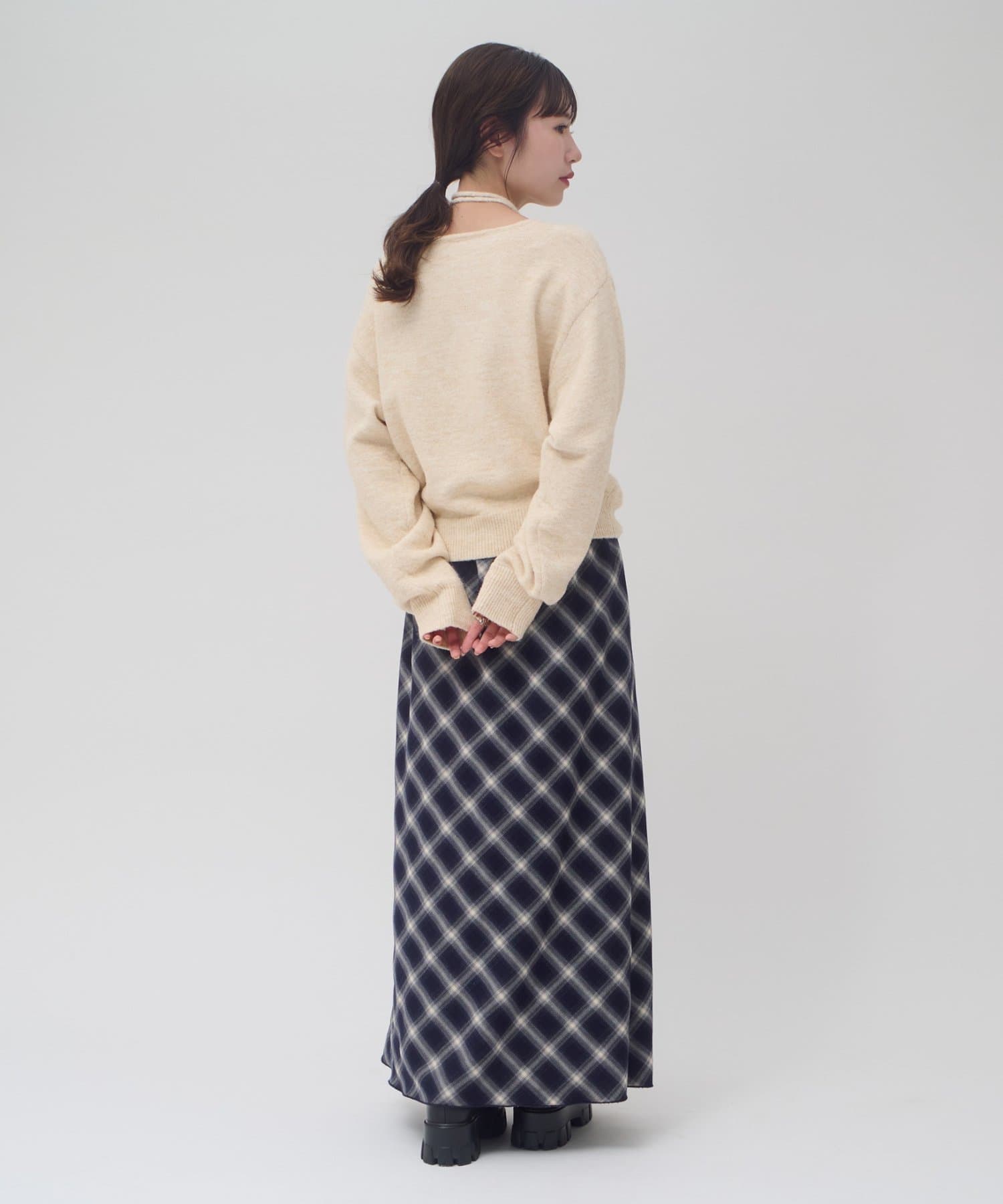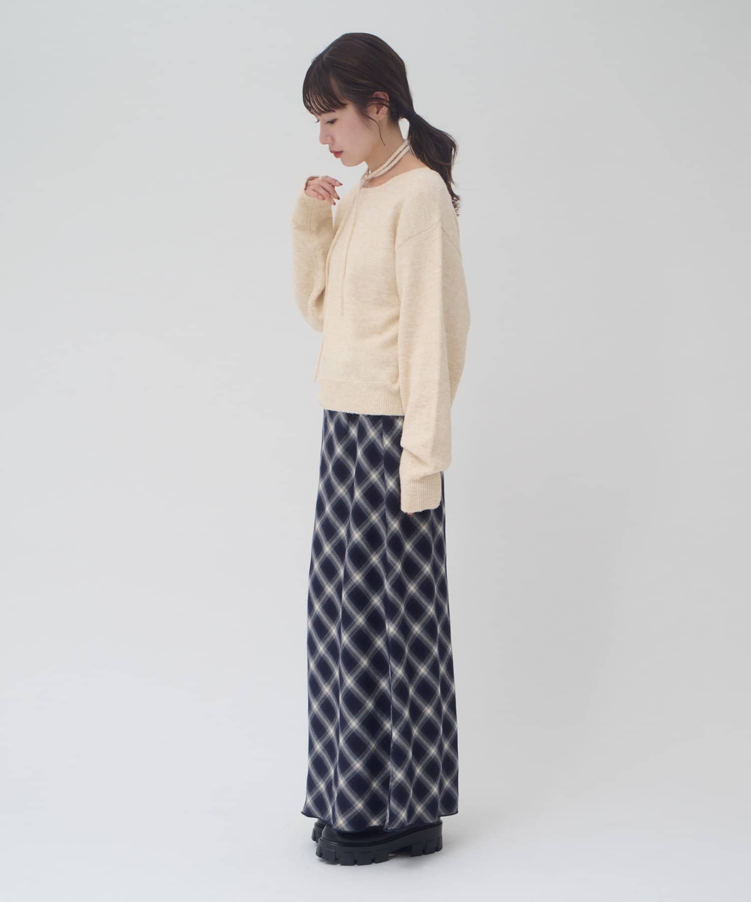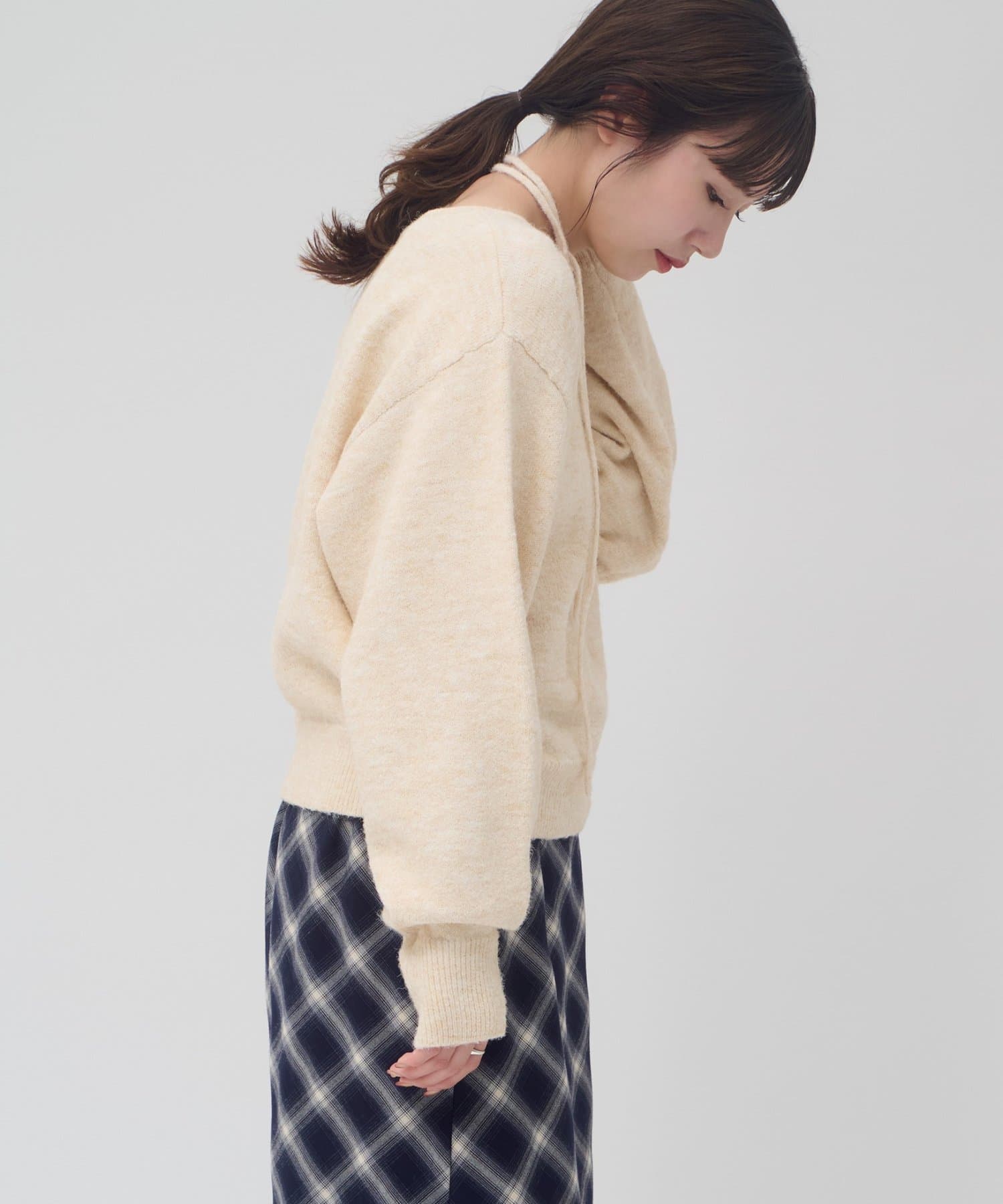 チョーカーと外せば、シンプルなニットプルオーバーとしてコーデを楽しめます!