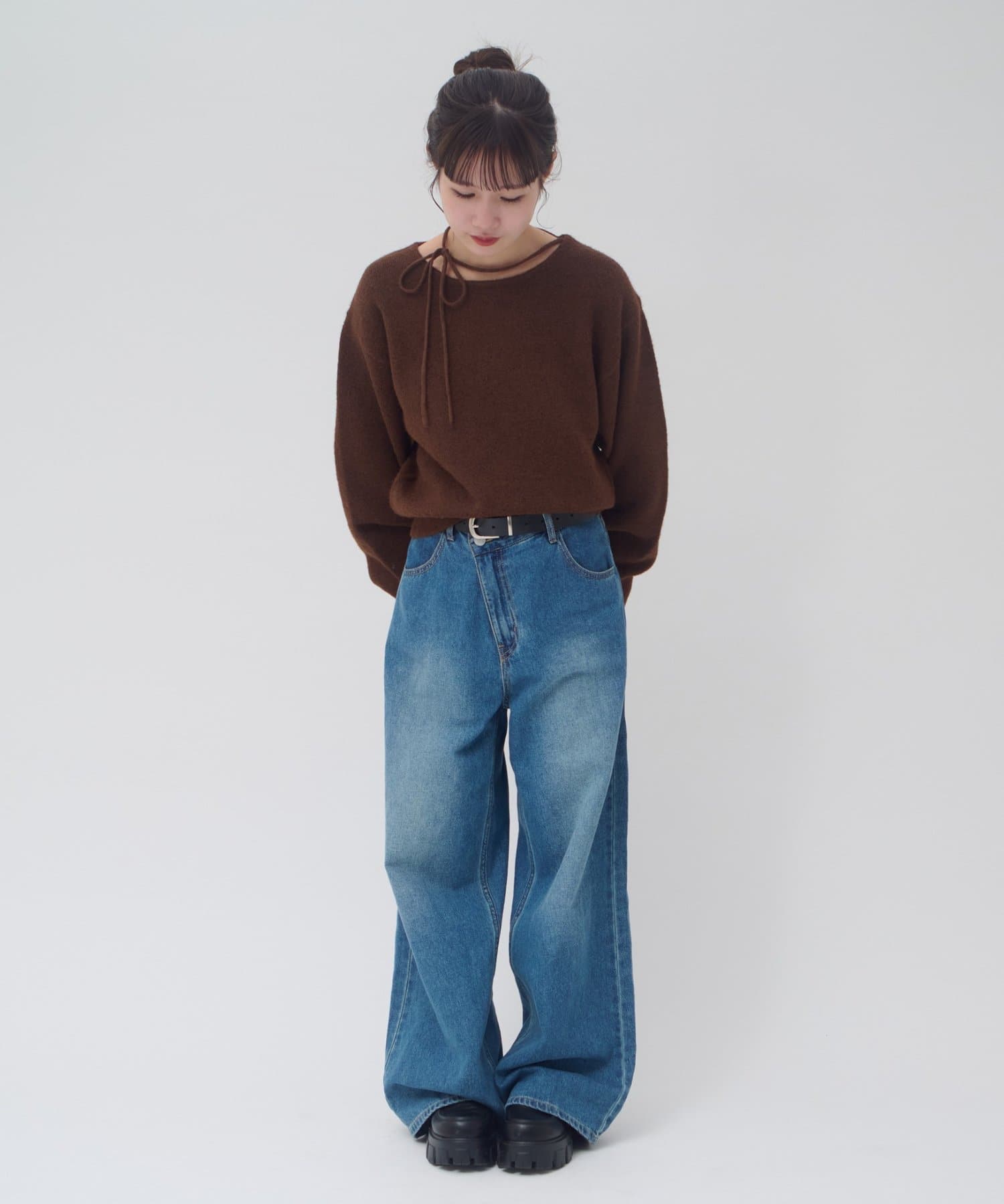 シンプルなのに一枚で映えるデザインは、韓国ライクなスタイリングにもぴったりです。