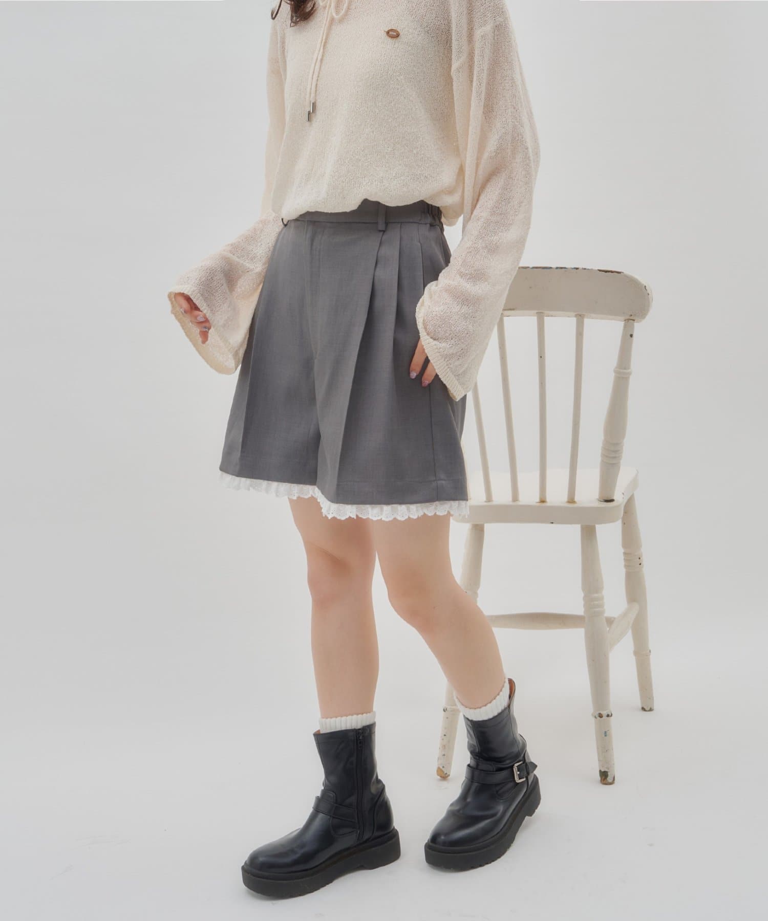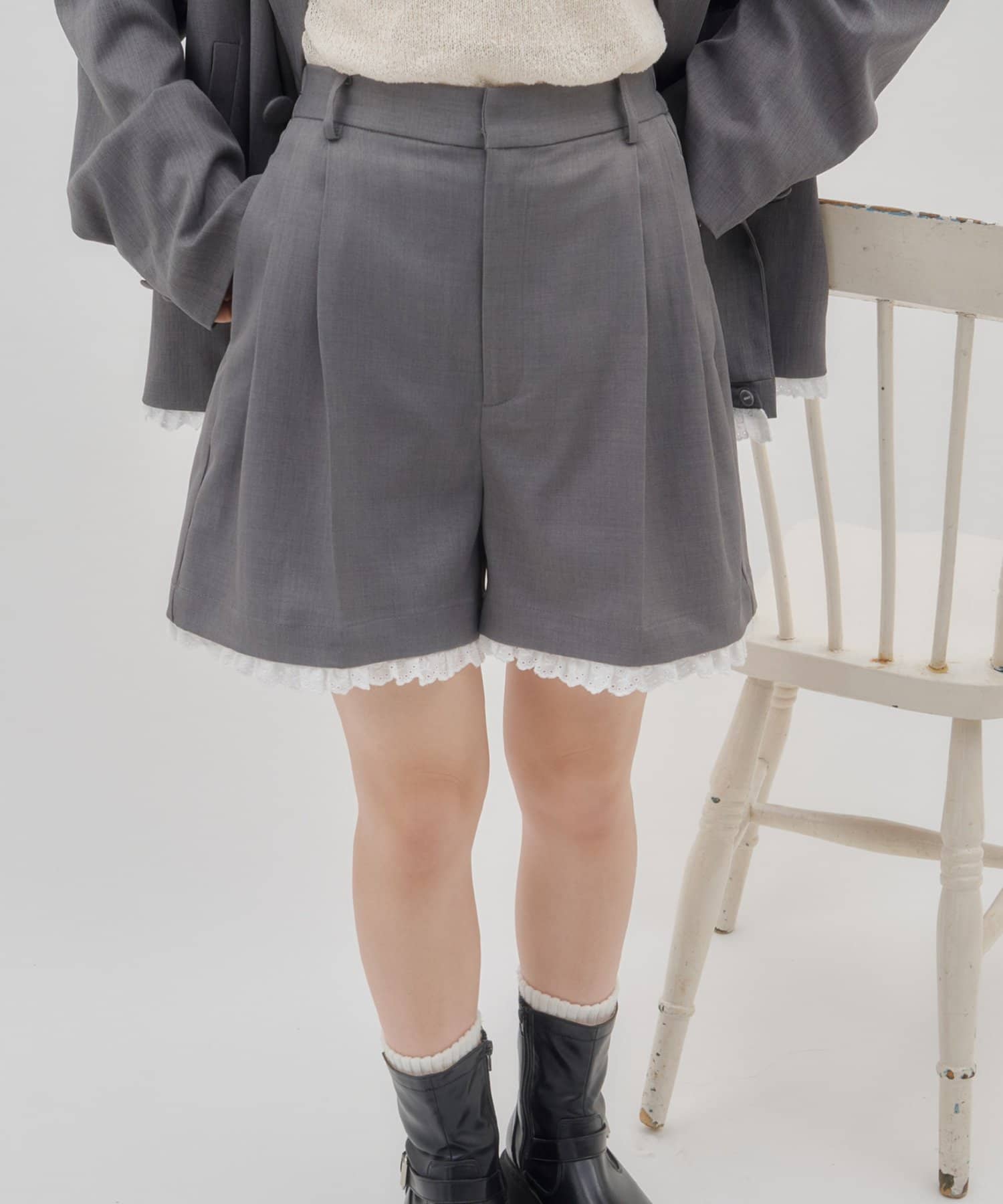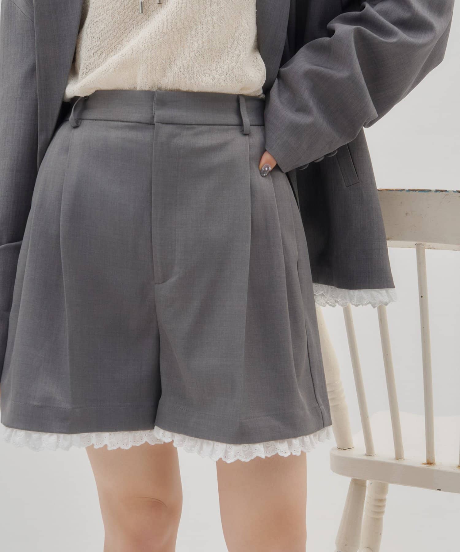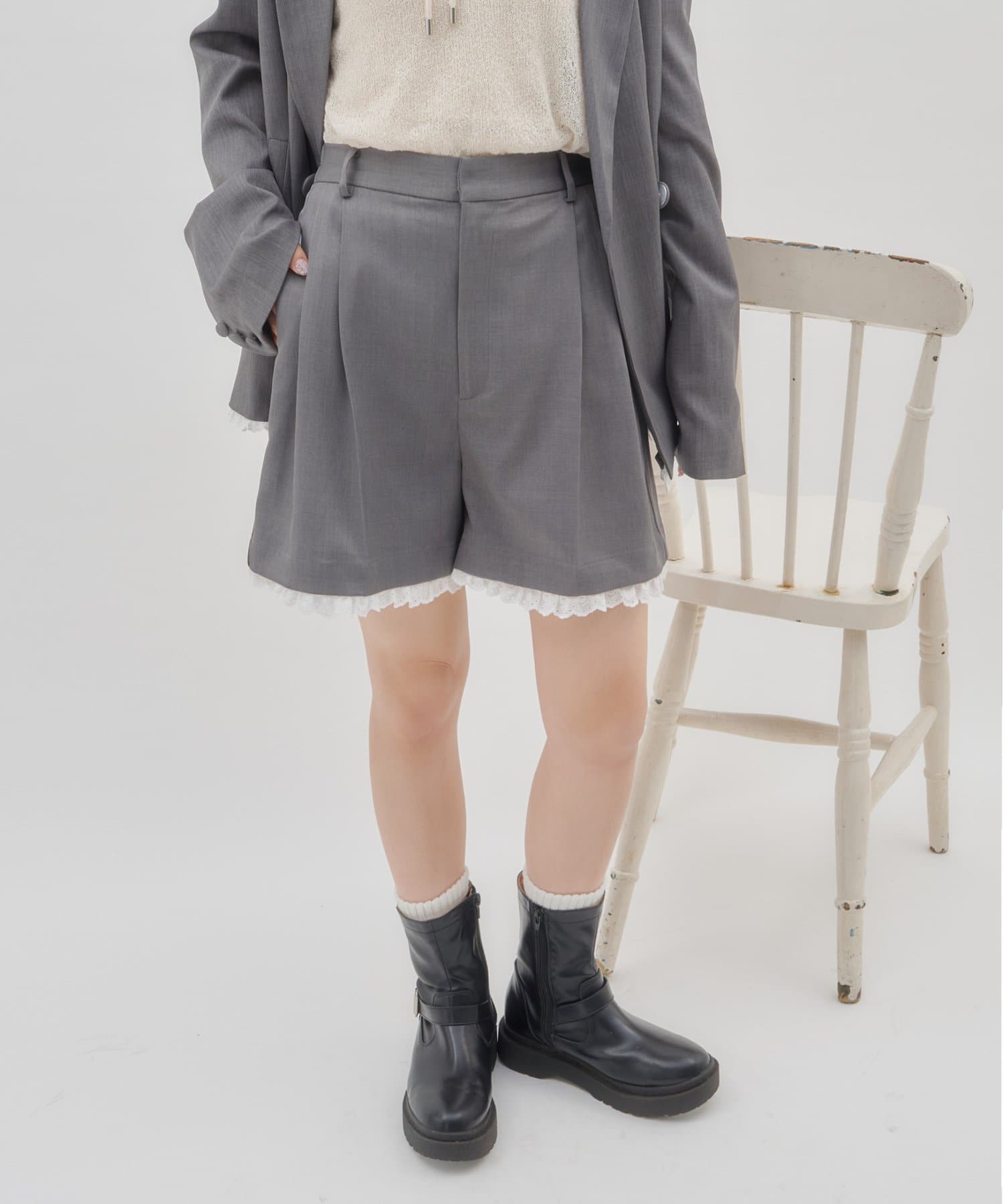 【umm./セットアップ対応】裾レースショートパンツ