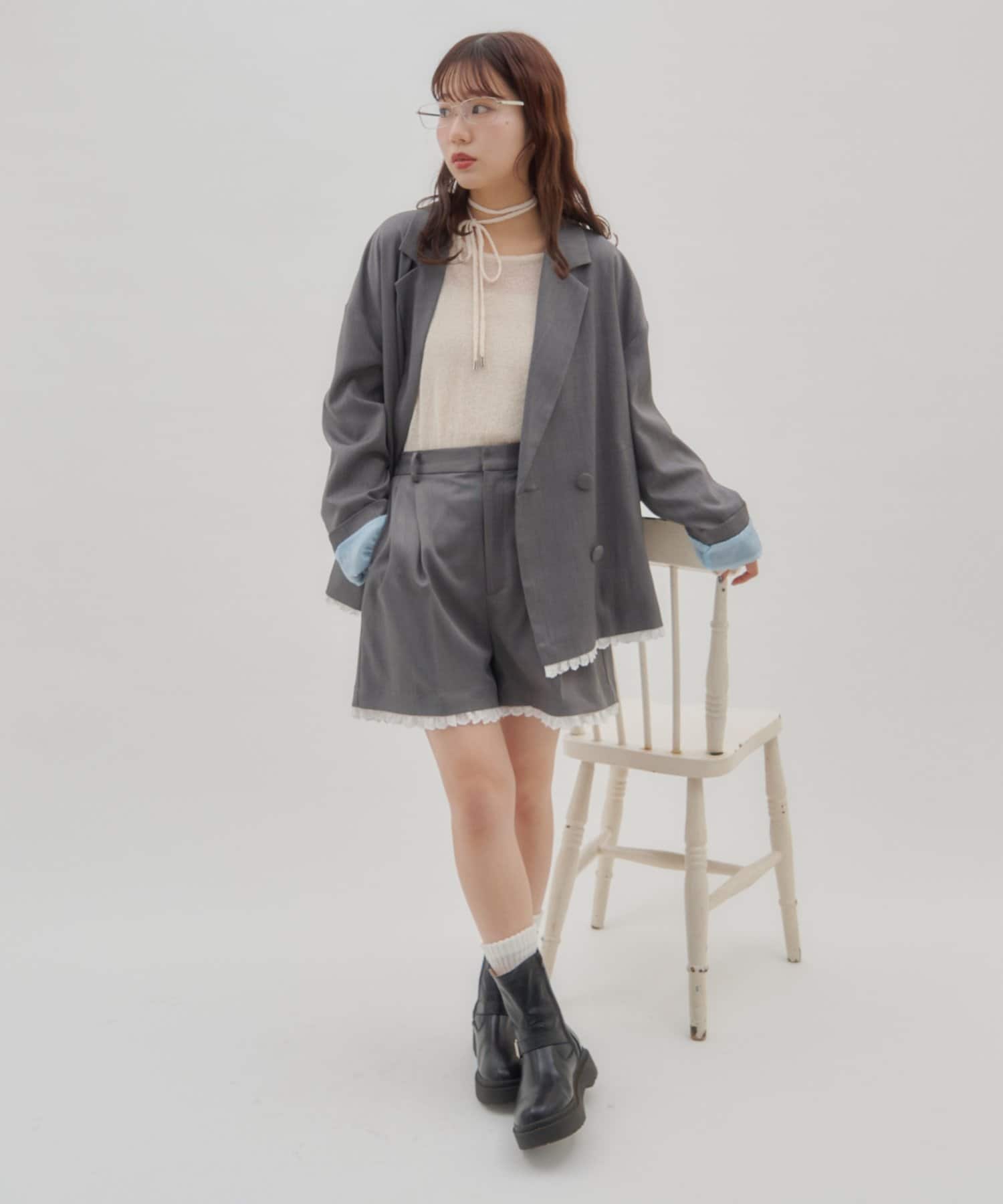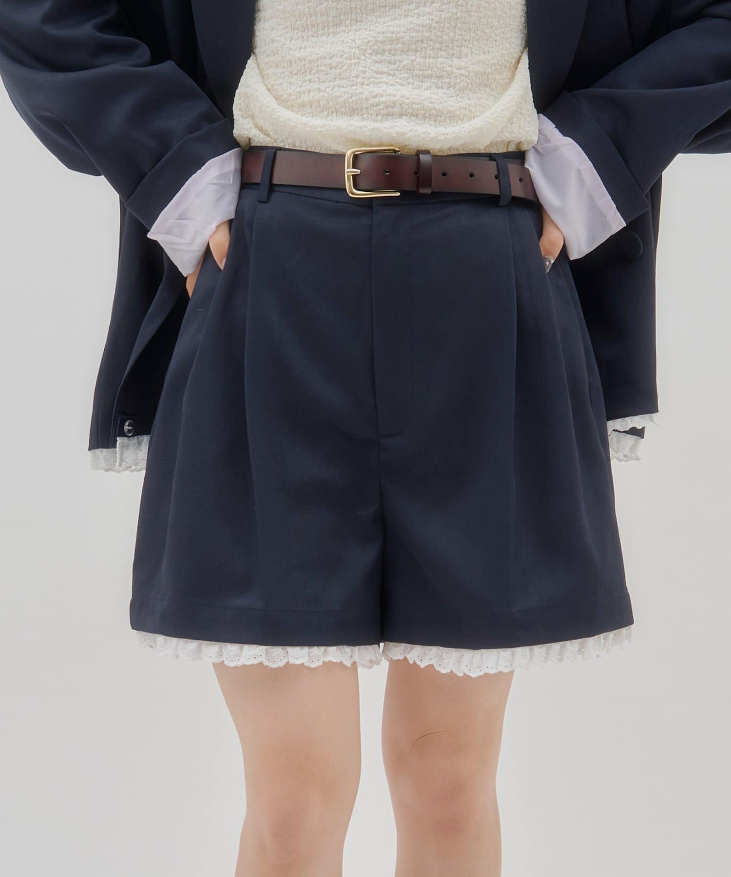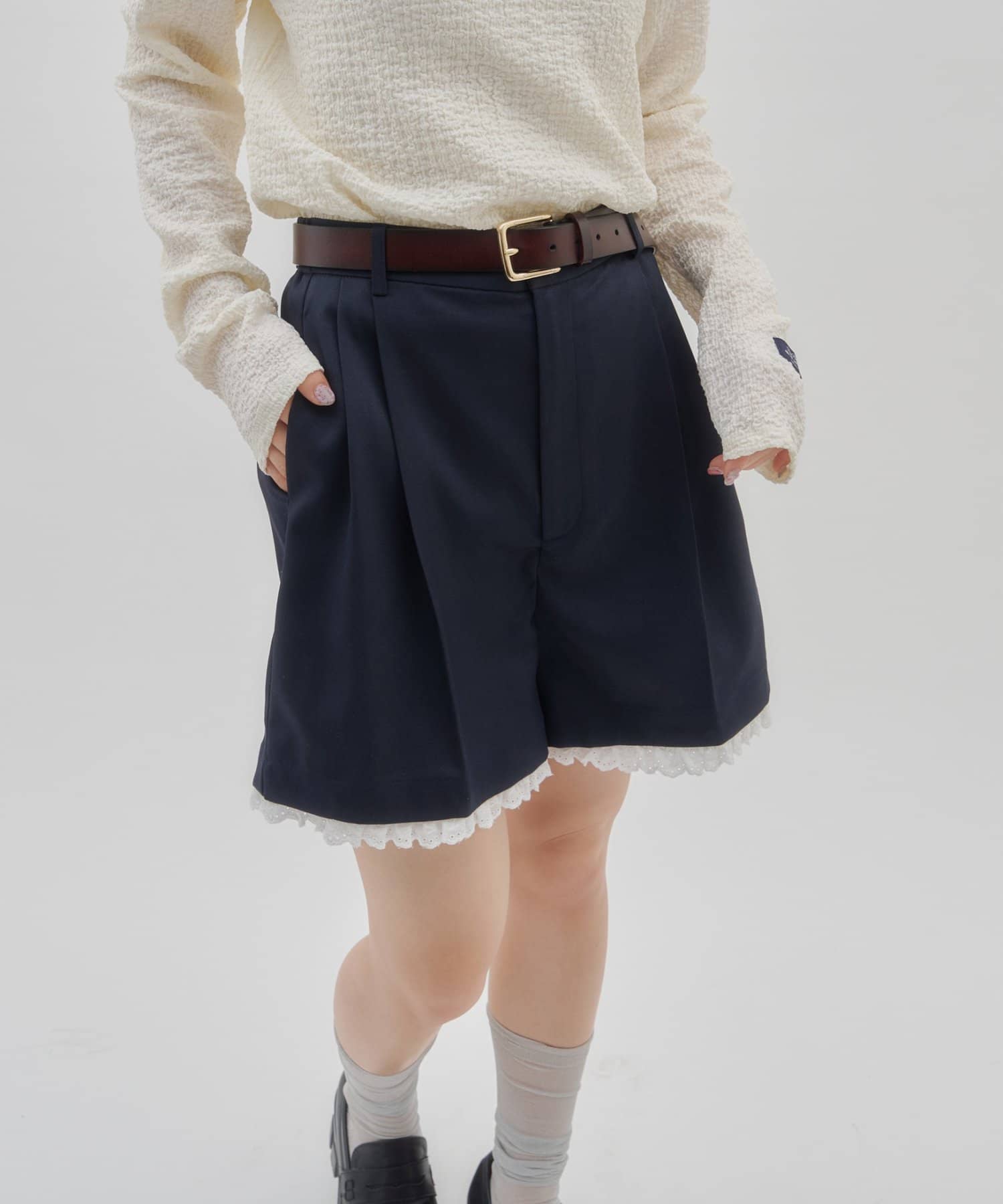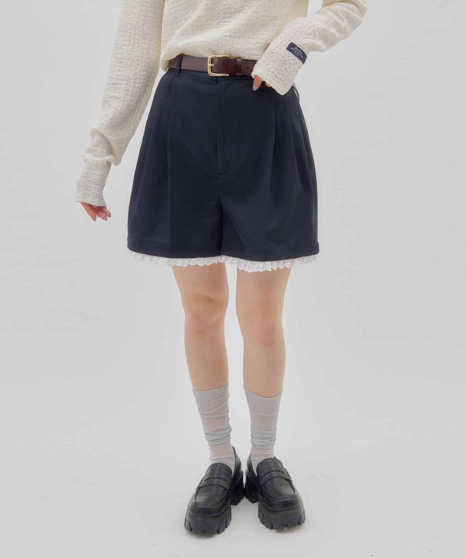 【umm./セットアップ対応】裾レースショートパンツ