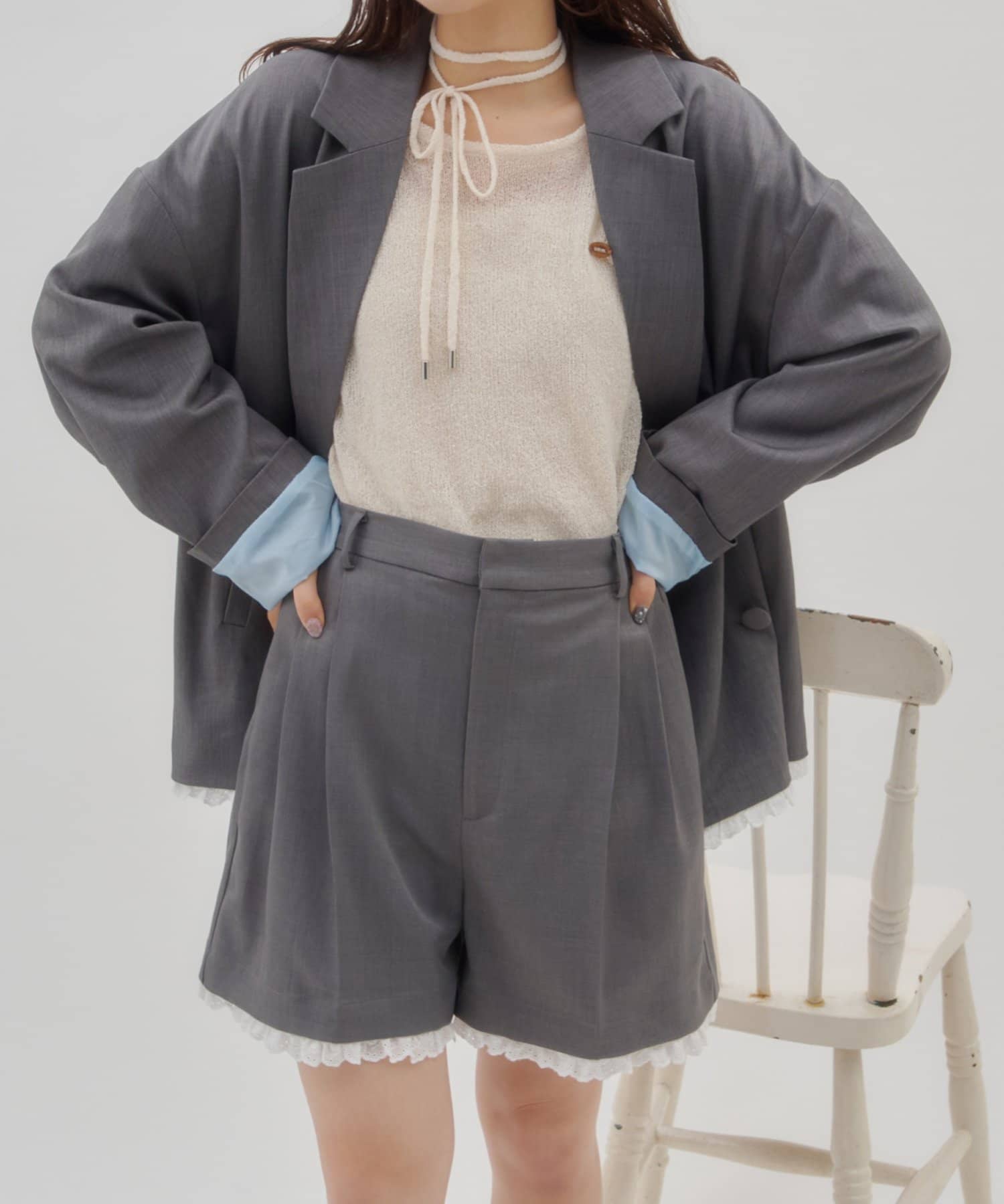・同素材の裾レースジャケットとセットアップ対応♩