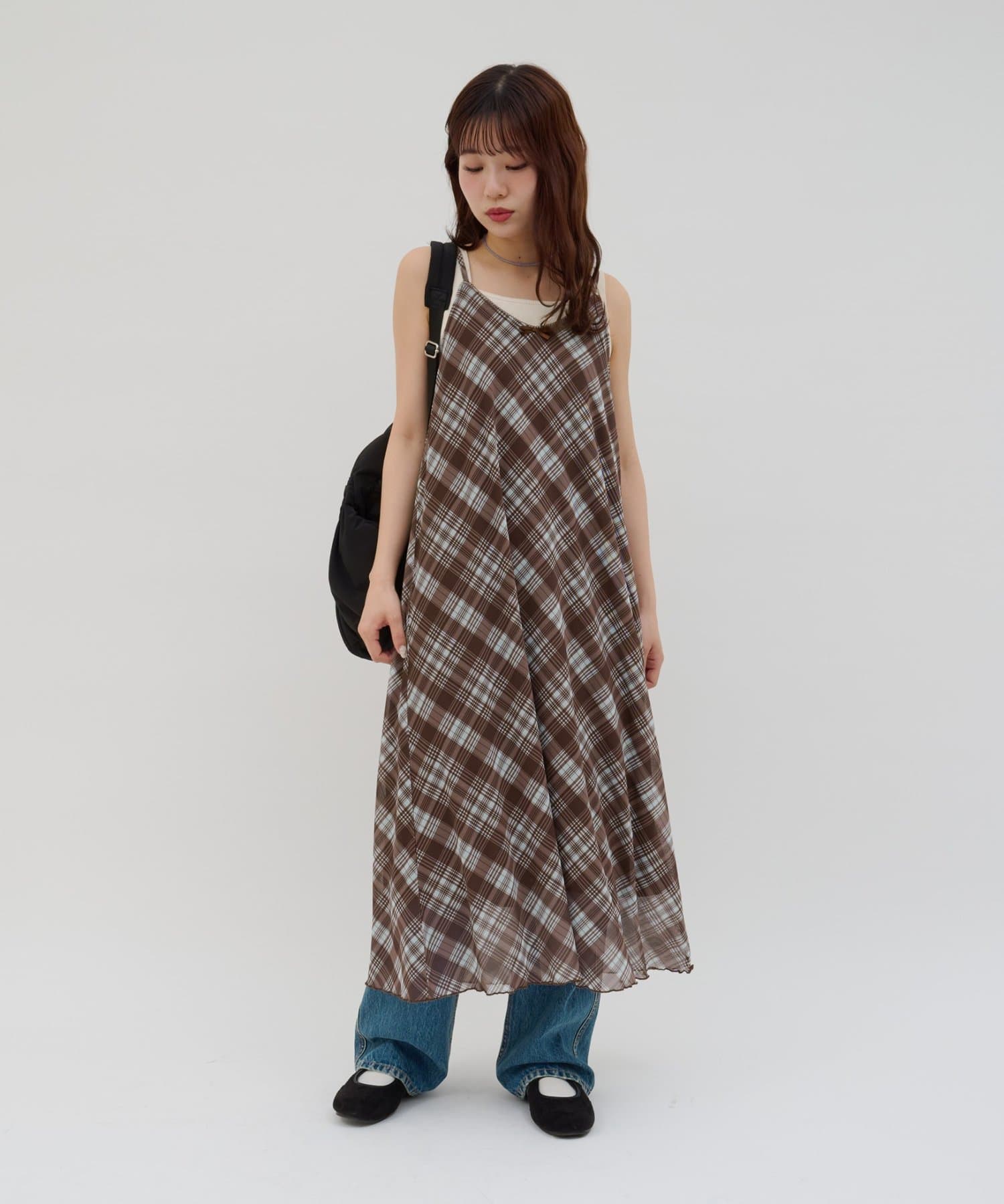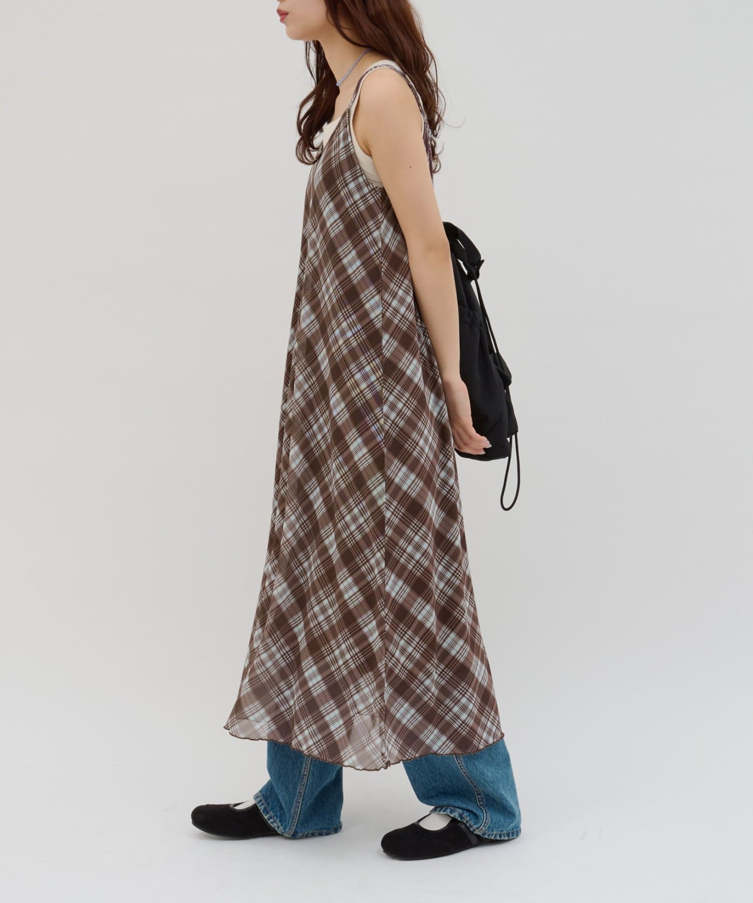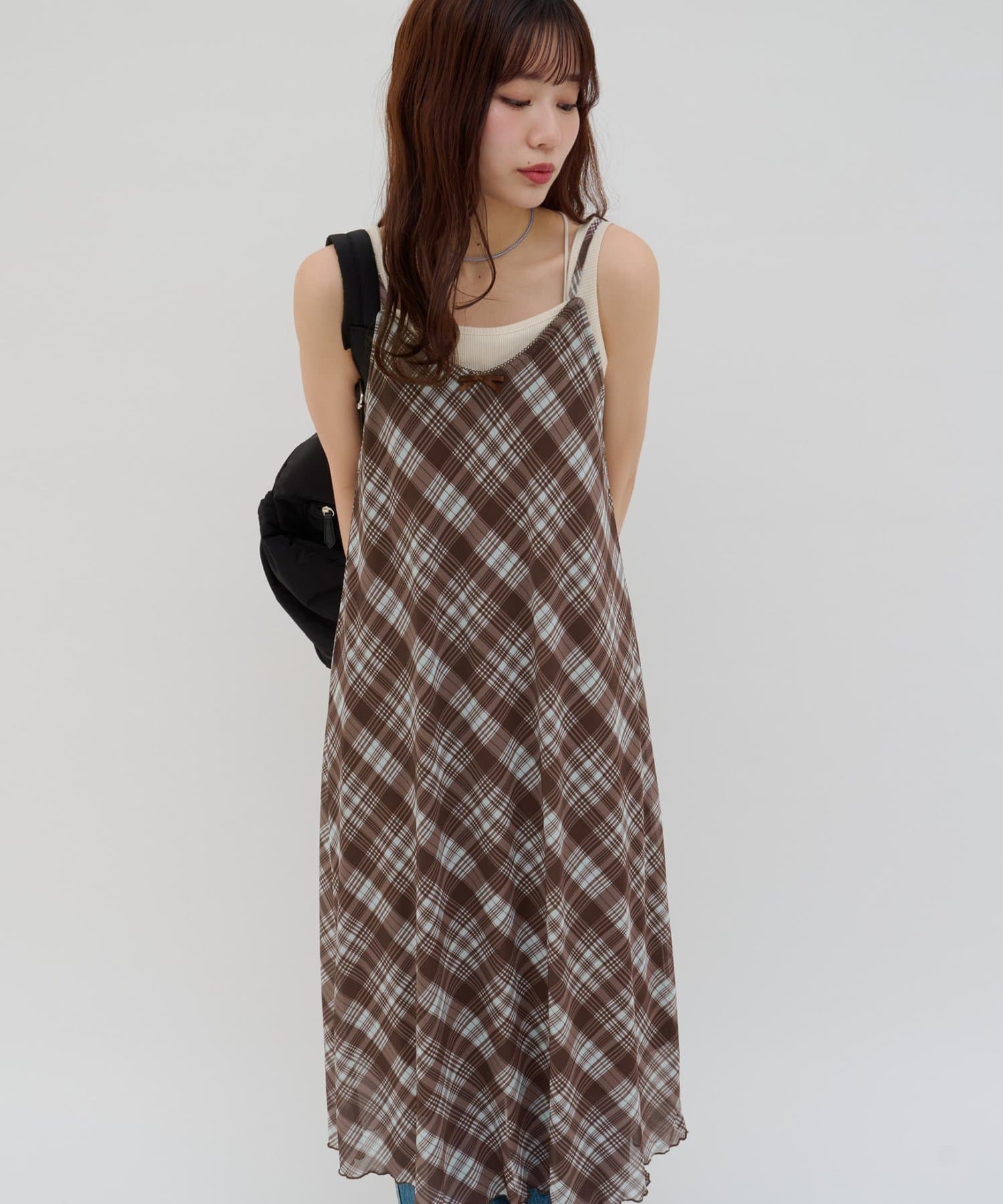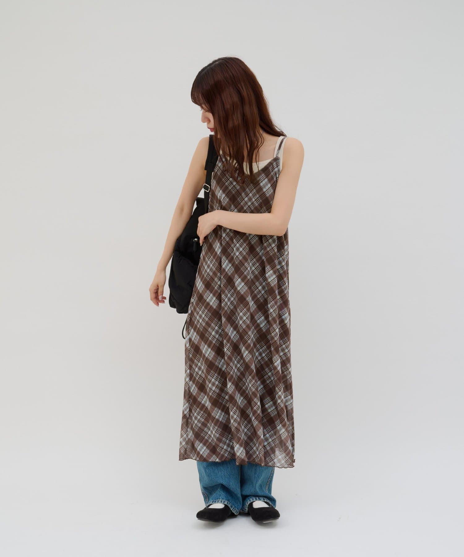 シアーなバイアスチェック柄が主役のキャミワンピース