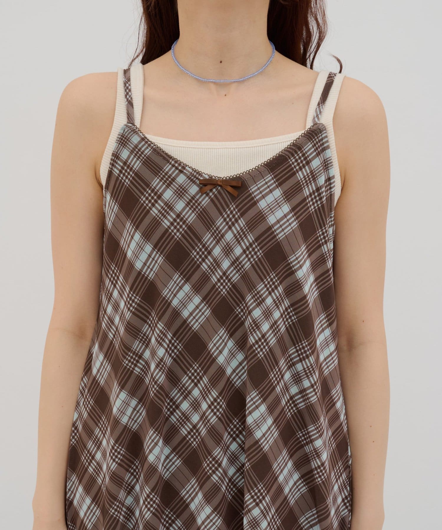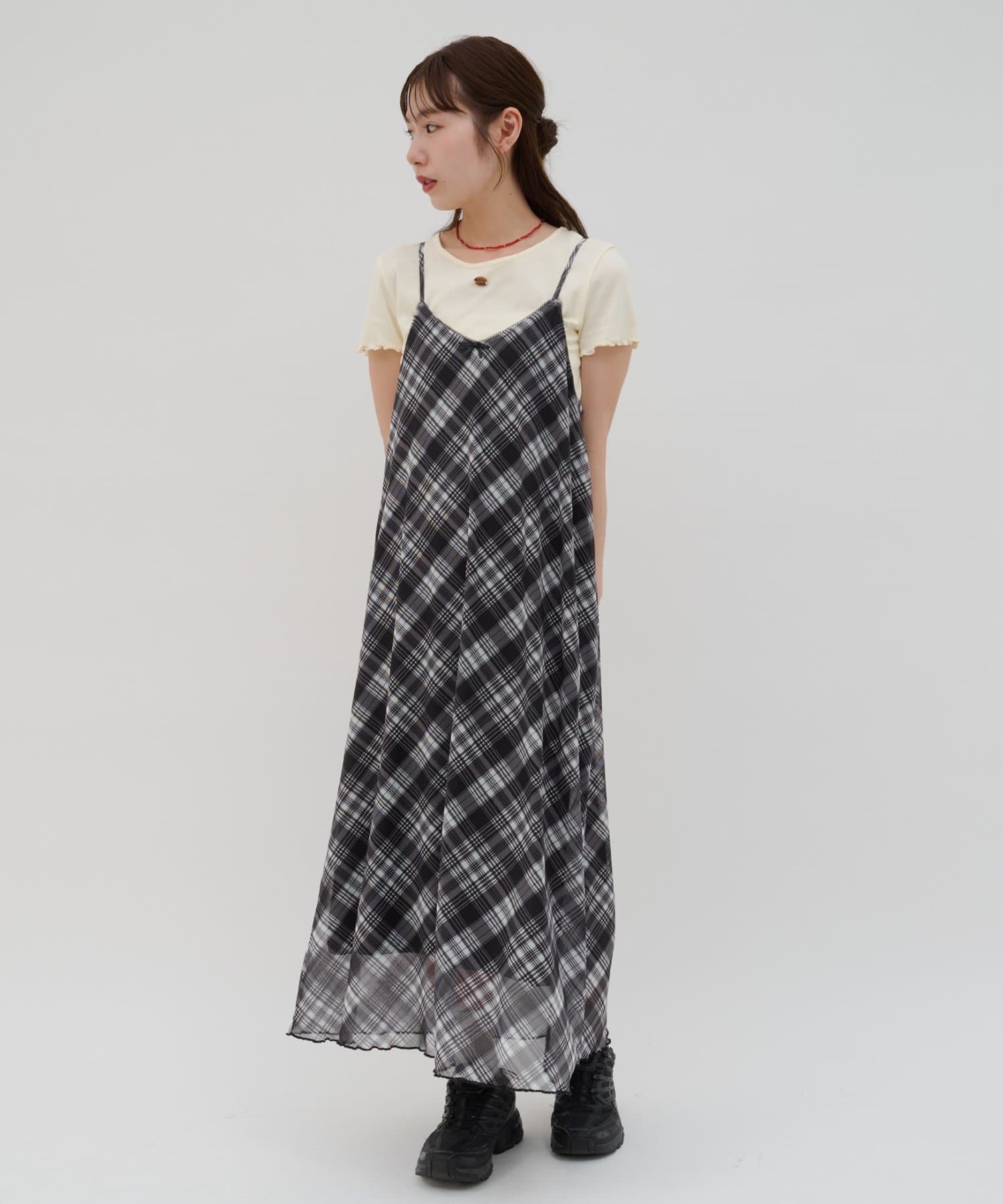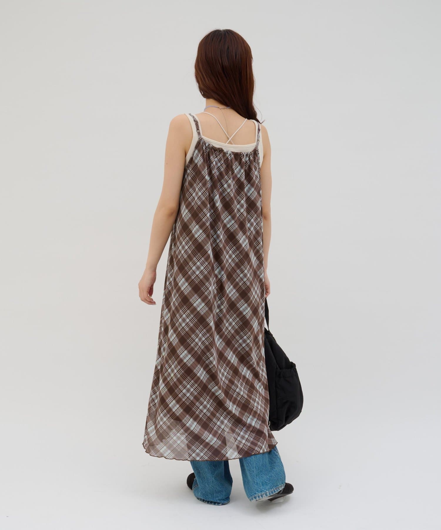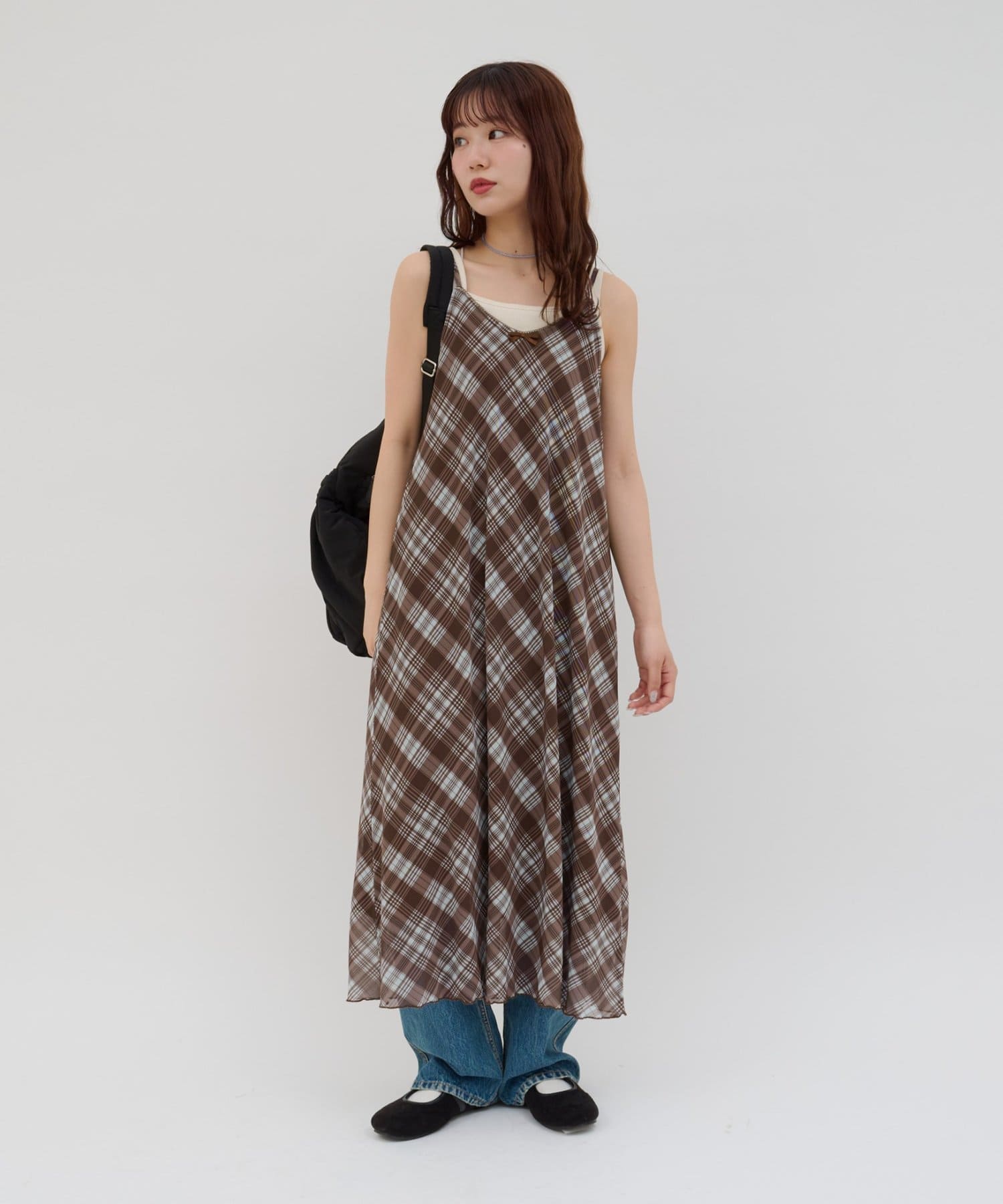 シアーなバイアスチェック柄が主役のキャミワンピース