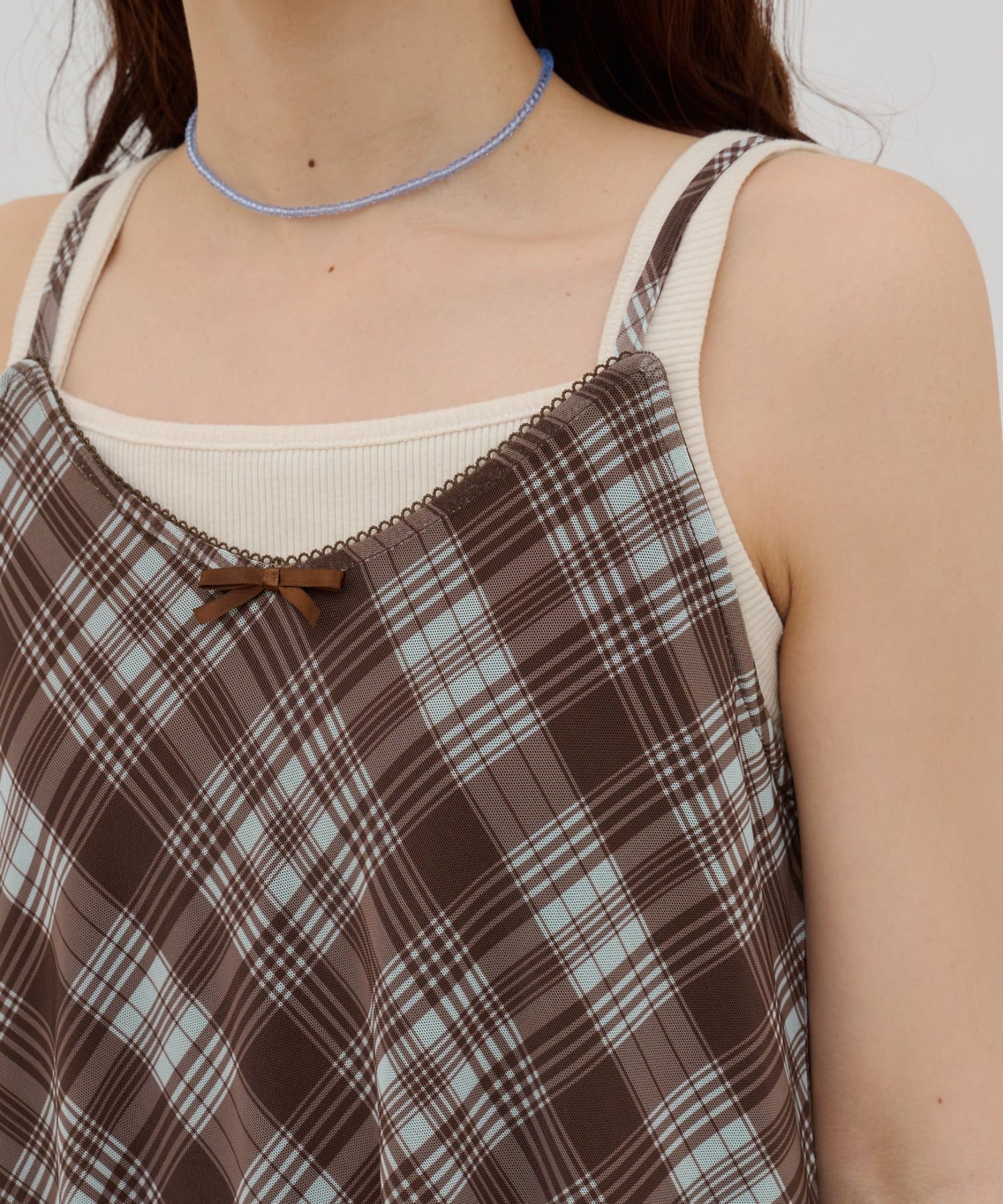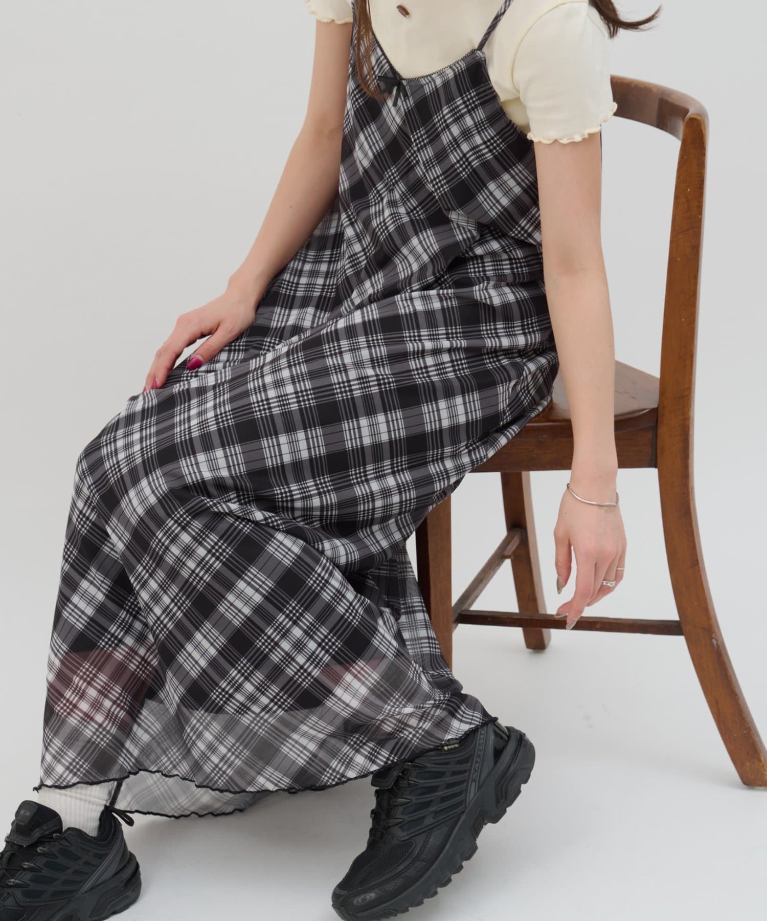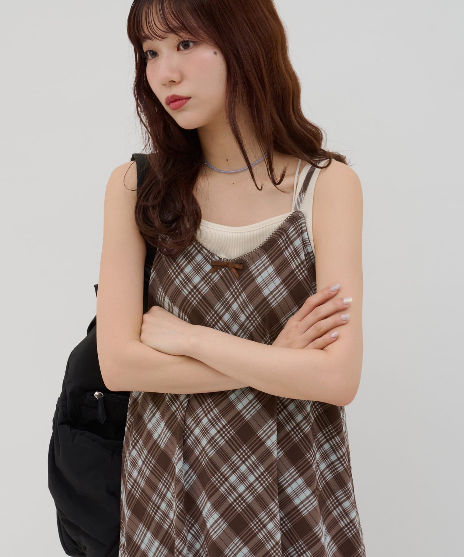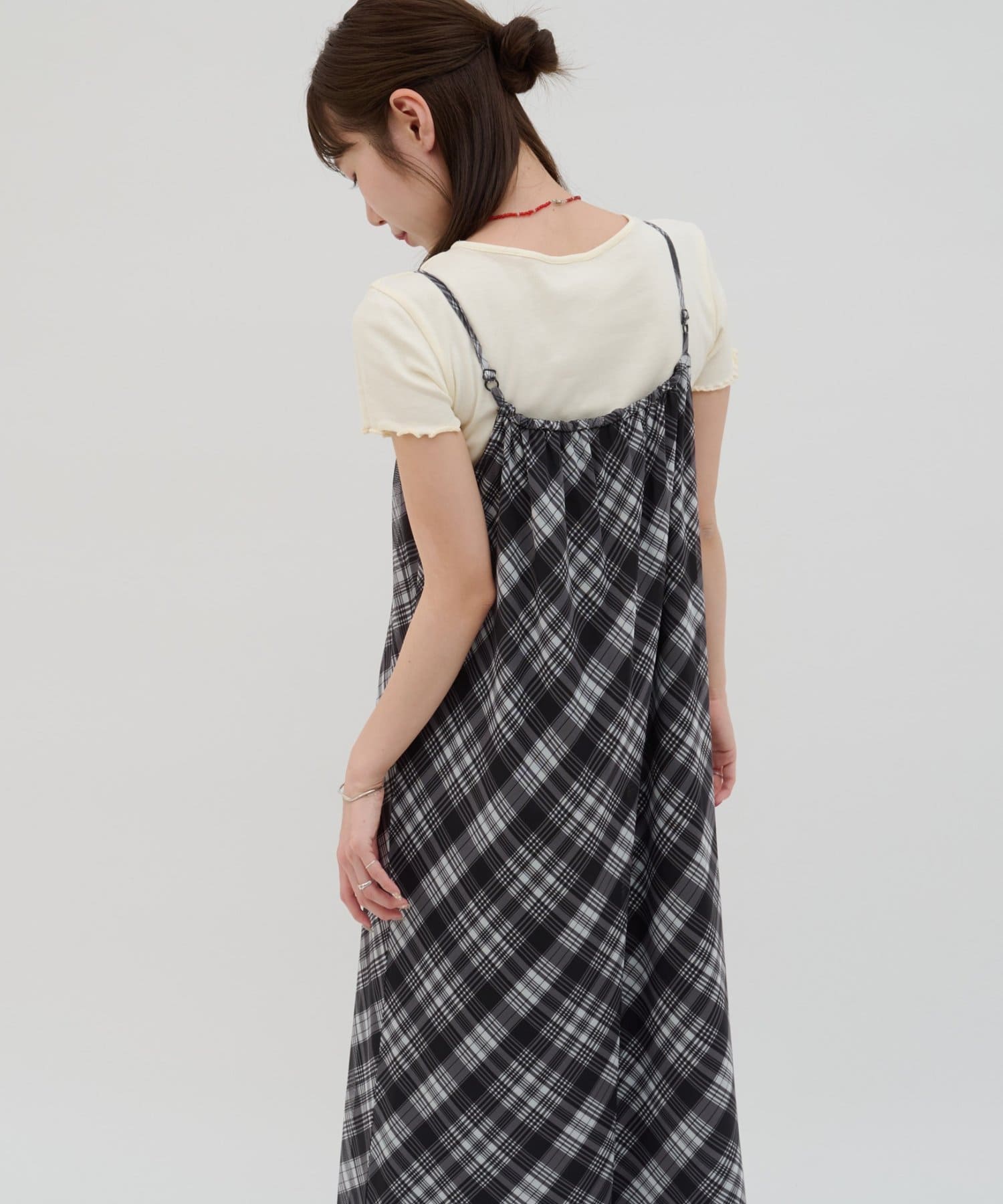 シアーなバイアスチェック柄が主役のキャミワンピース