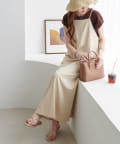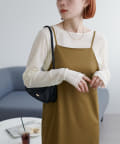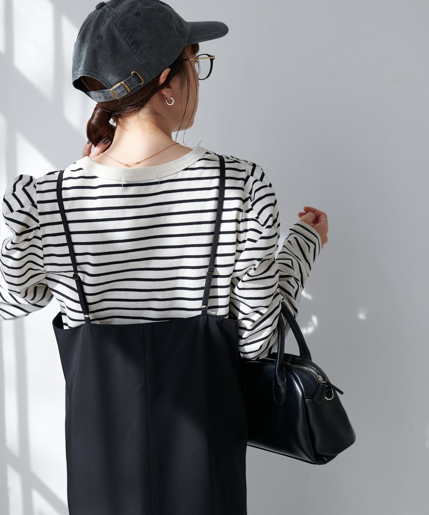 159cmスタッフ:身幅はゆとりがあり楽チンな着心地で落ち感があるのですっきり見えします◎肩紐がアジャスターで調整できるので低身長さんにも高身長さんにも!!