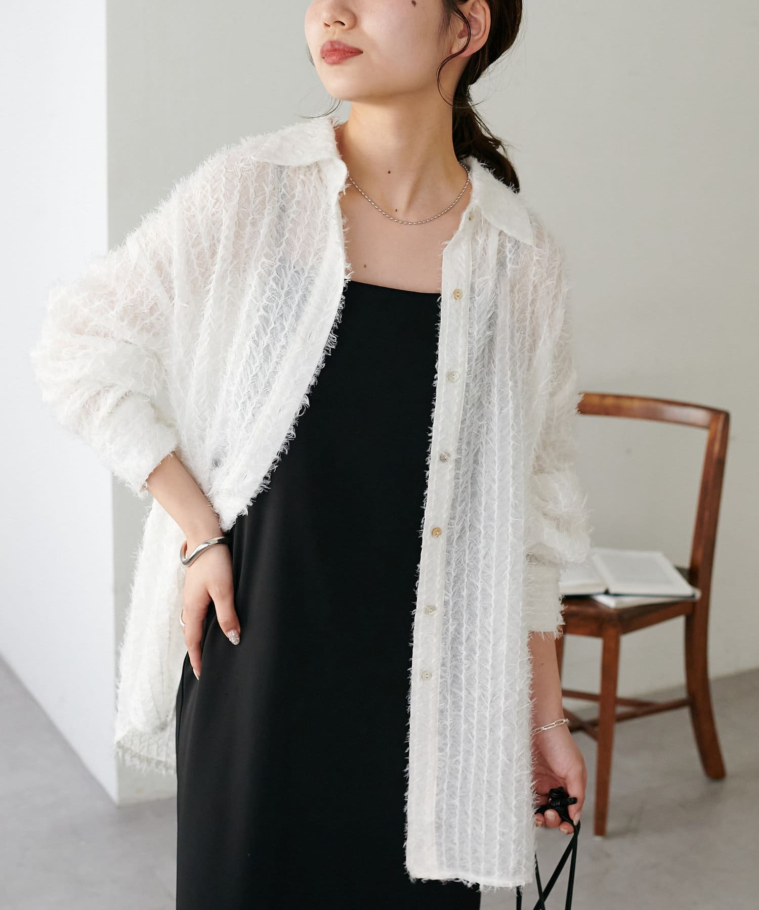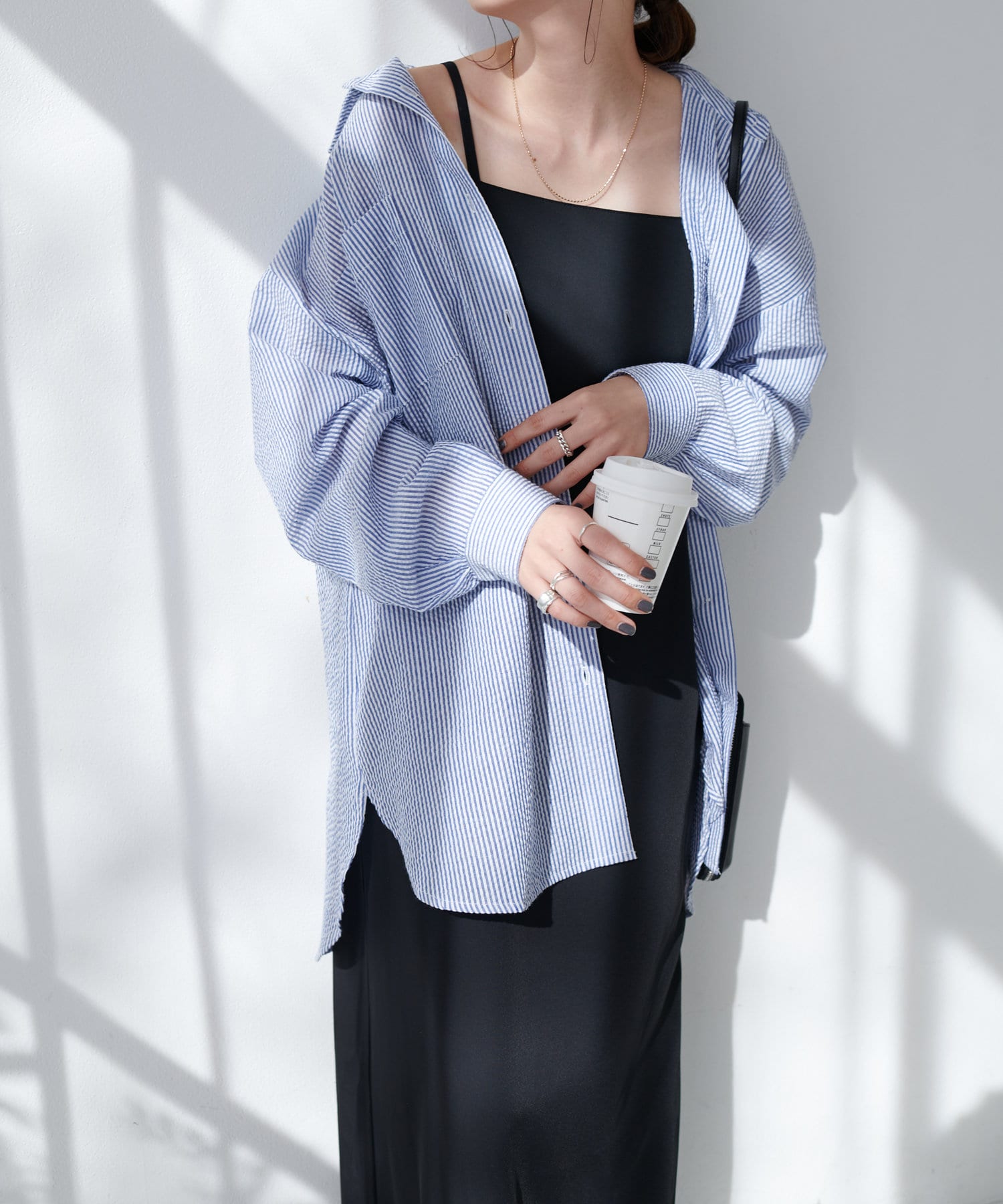 シアーバンドカラーシャツ《WEB限定カラーあり》
