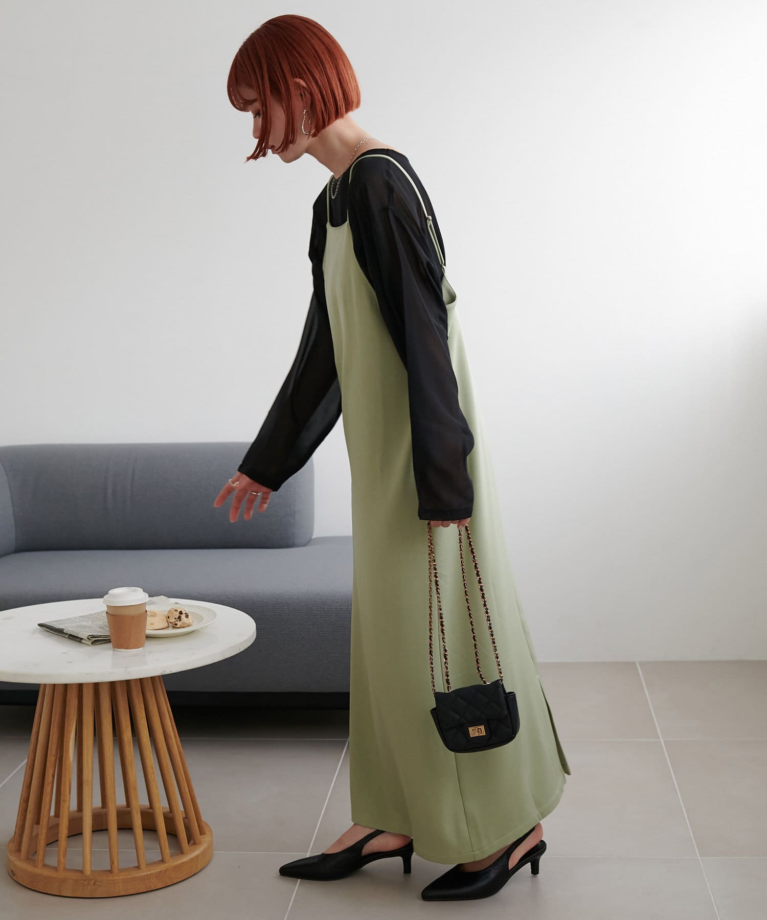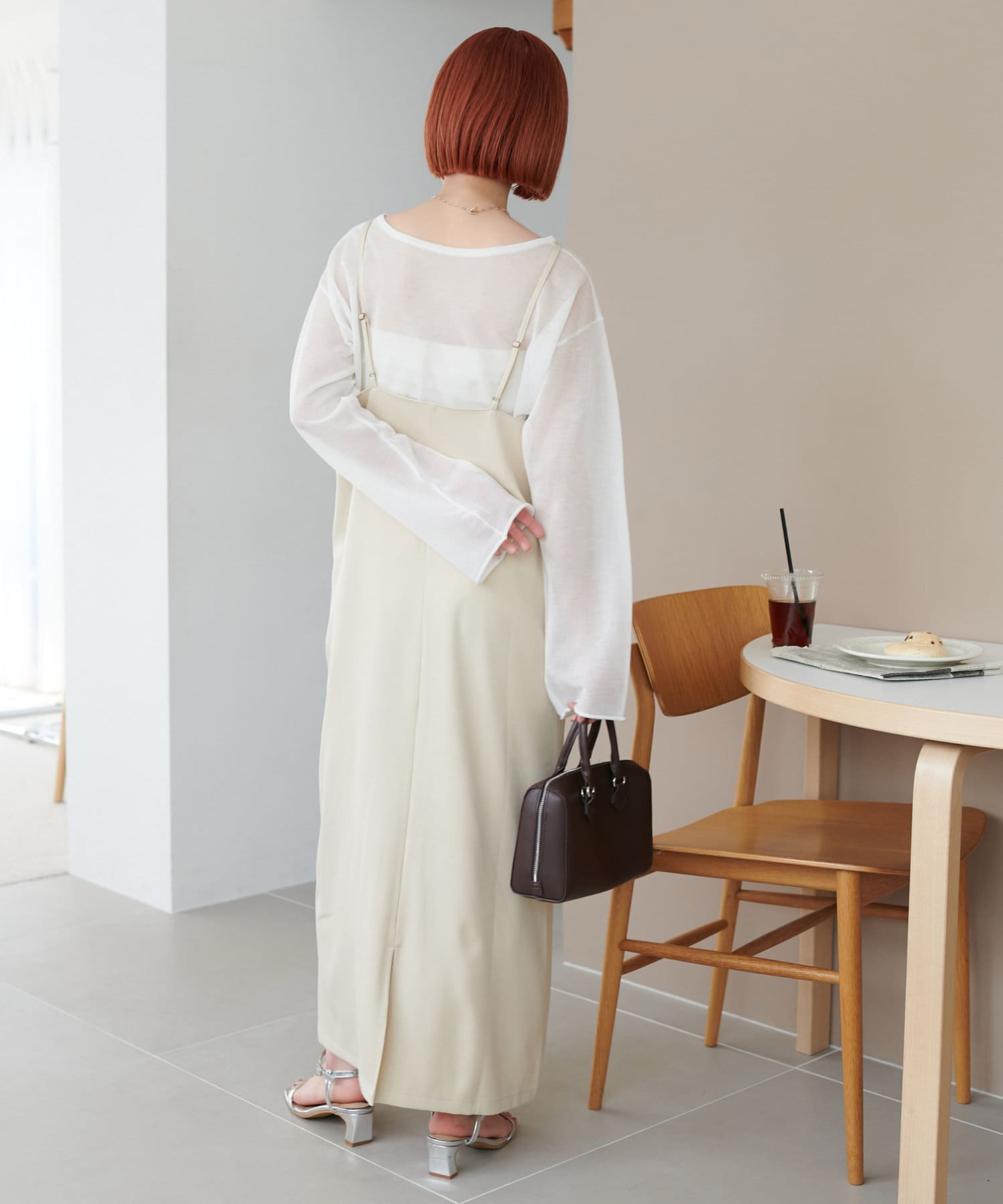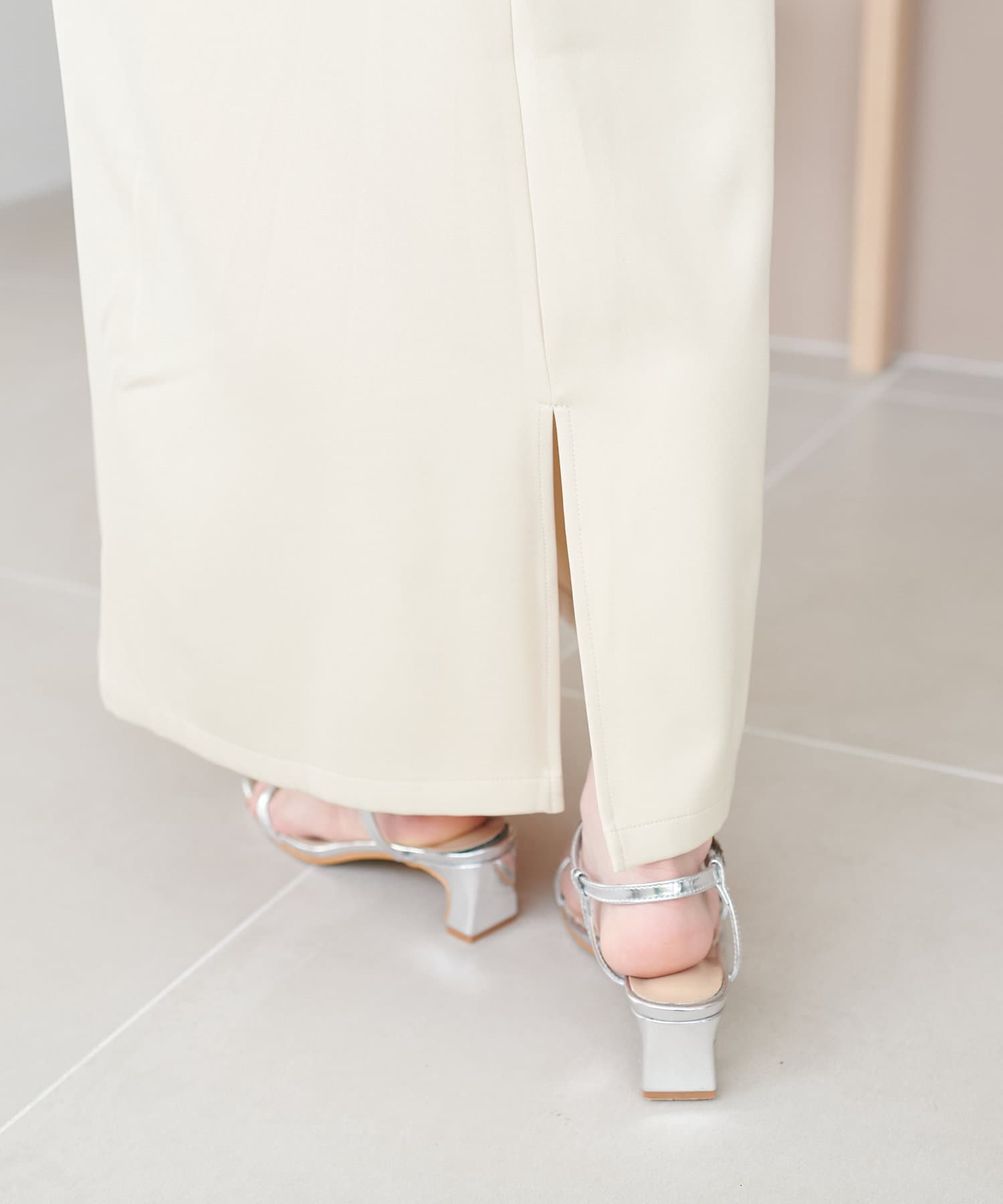 マキシ丈ですが、バックにスリットをあしらい足元を軽やかに演出してくれます。