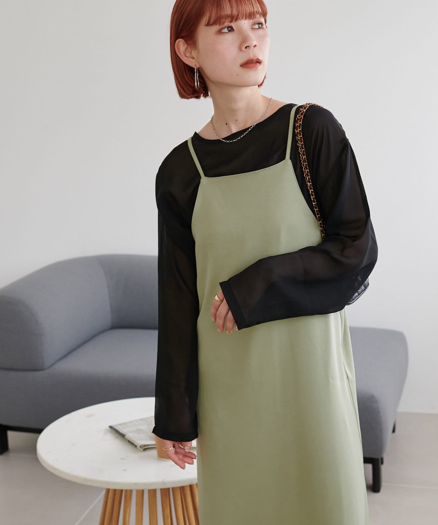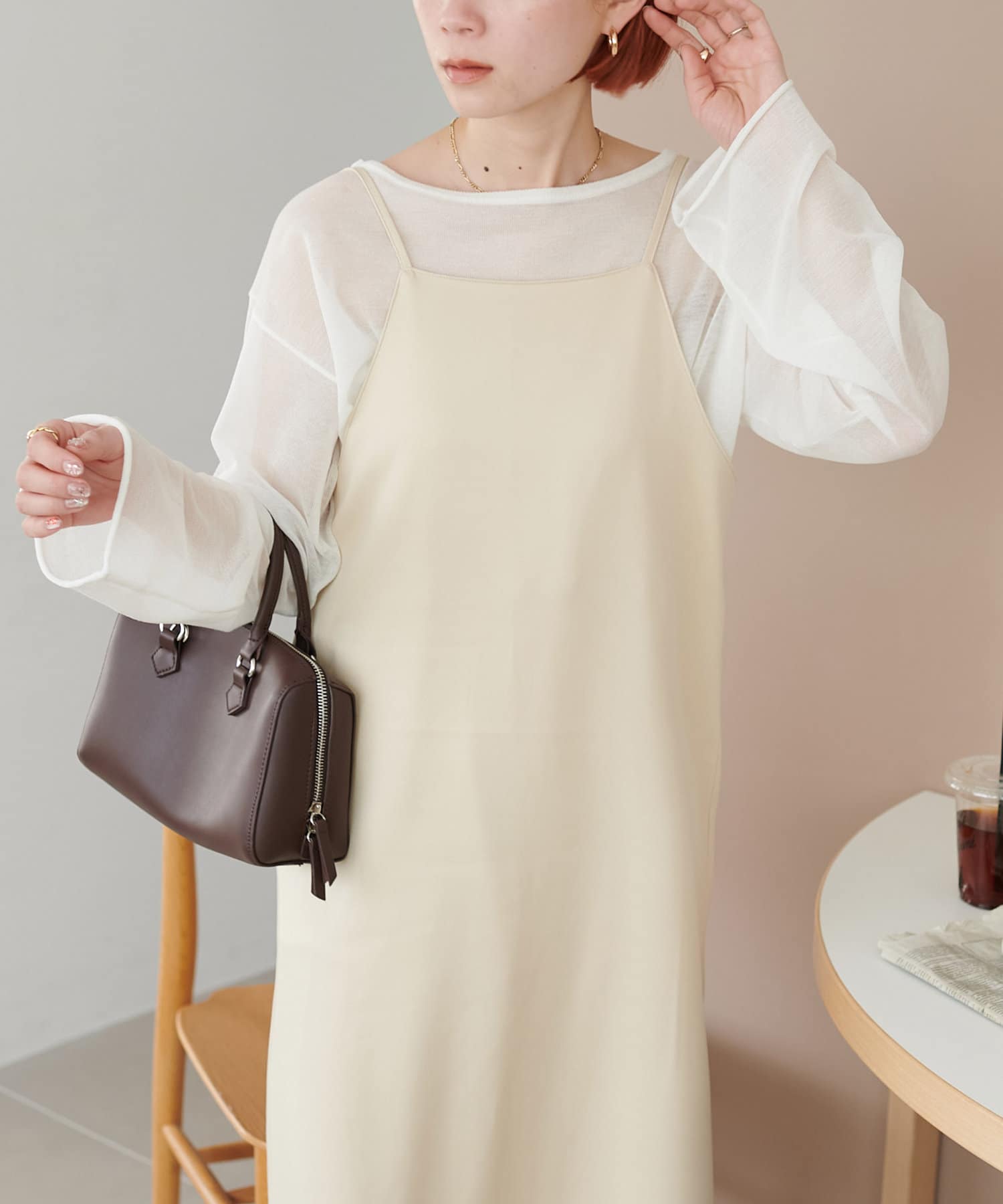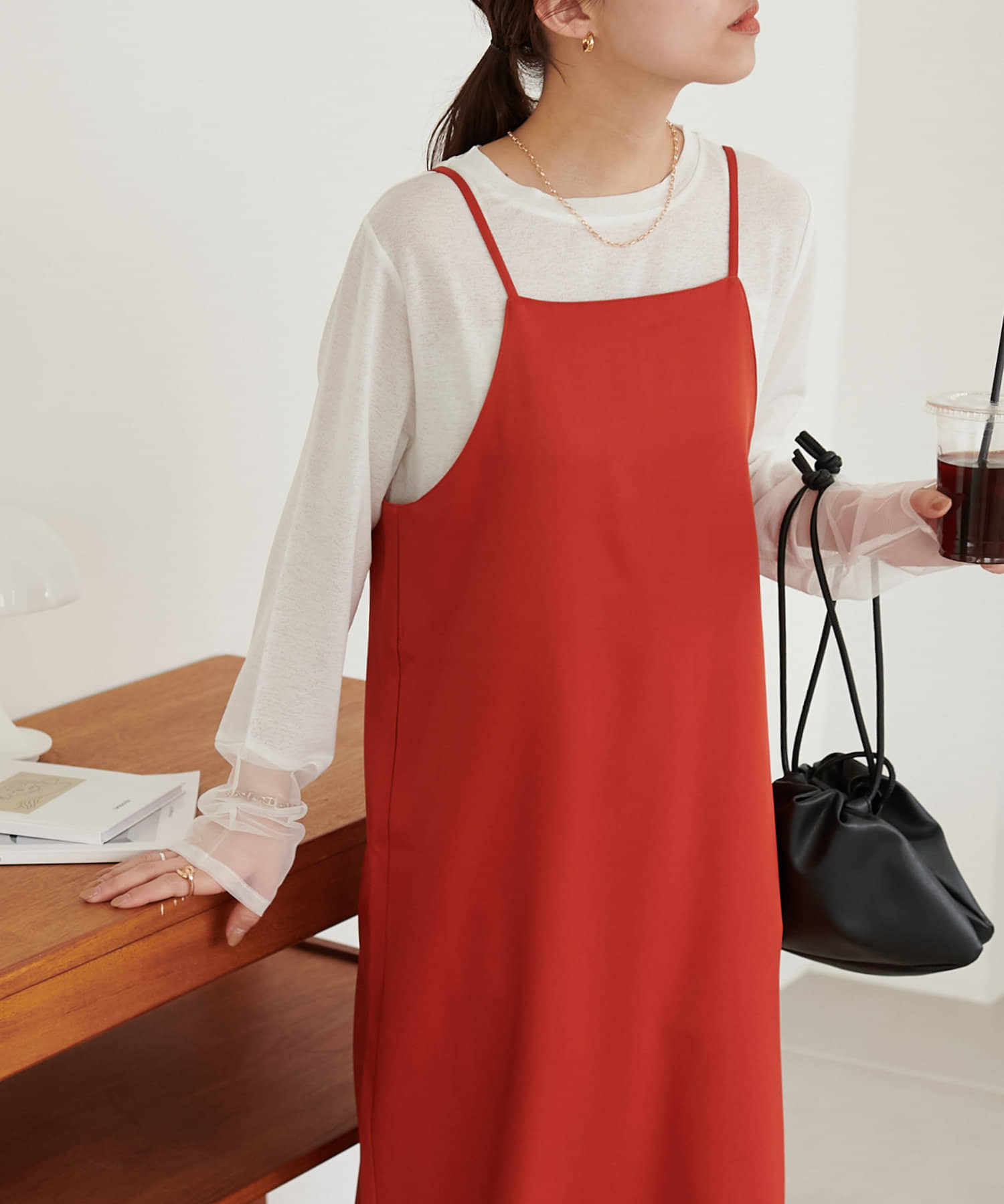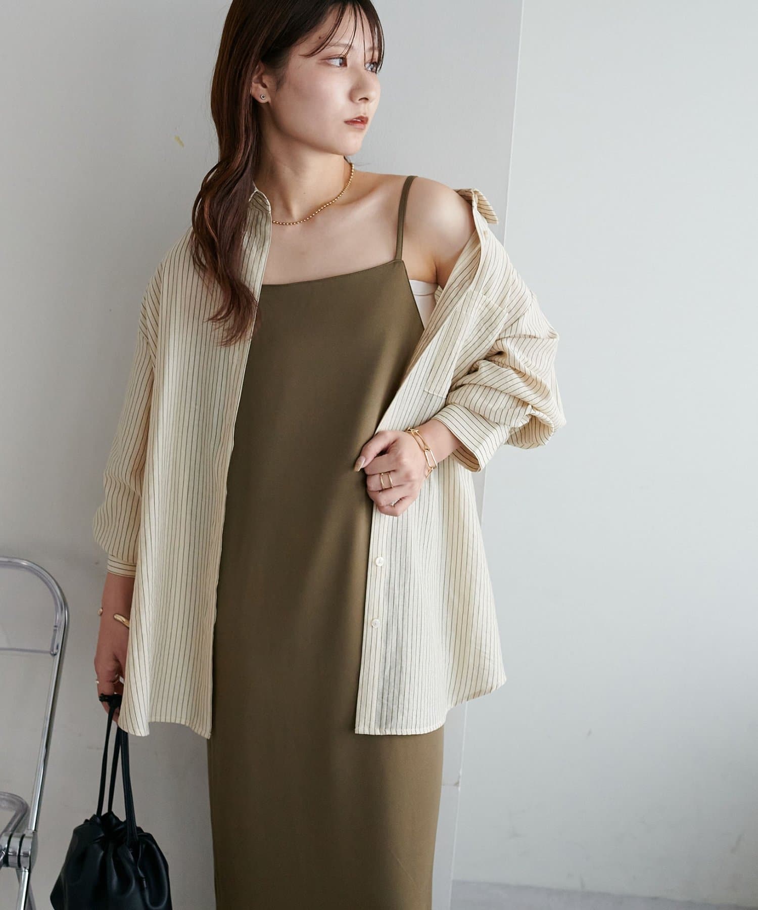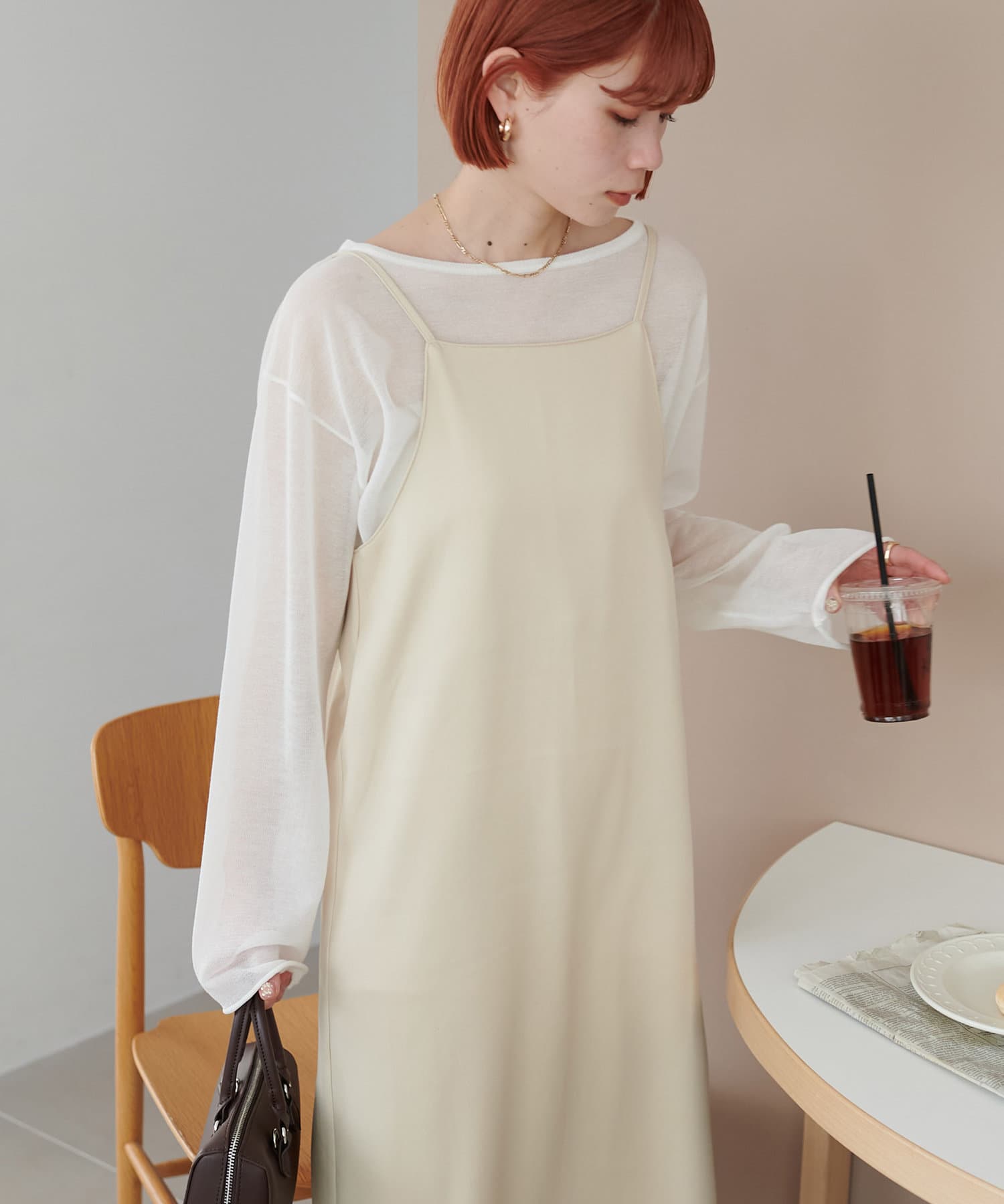 Iラインのすっきりとしたシルエットが、女性らしいキャミワンピース。
