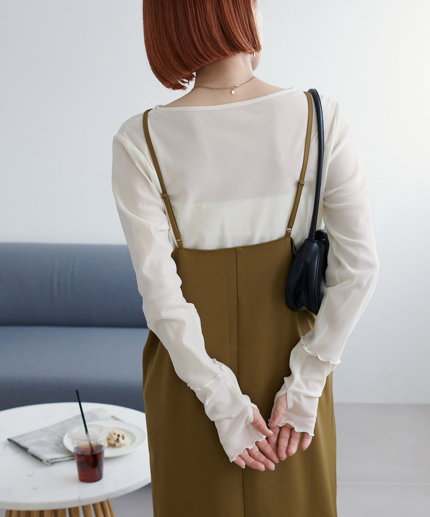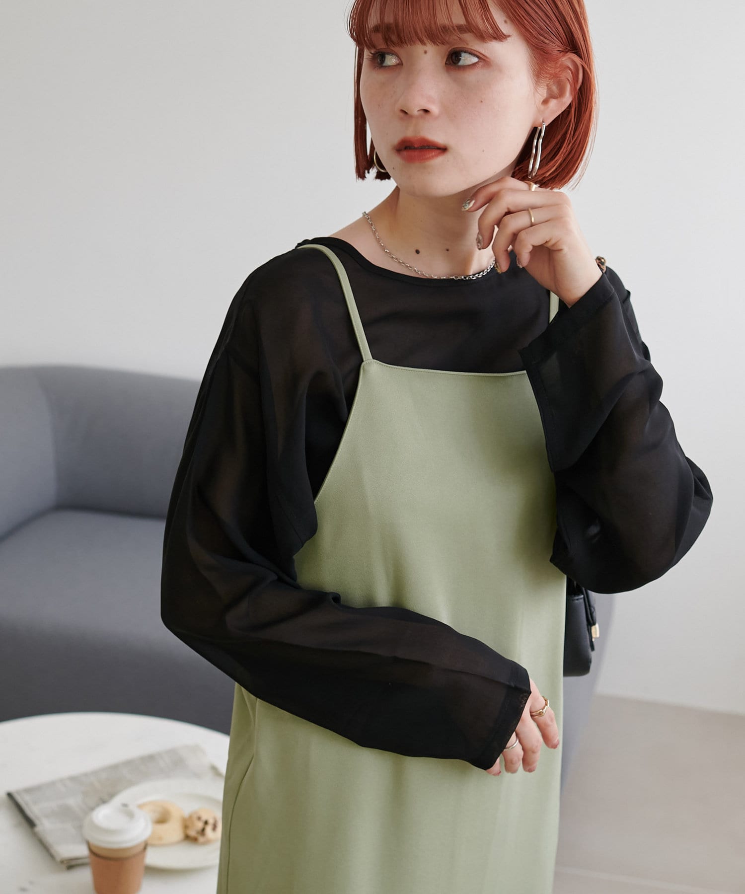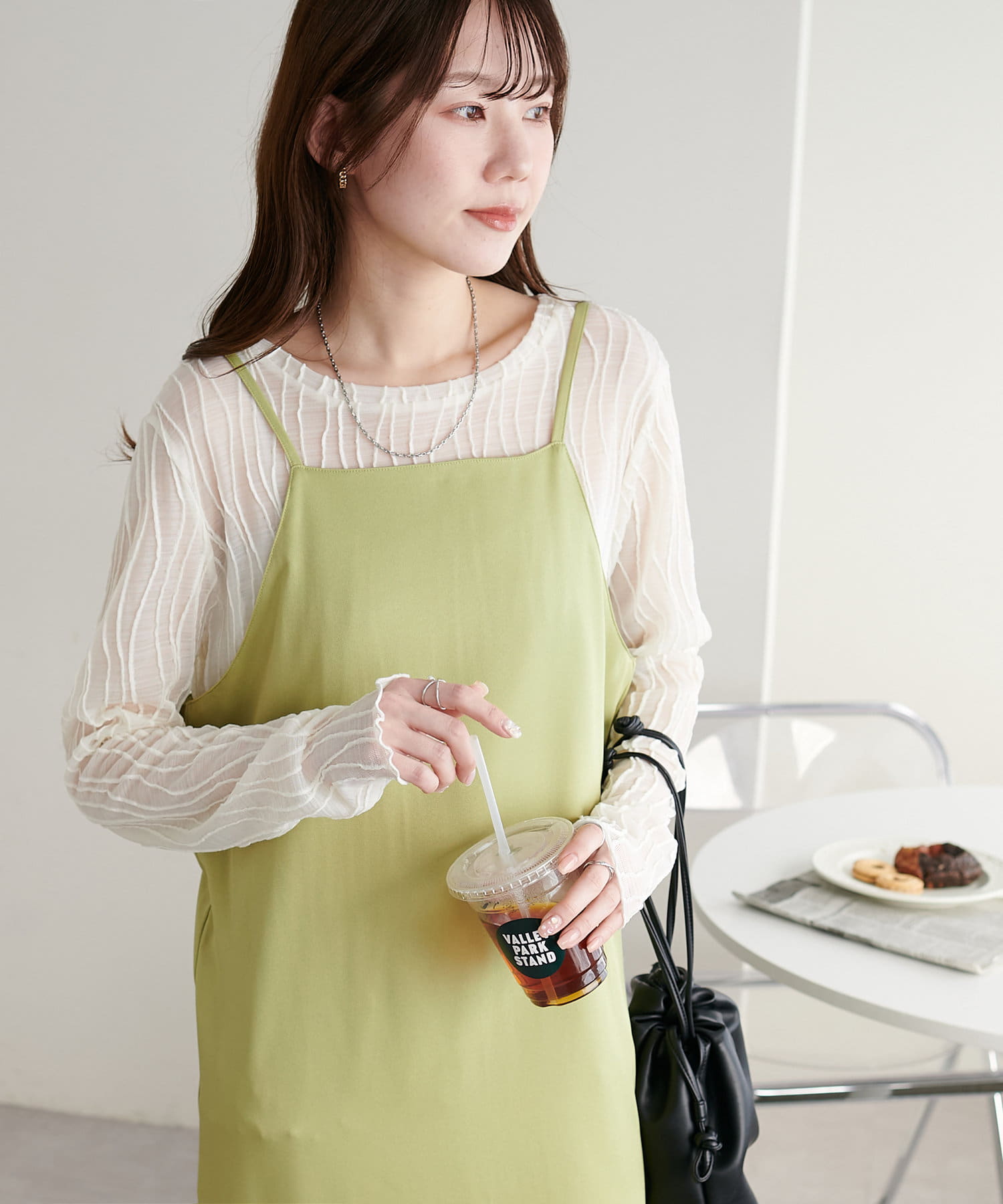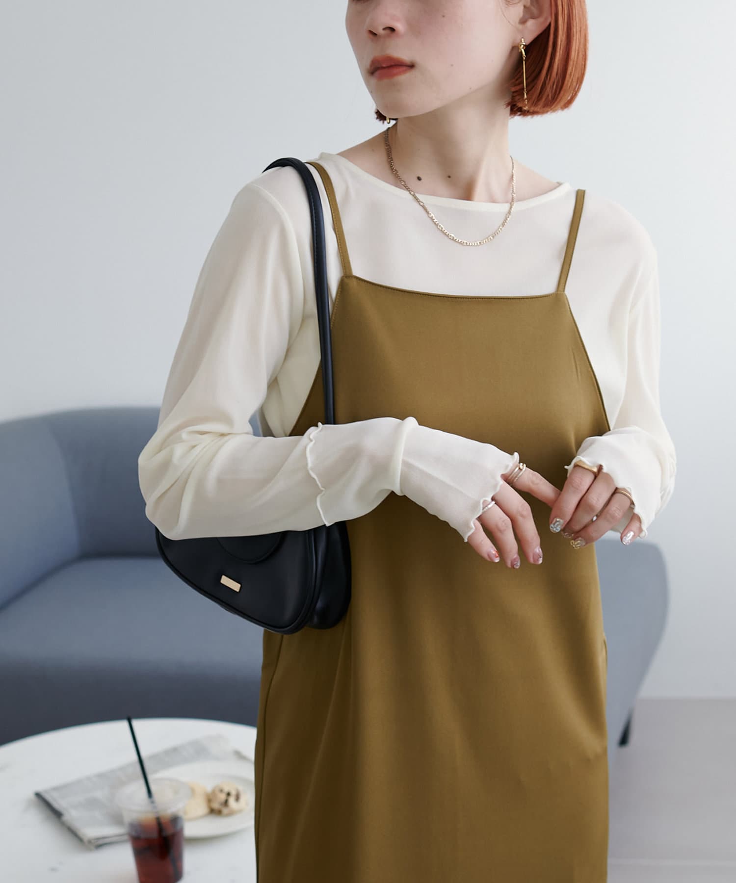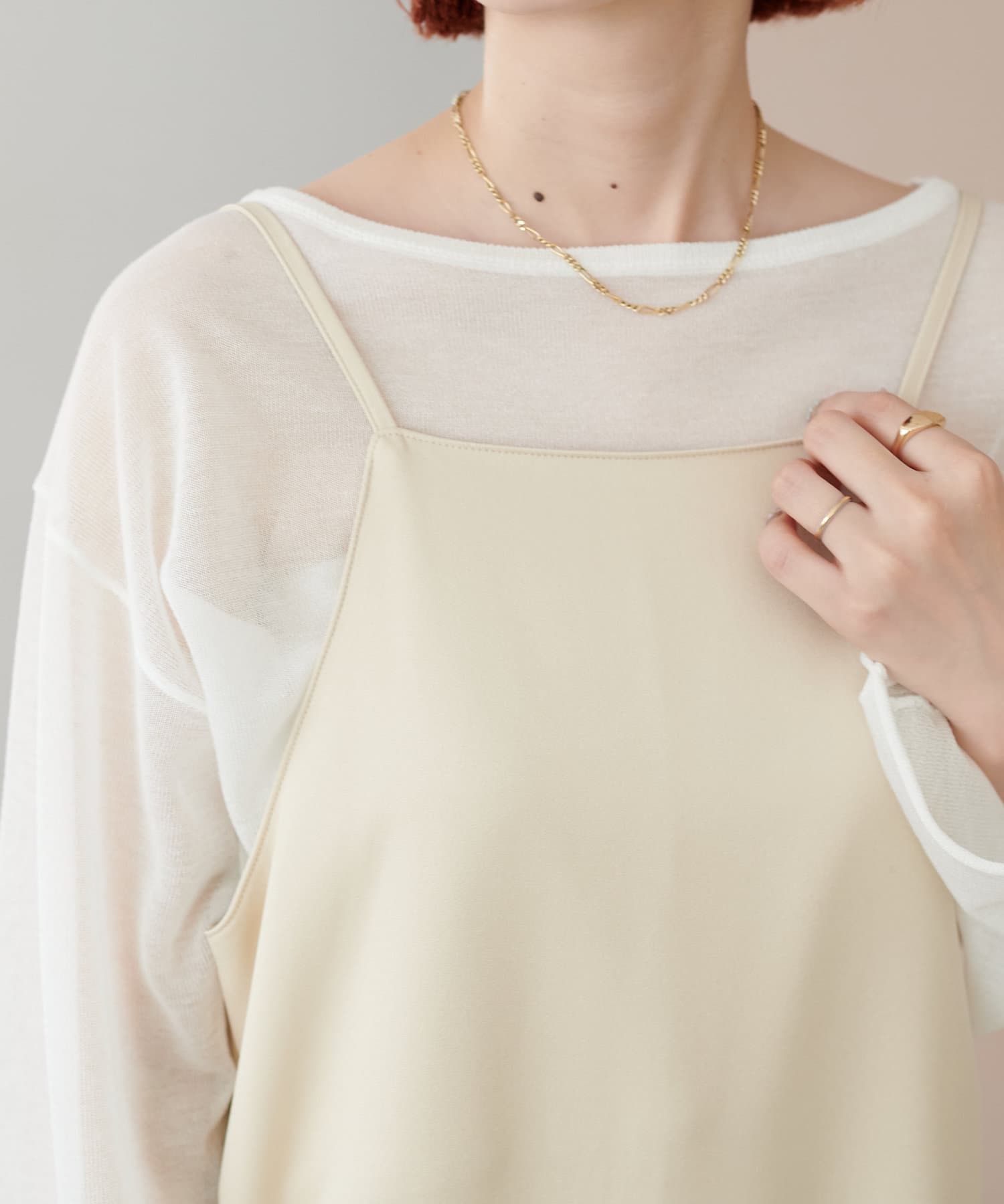 Iラインのすっきりとしたシルエットが、女性らしいキャミワンピース。