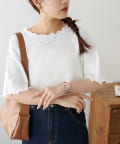 また、5分袖の丈感が腕まわりをすっきりと見せ、女性らしさを演出してくれます!
