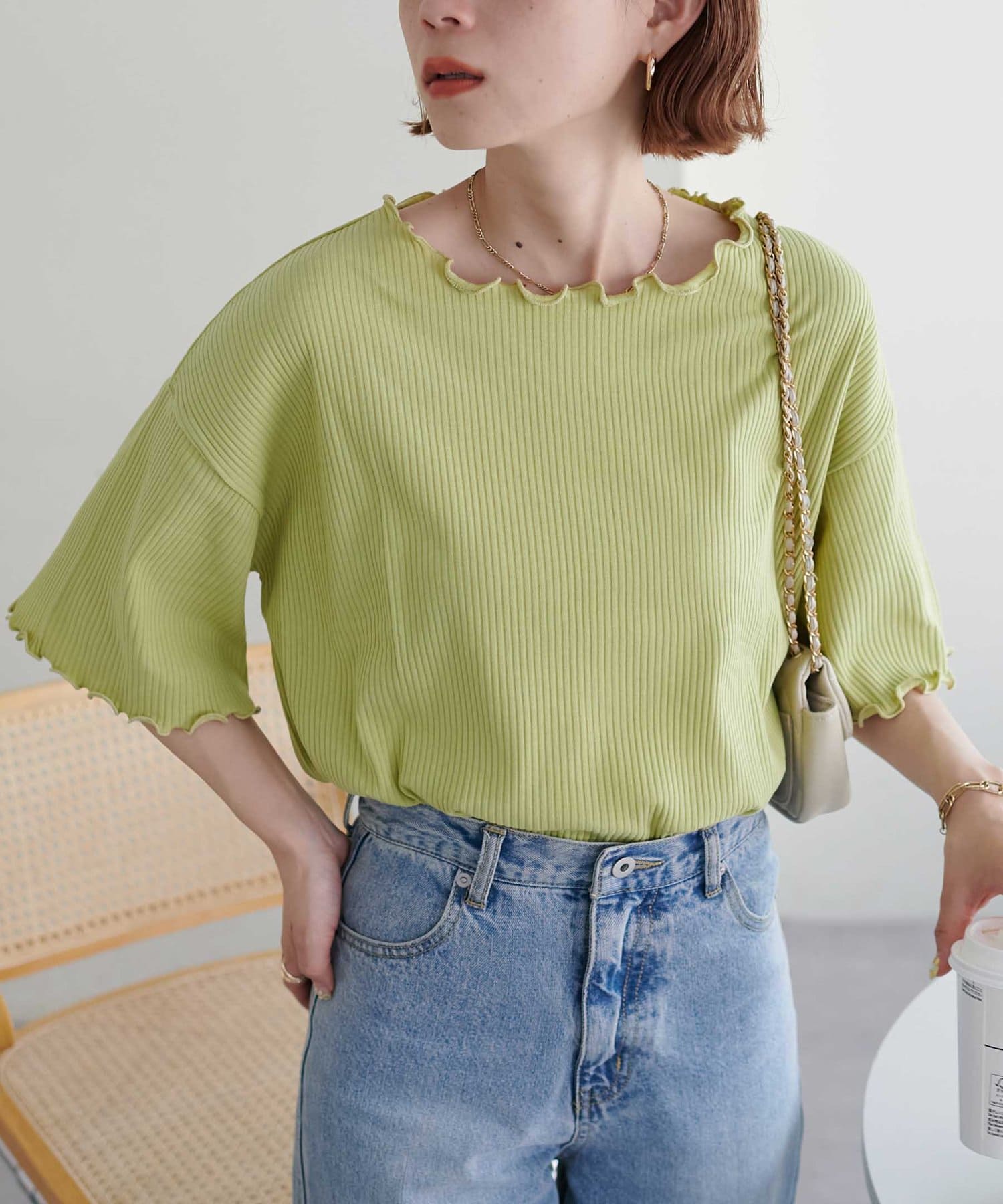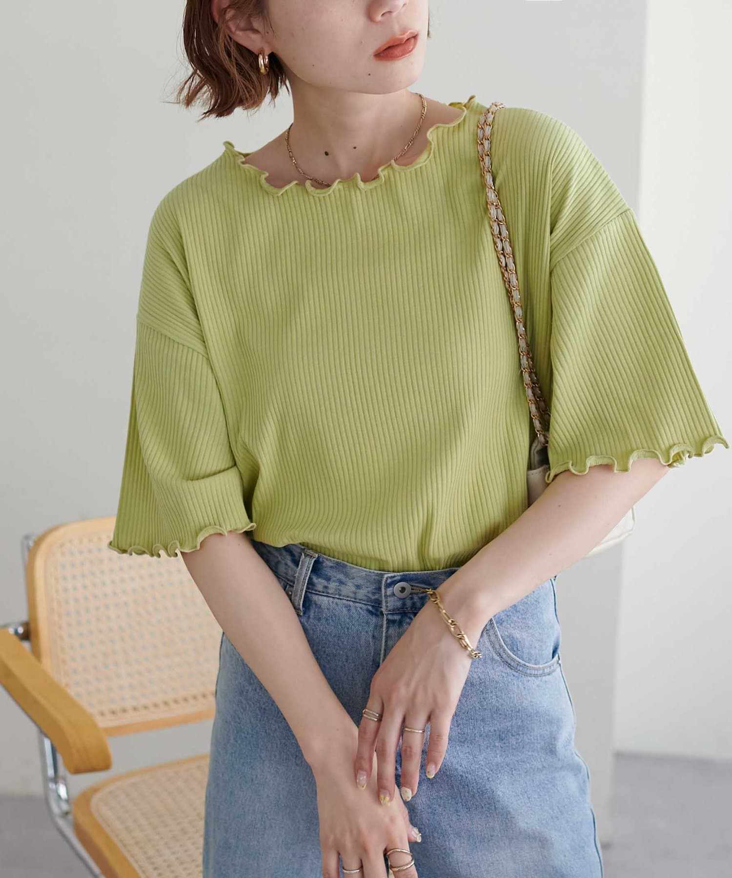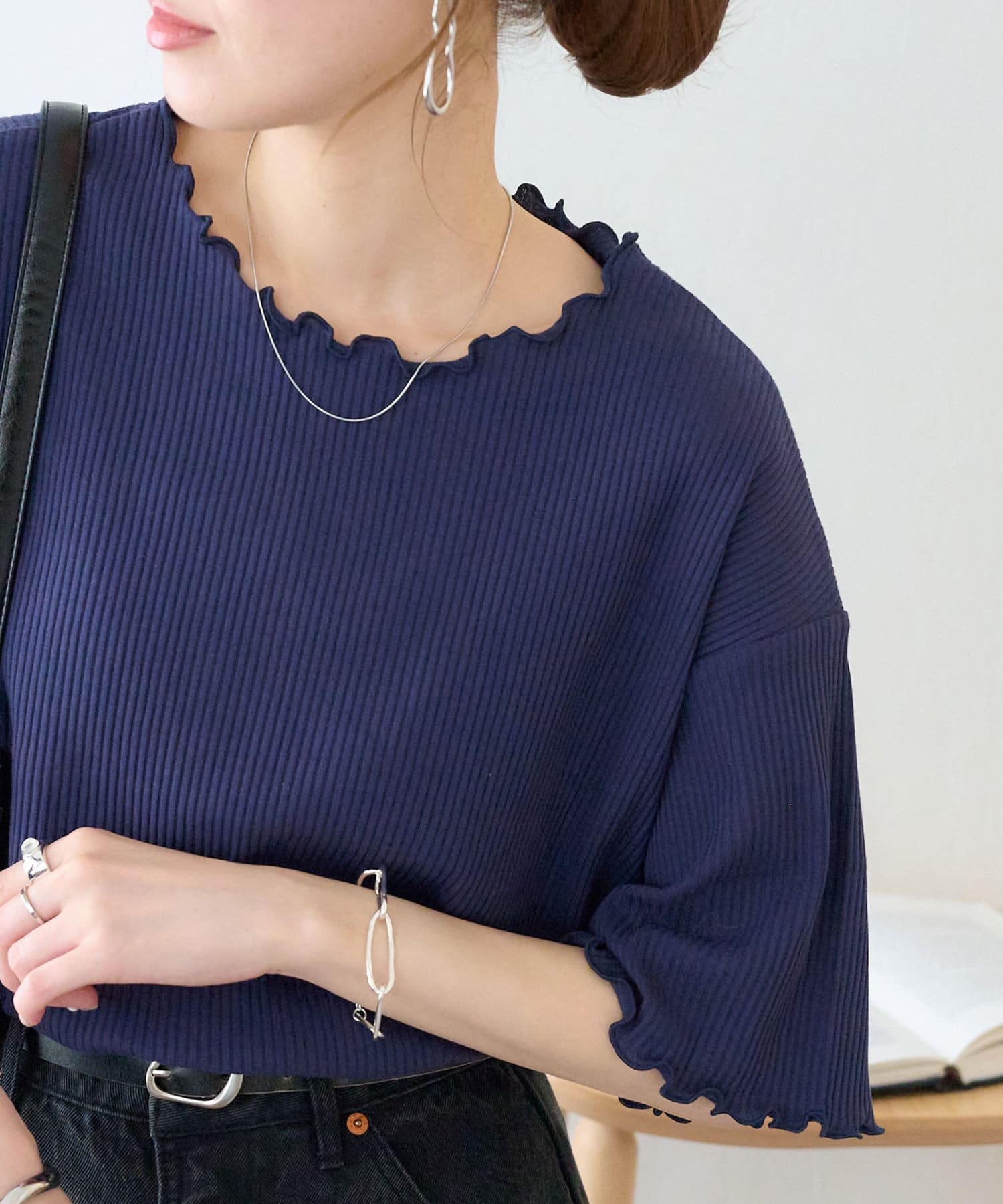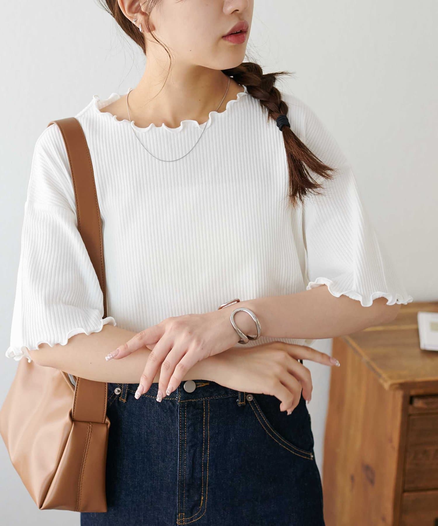 【二の腕カバーにも◎/22色展開】リブメローフレア5分袖≪WEB限定≫