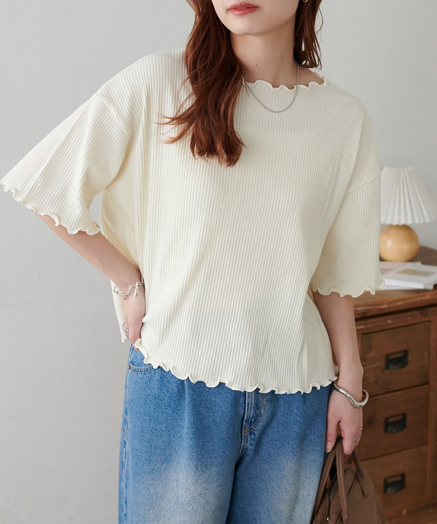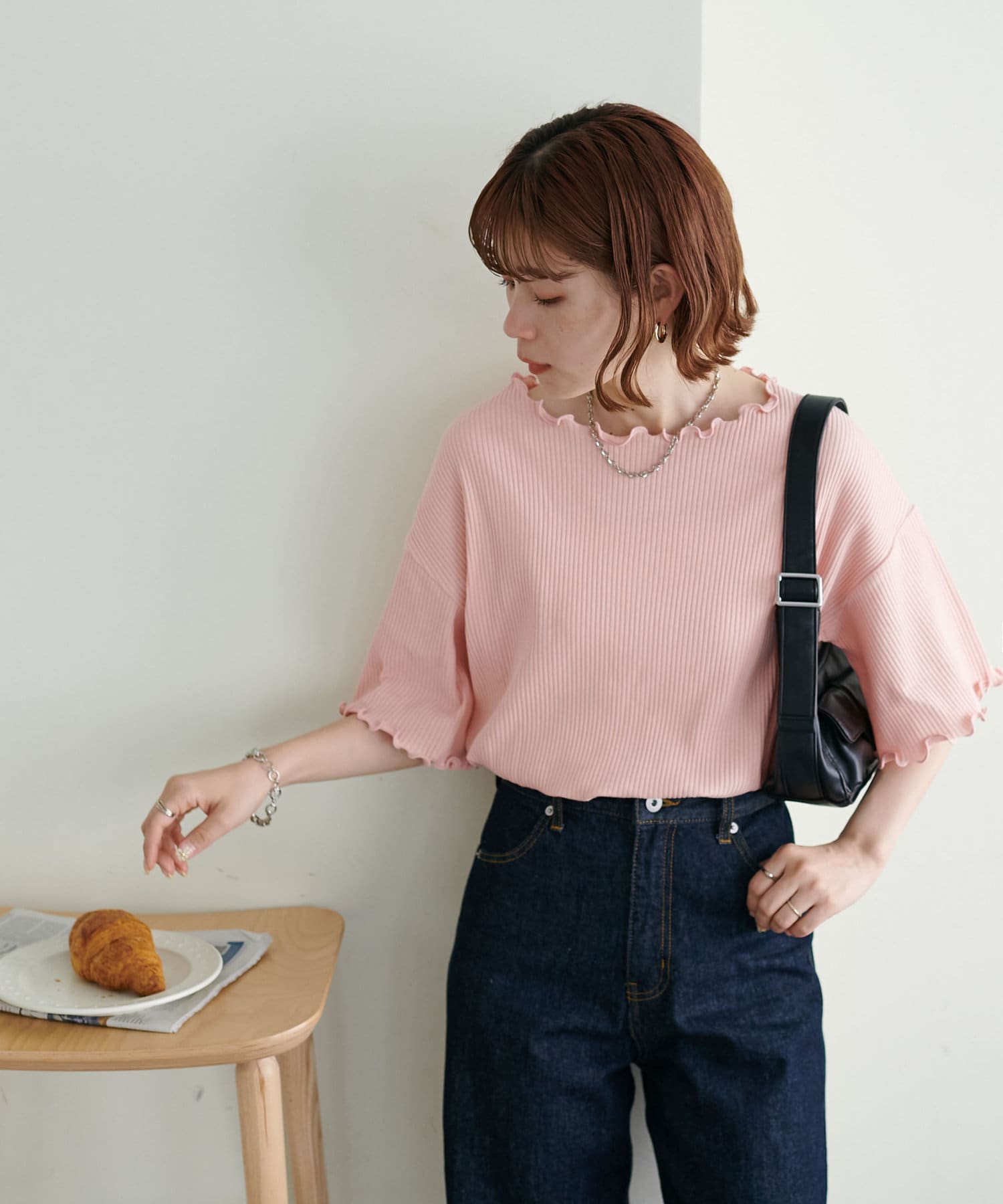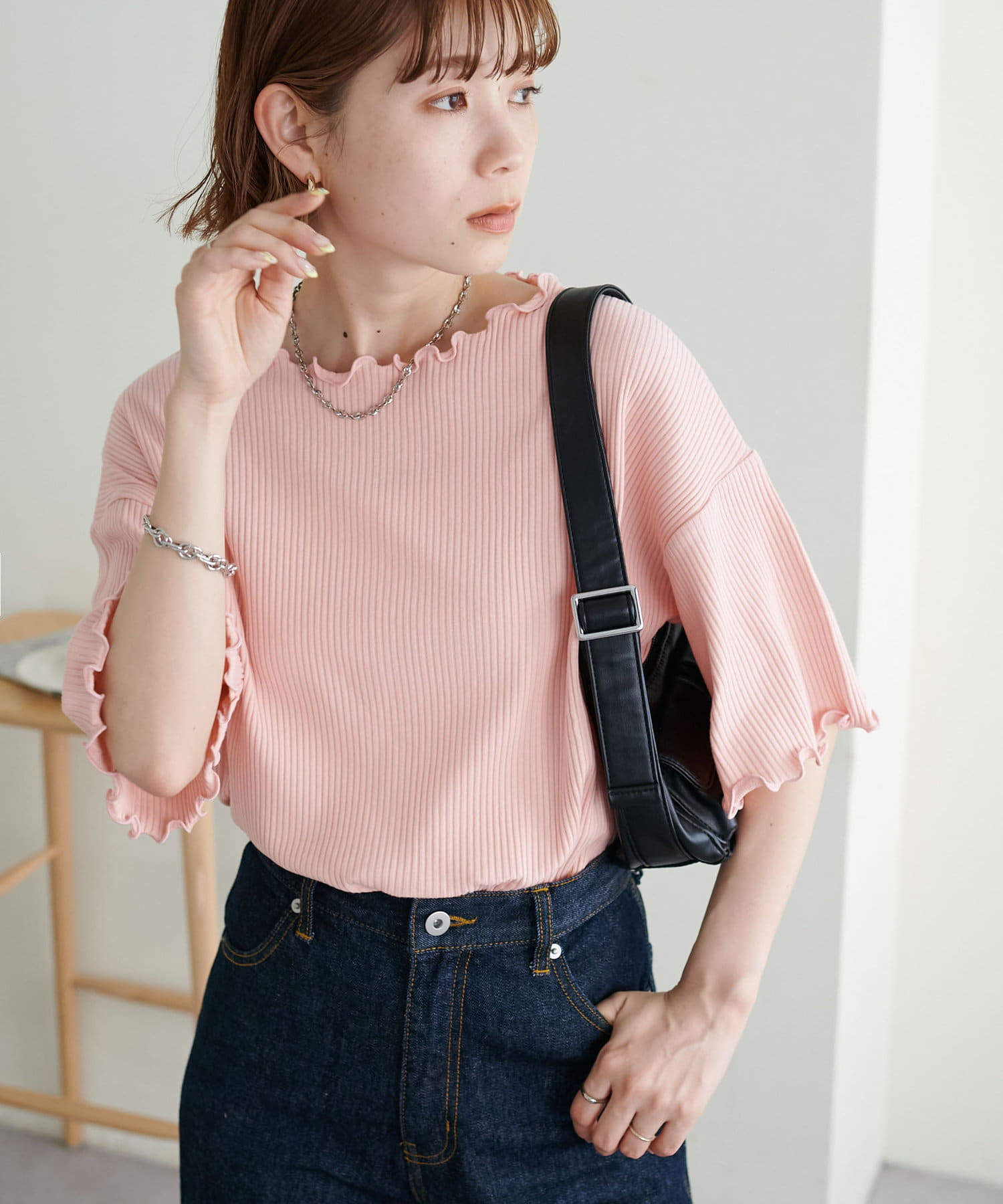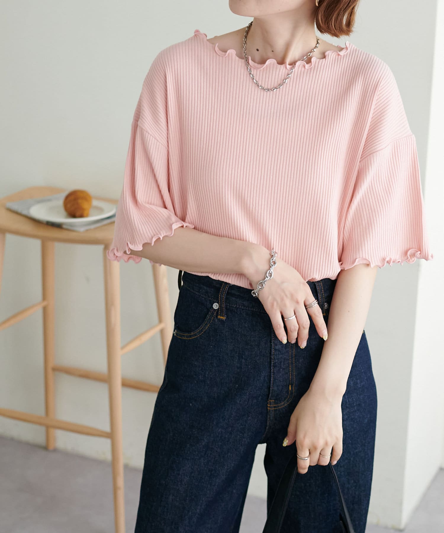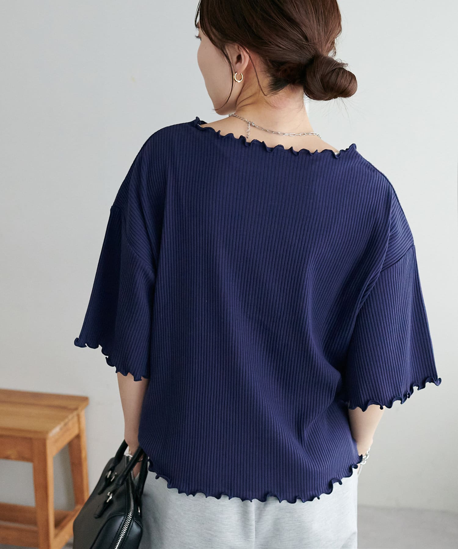 【二の腕カバーにも◎/22色展開】リブメローフレア5分袖≪WEB限定≫