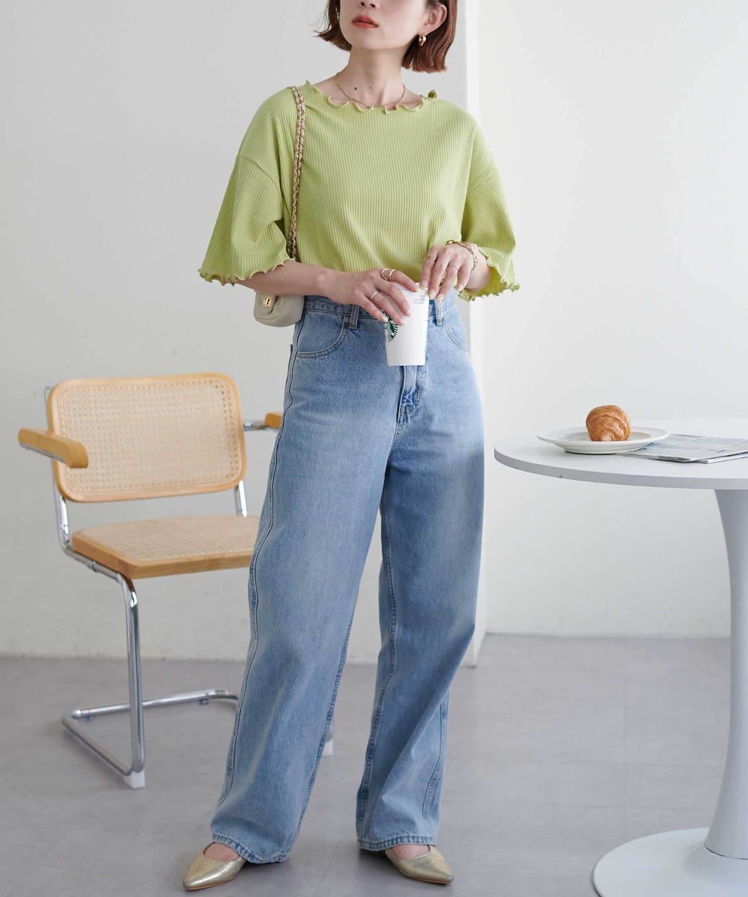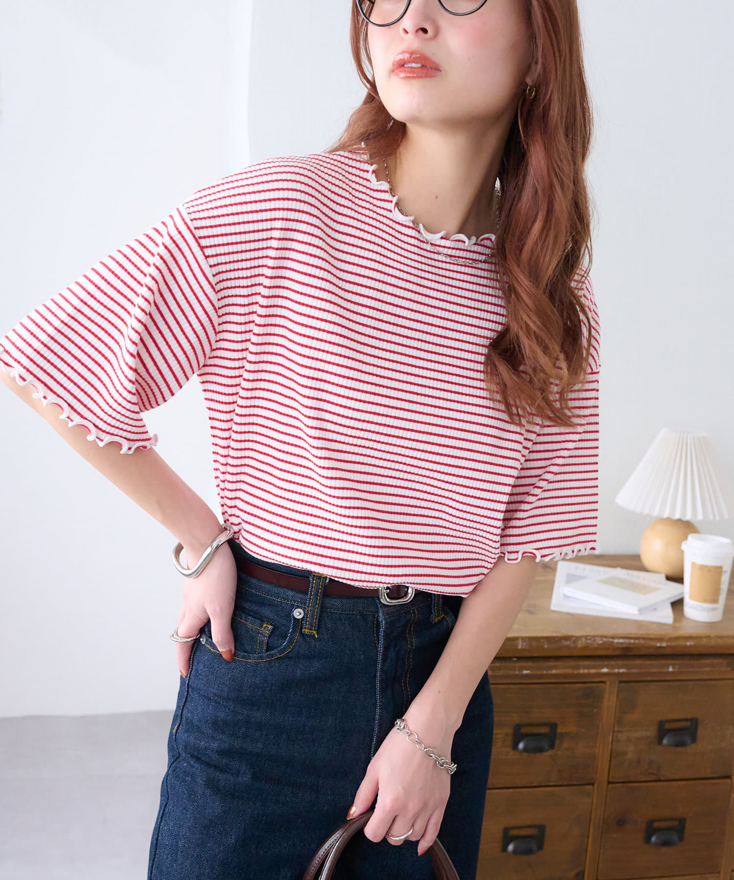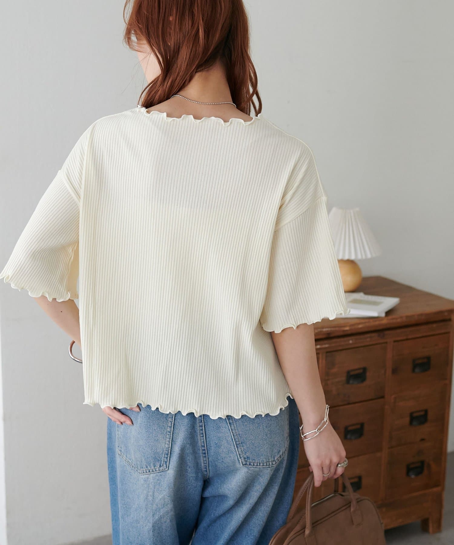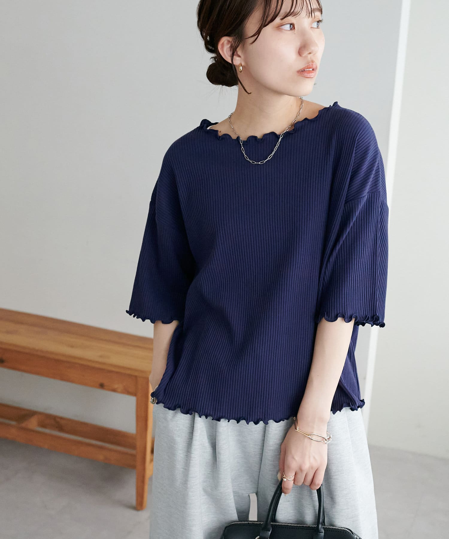 【二の腕カバーにも◎/22色展開】リブメローフレア5分袖≪WEB限定≫