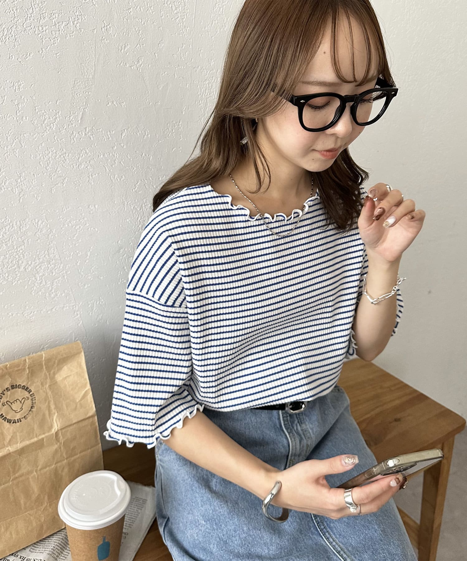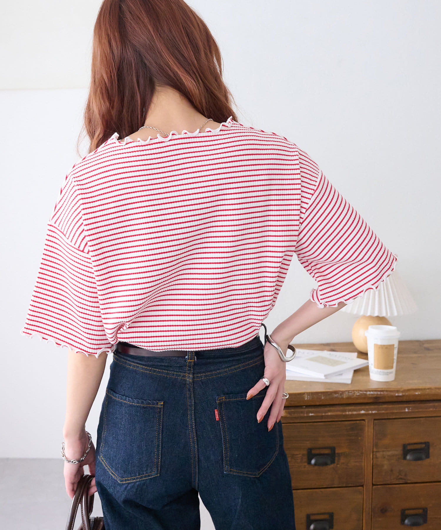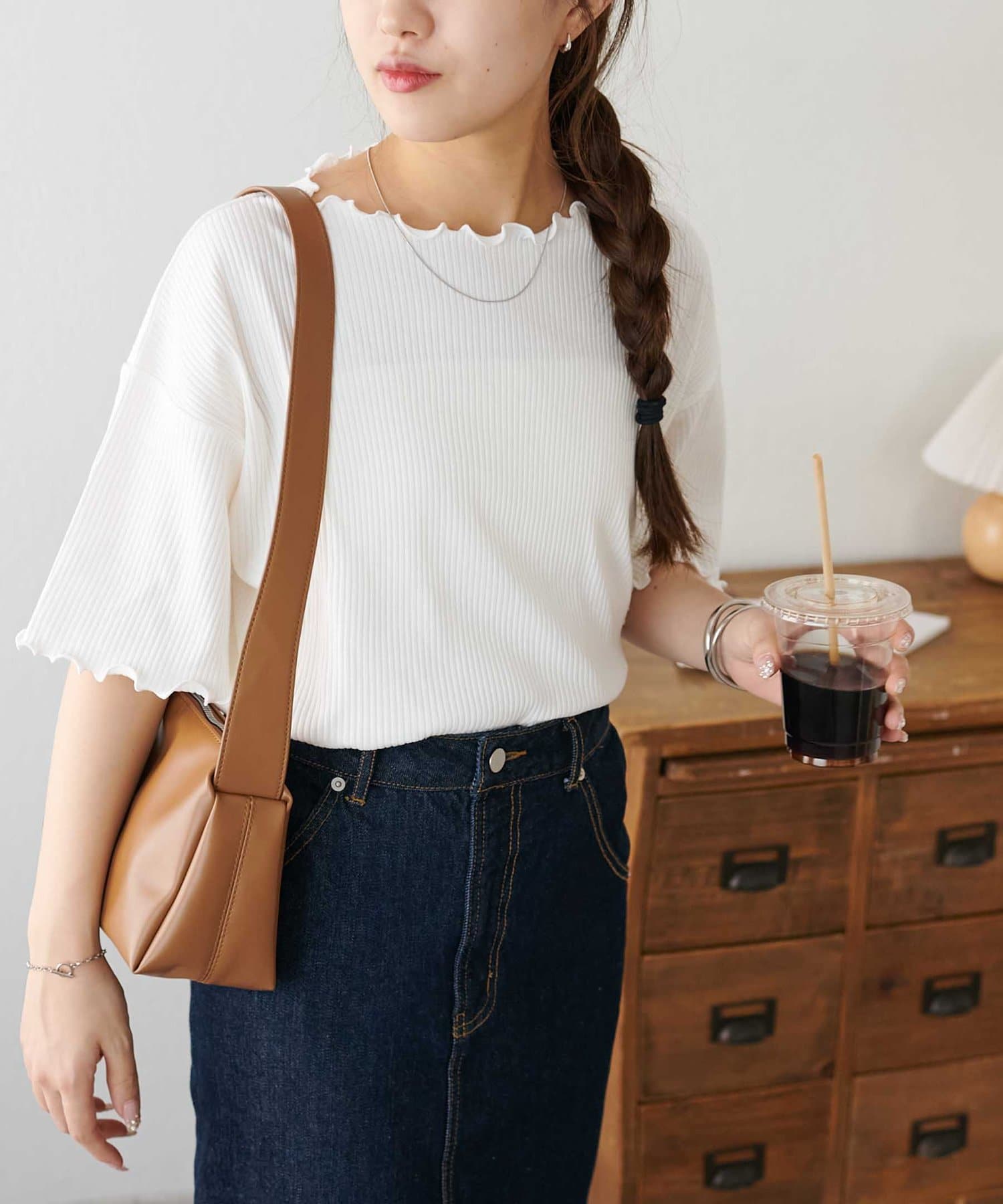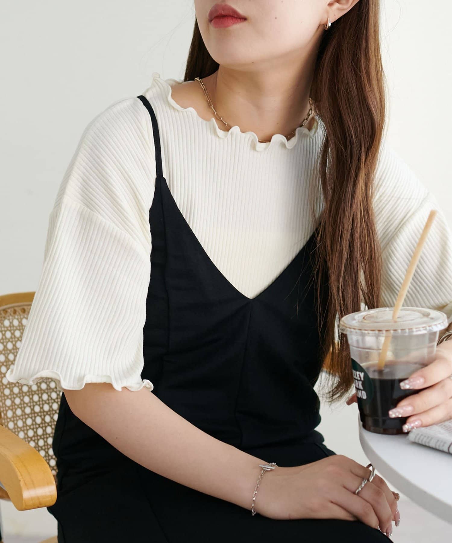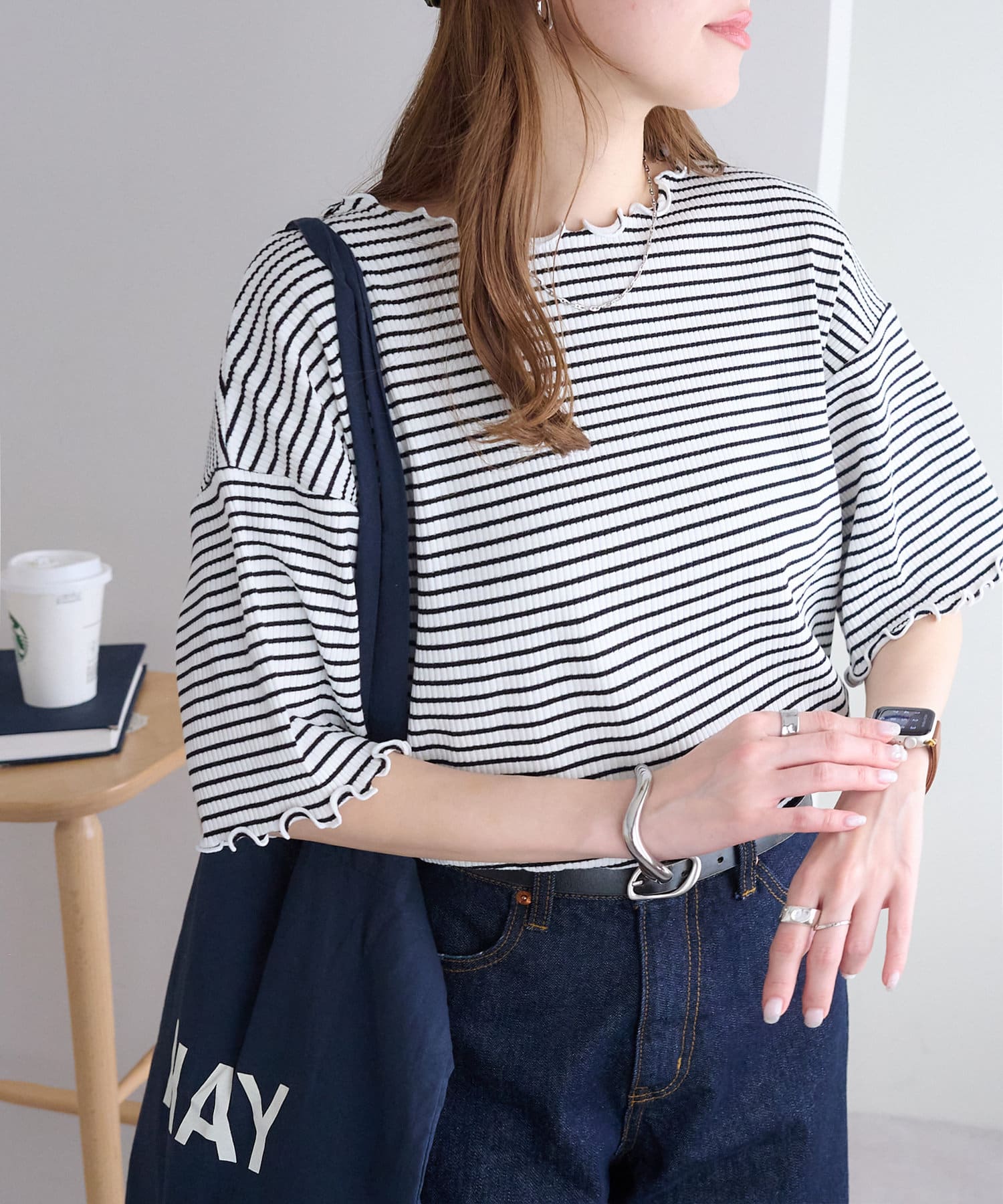 【二の腕カバーにも◎/22色展開】リブメローフレア5分袖≪WEB限定≫