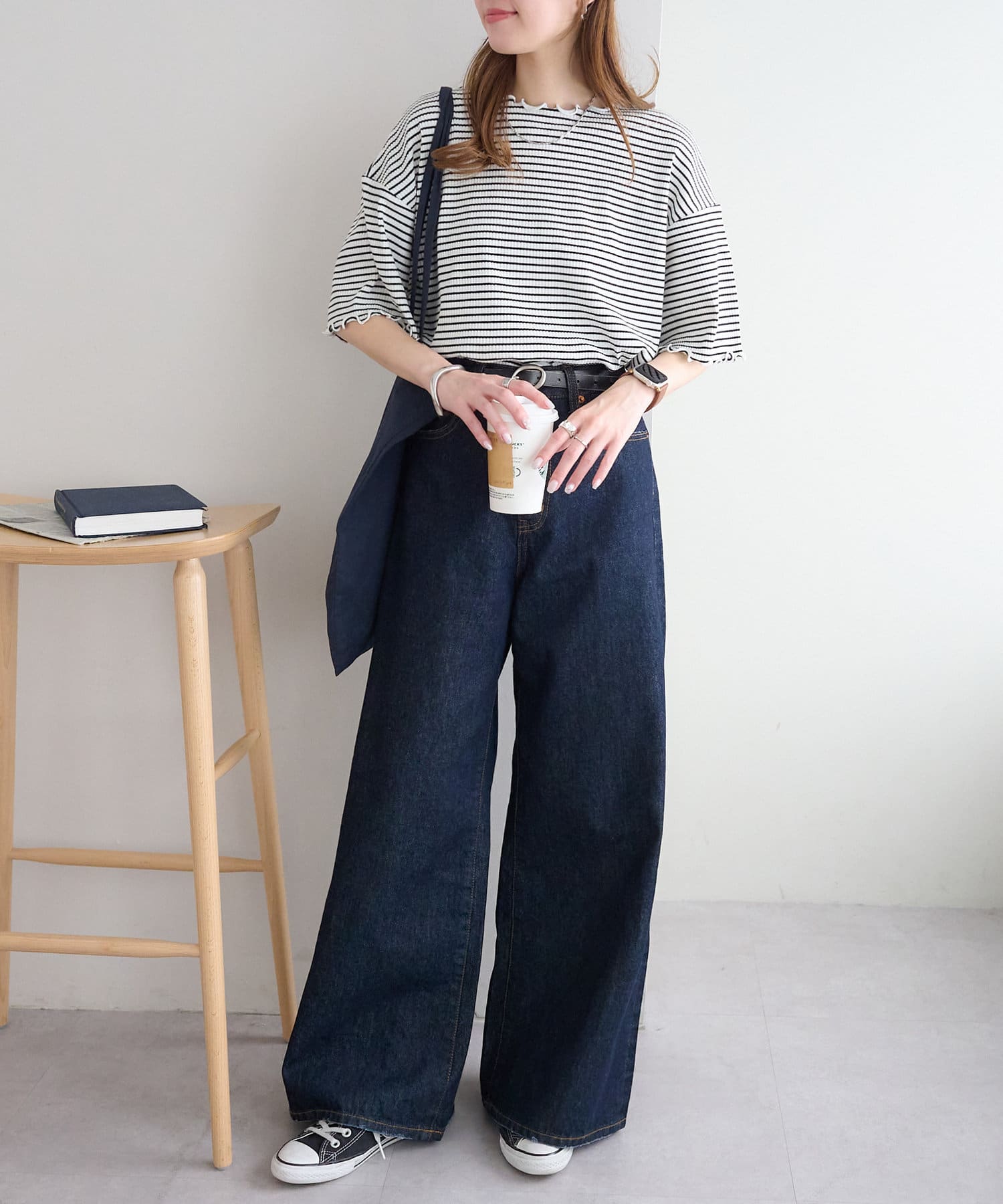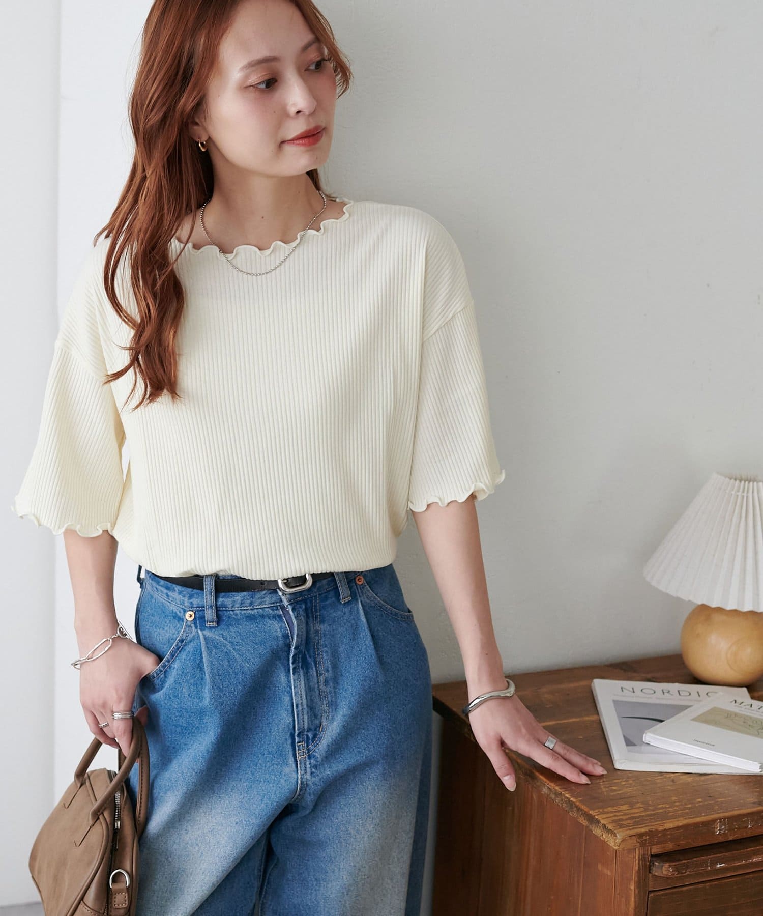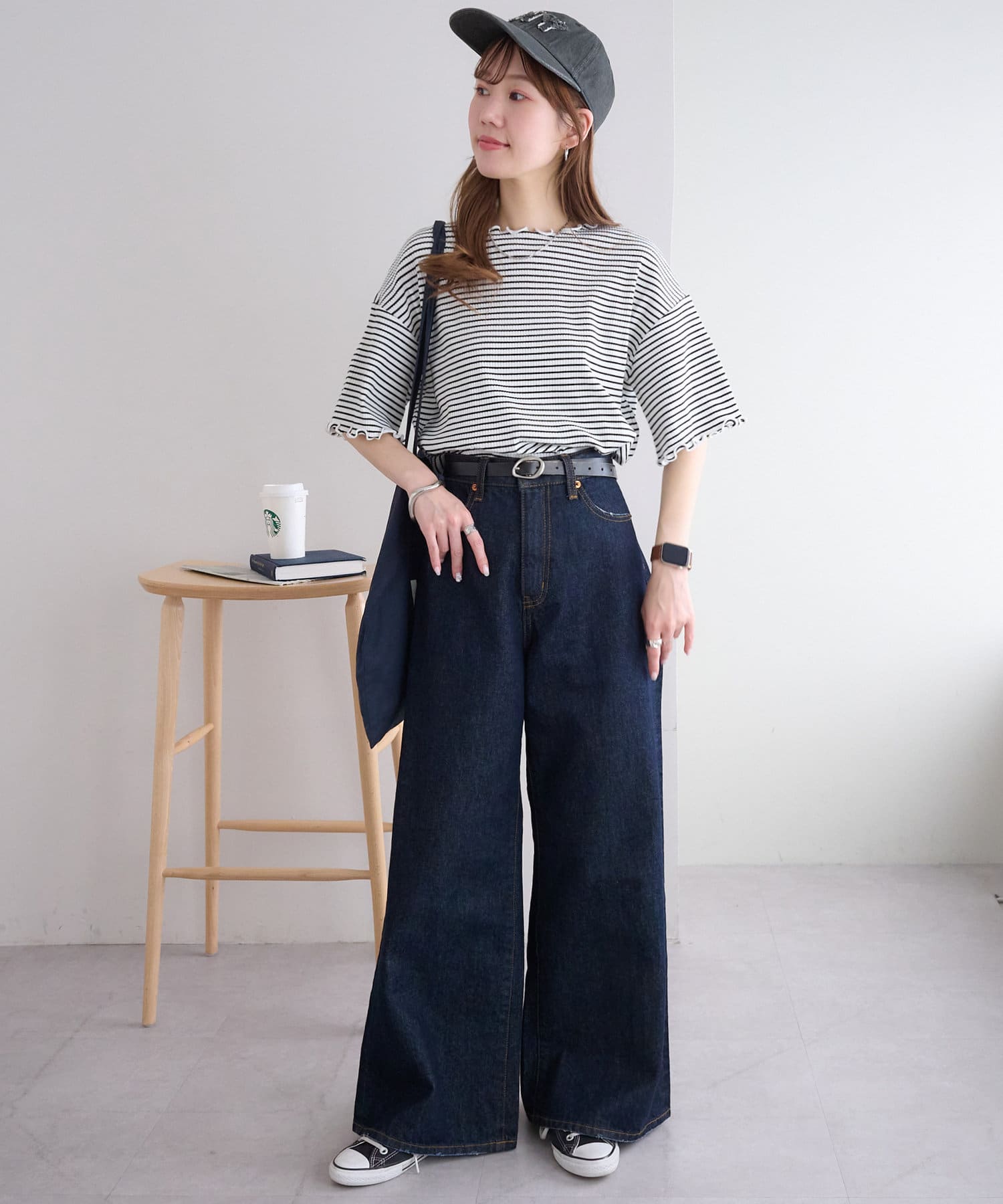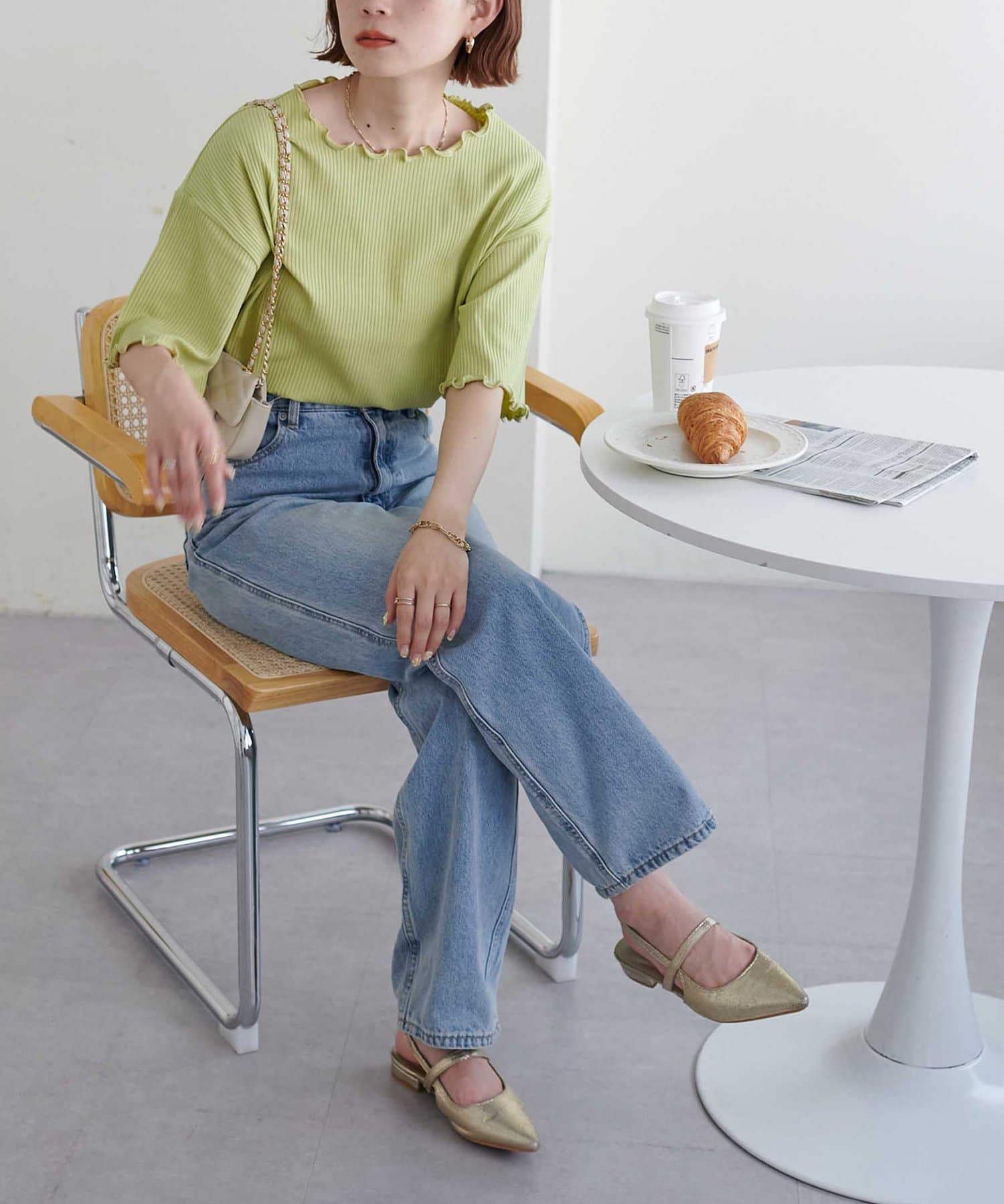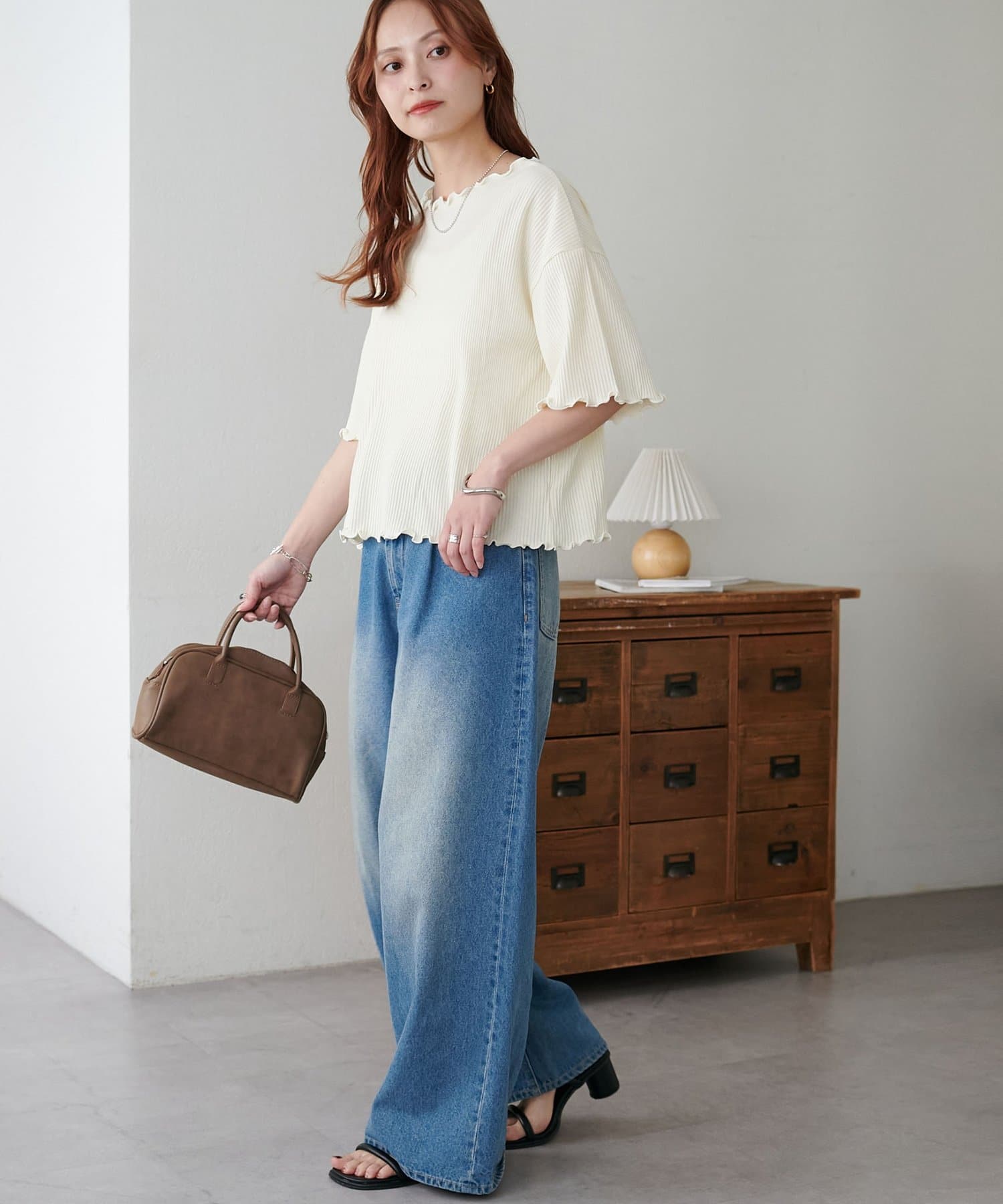 裾のメローフレアが程よいアクセントになり、ラフに着ても女性らしさをしっかり演出してくれます!