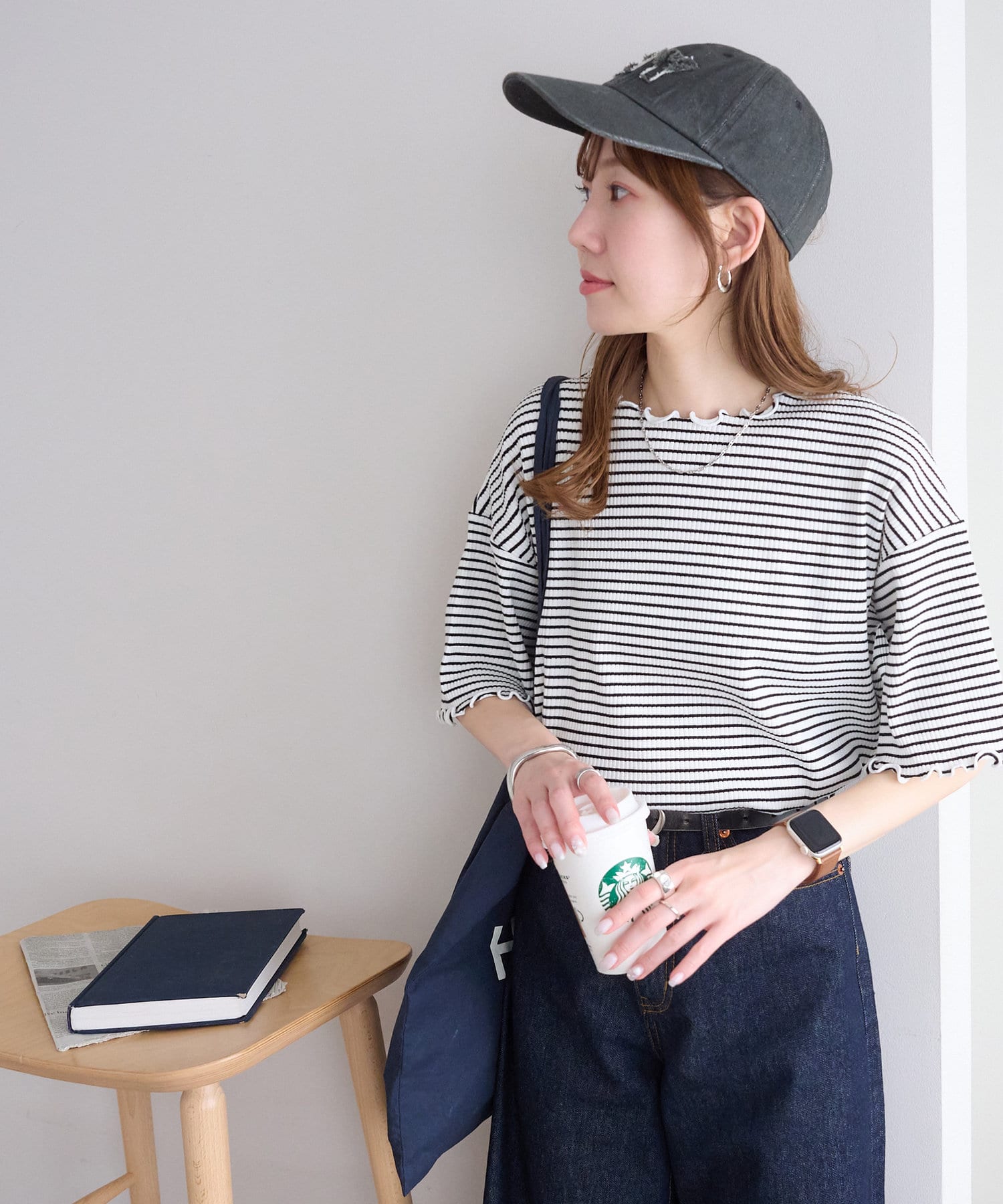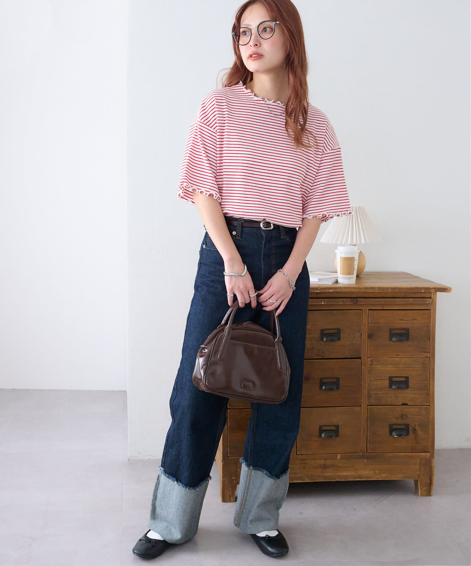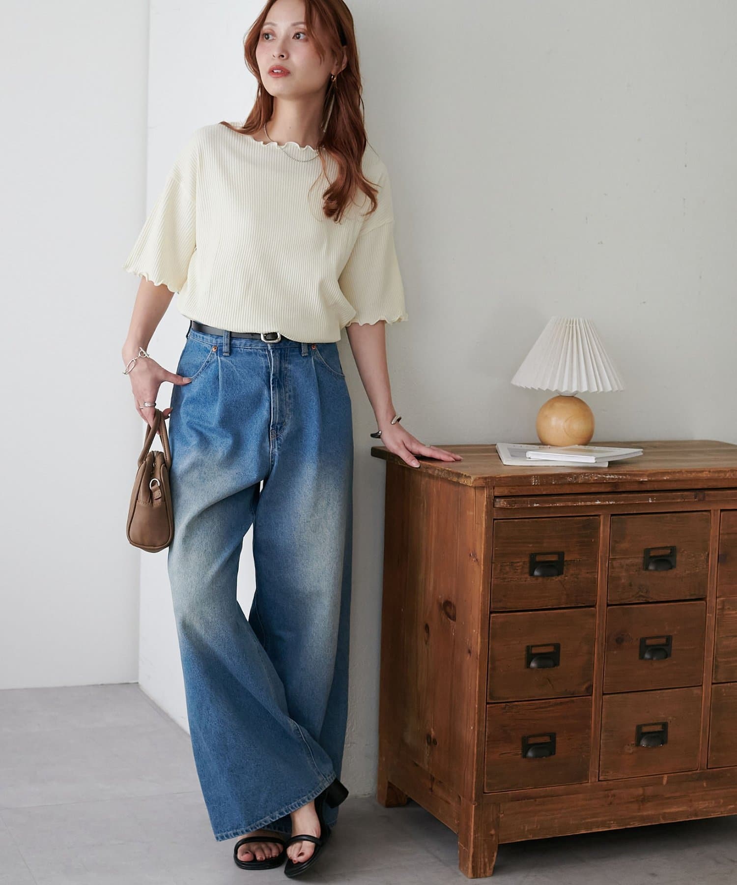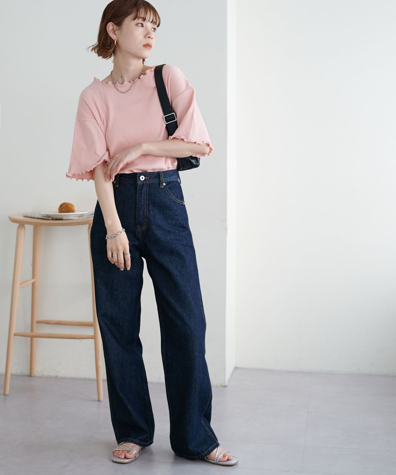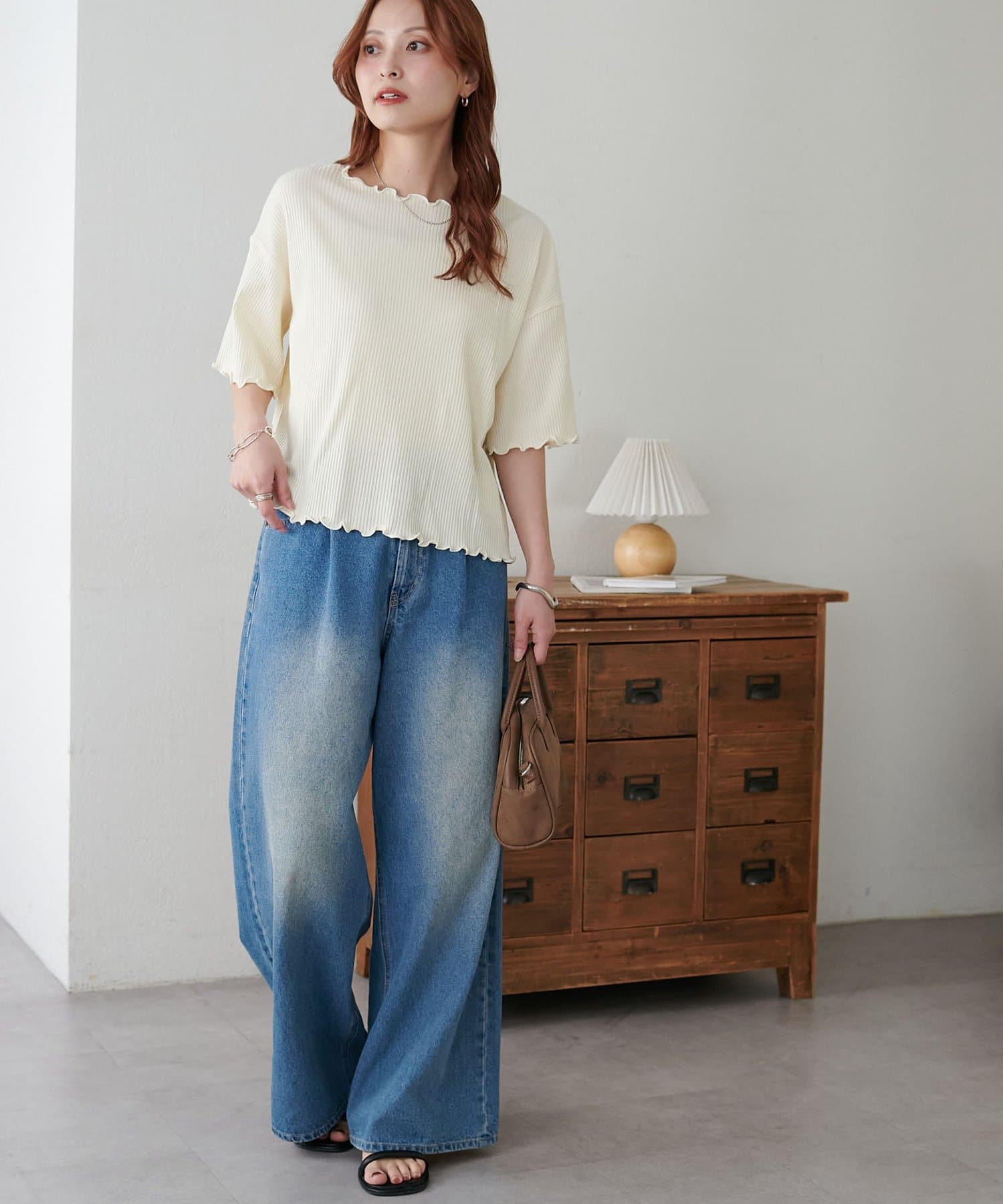 裾のメローフレアが程よいアクセントになり、ラフに着ても女性らしさをしっかり演出してくれます!