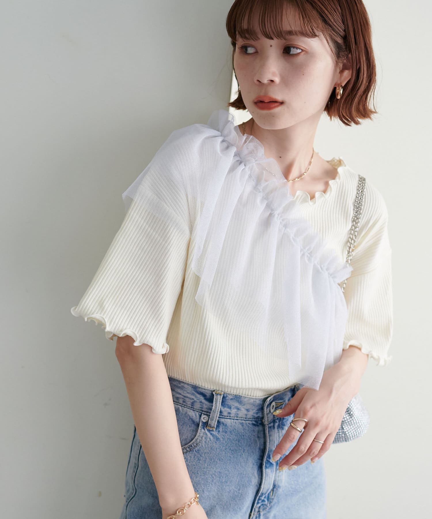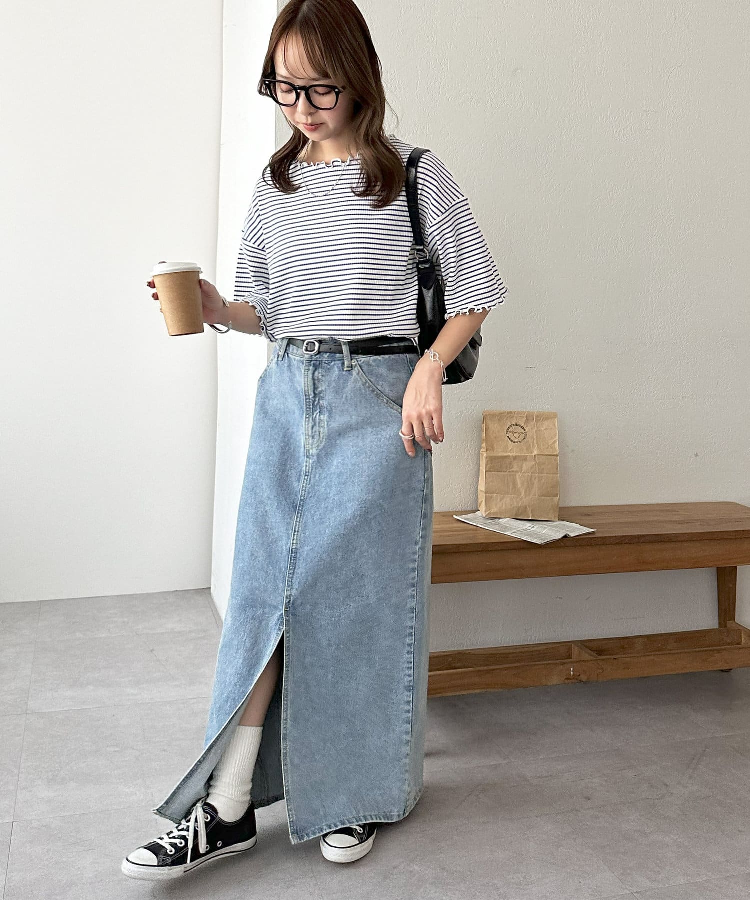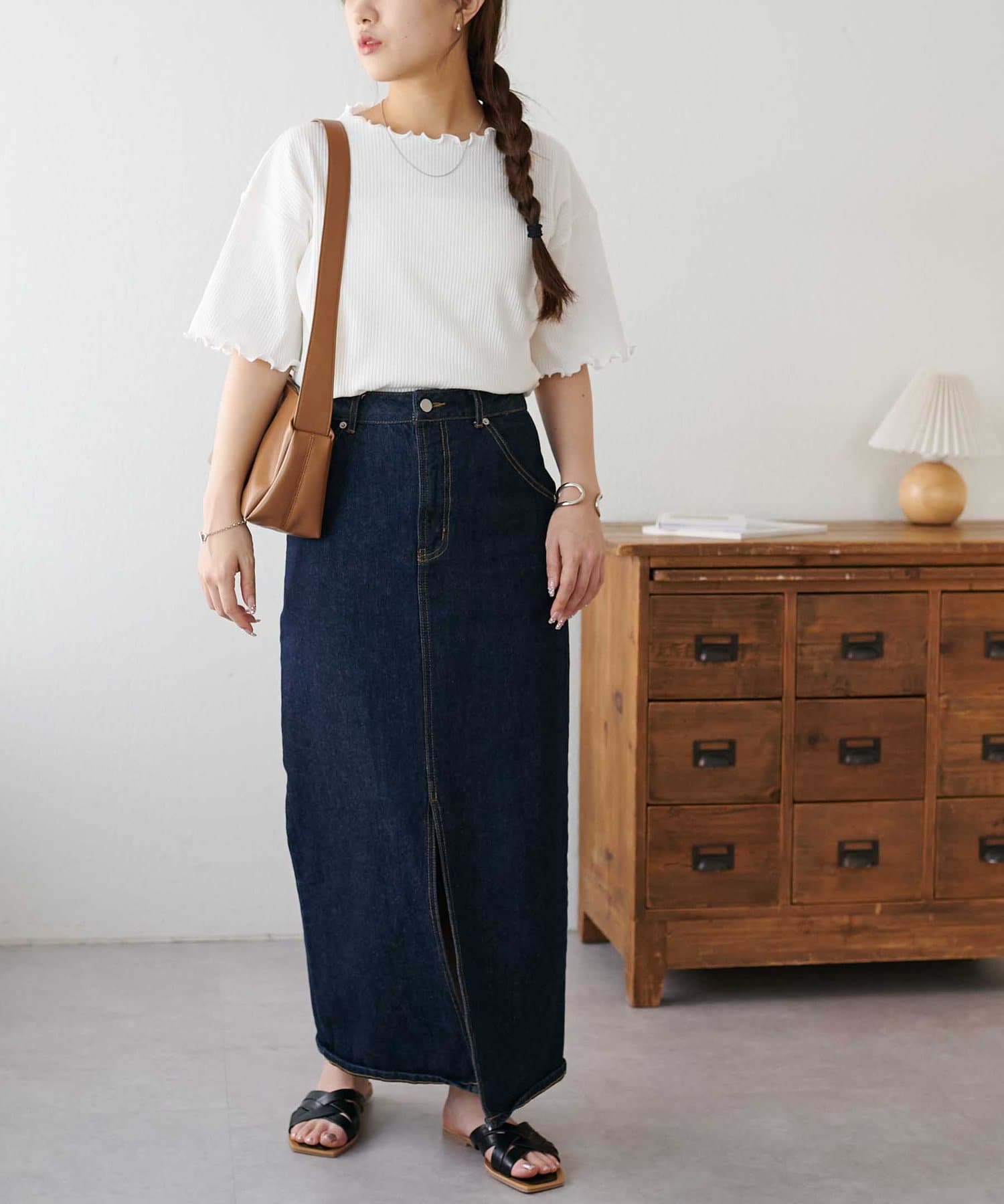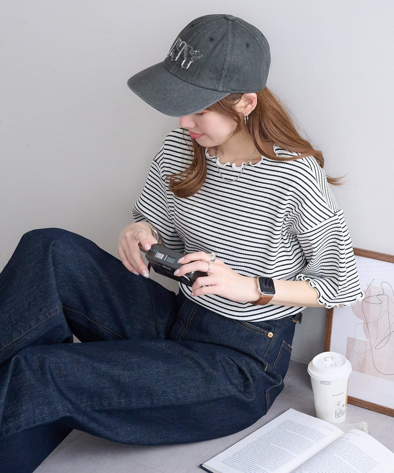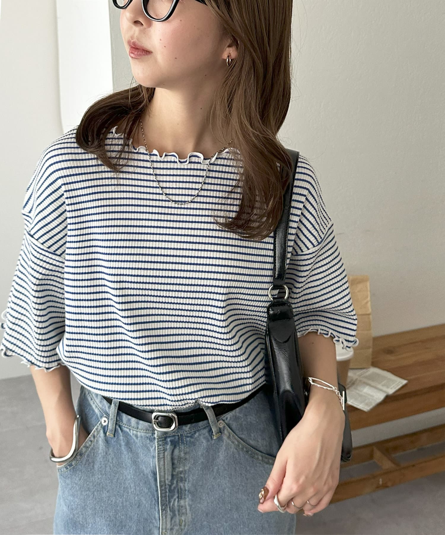 裾のメローフレアが程よいアクセントになり、ラフに着ても女性らしさをしっかり演出してくれます!