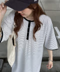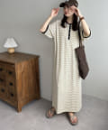 ボーダーの半袖ワンピ、春らしくて