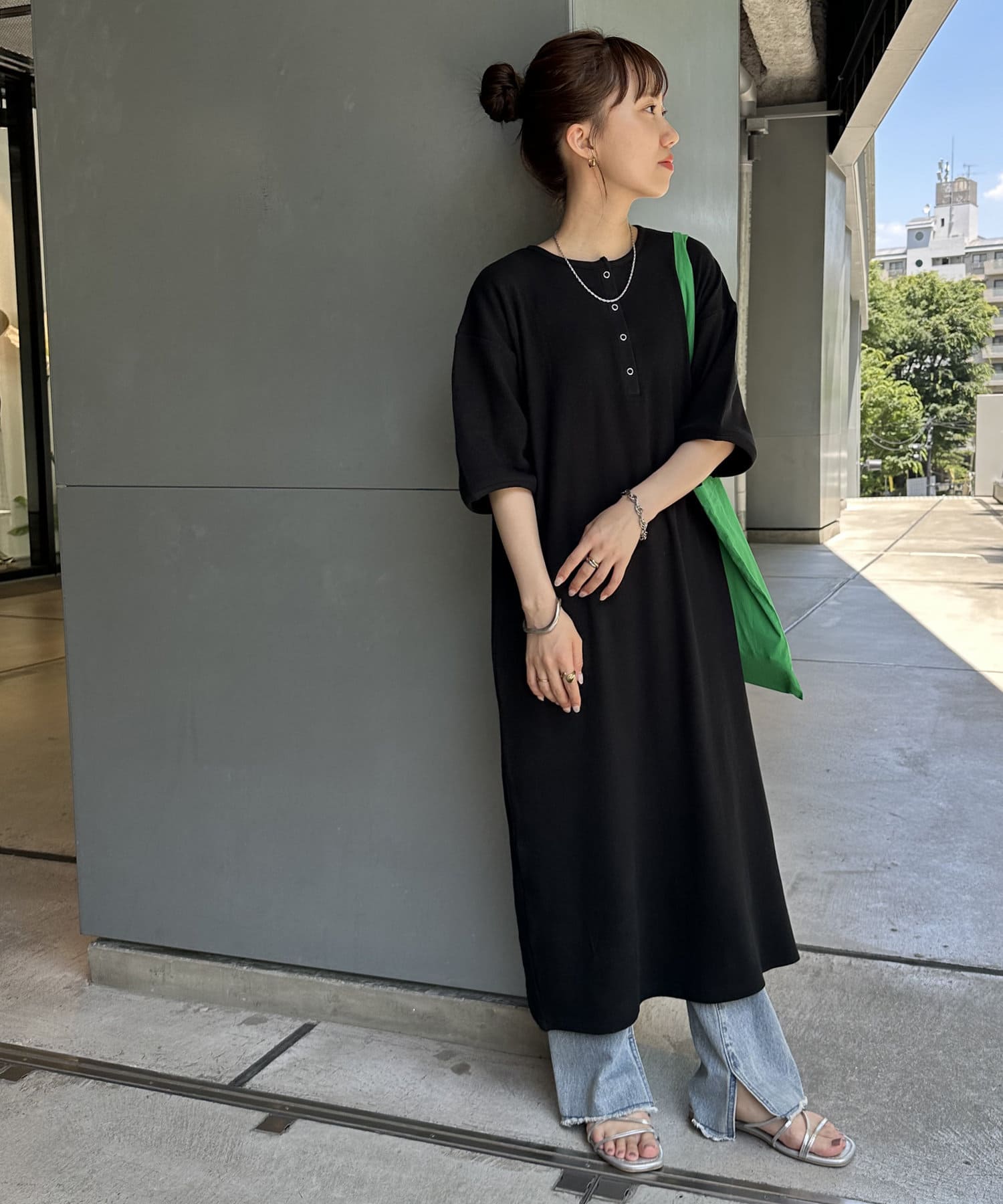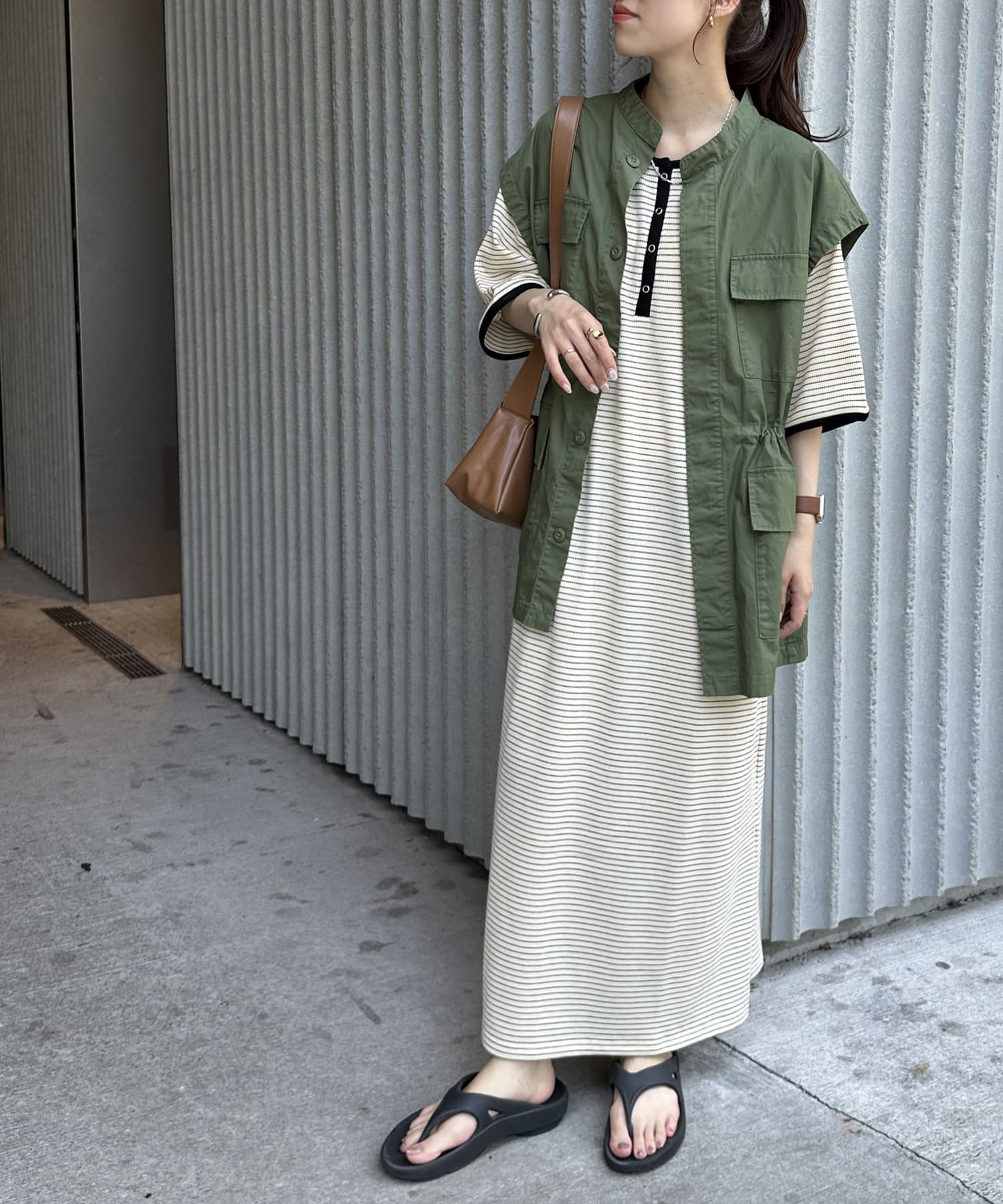 155㎝スタッフ(Fサイズ着用):ヒールのないサンダルを履いても引きずる事なく着られました!