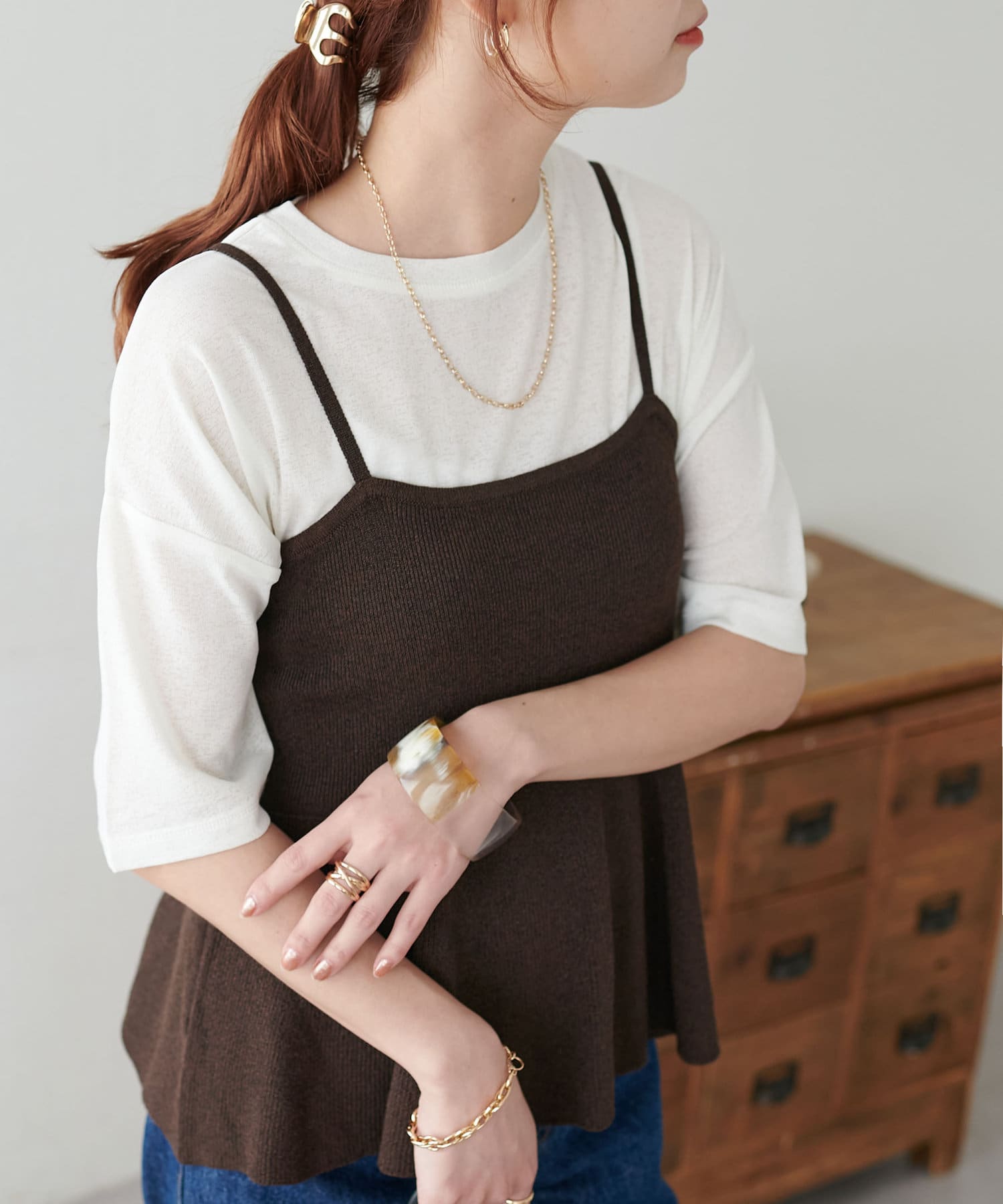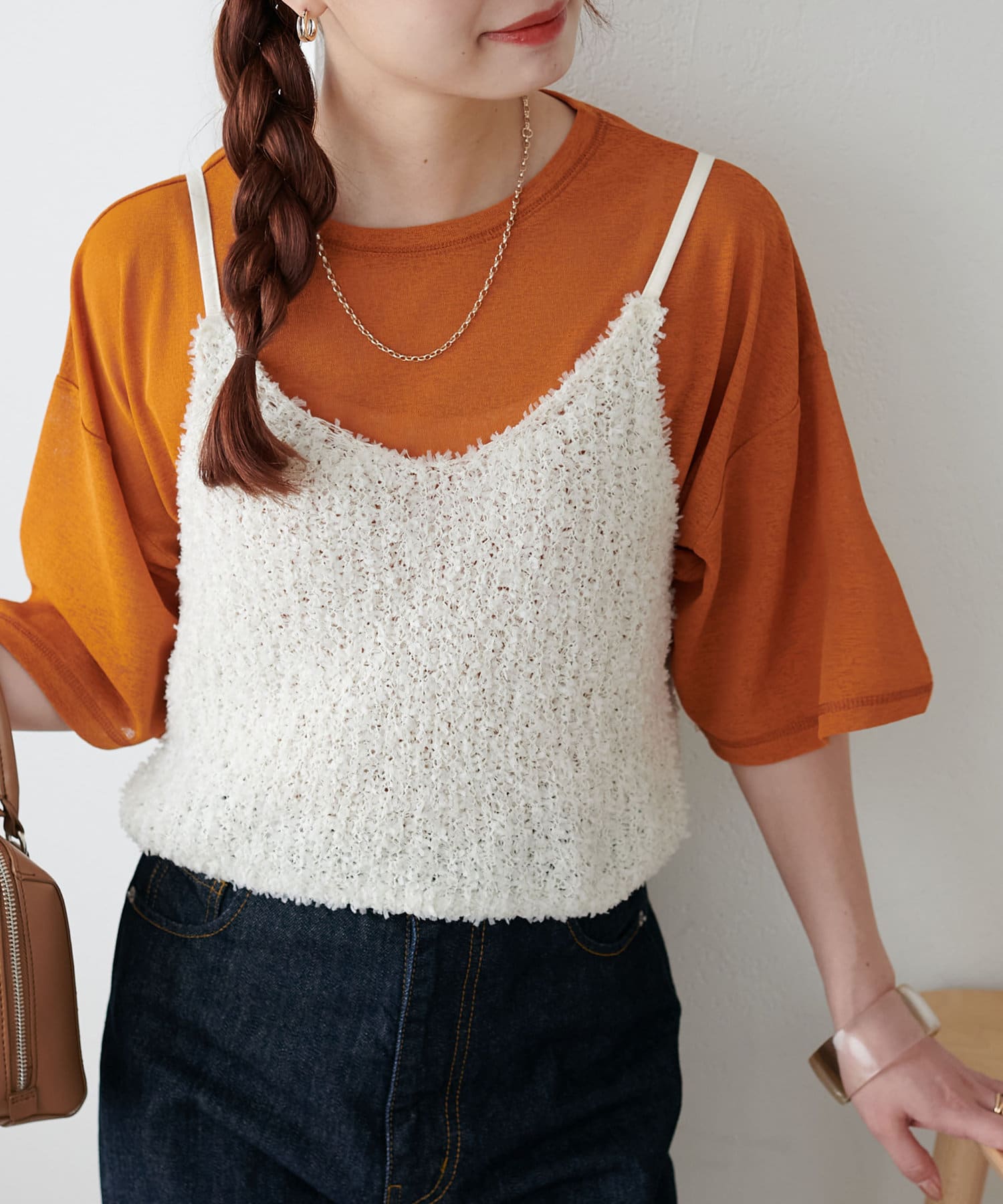 シンプルなデザインなので一枚着はもちろん、ビスチェやワンピースなどのインナーにも大活躍な一枚です★