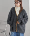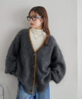 ふんわりと柔らかい手触りが特徴のブークレシャギーカーディガン。