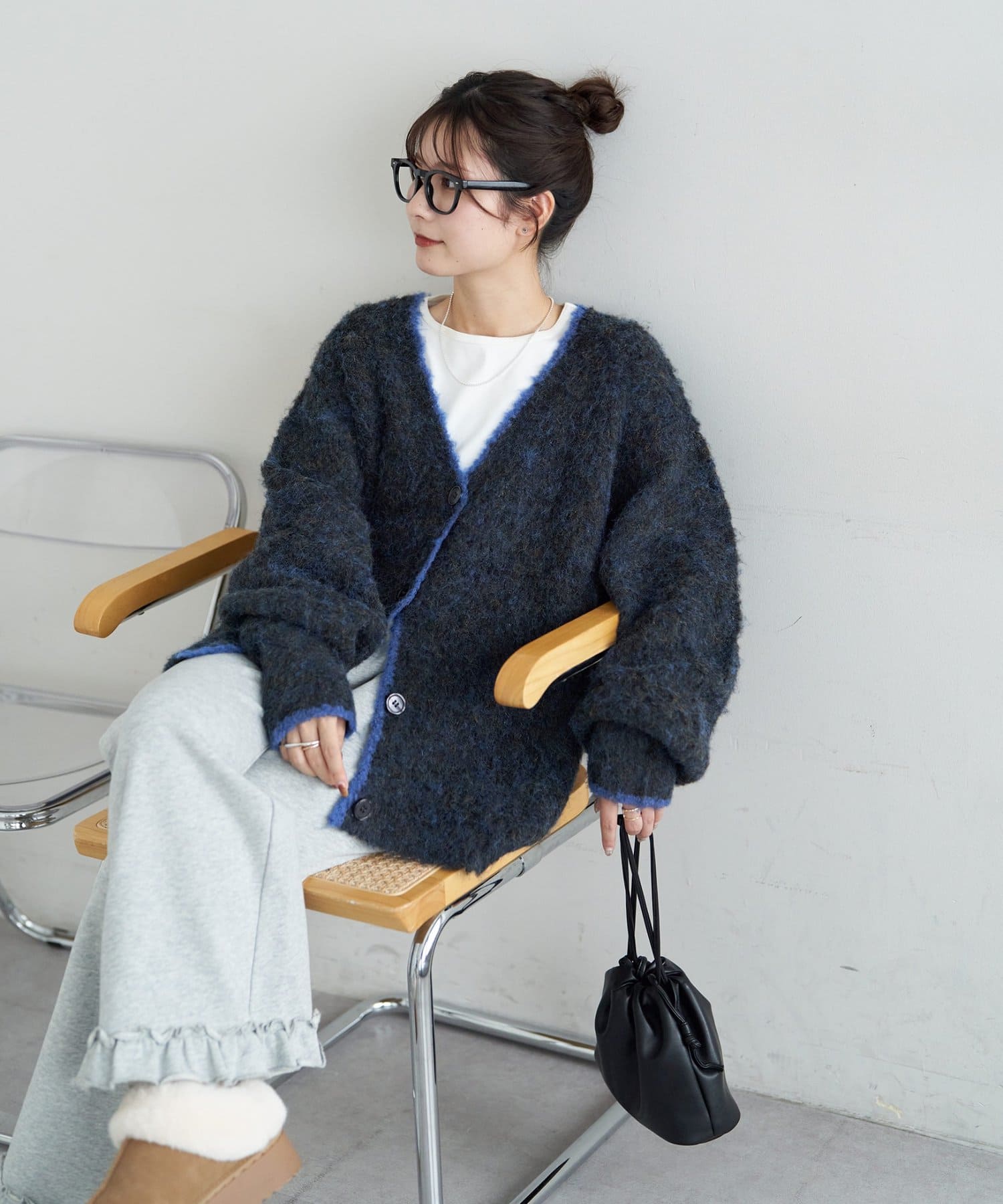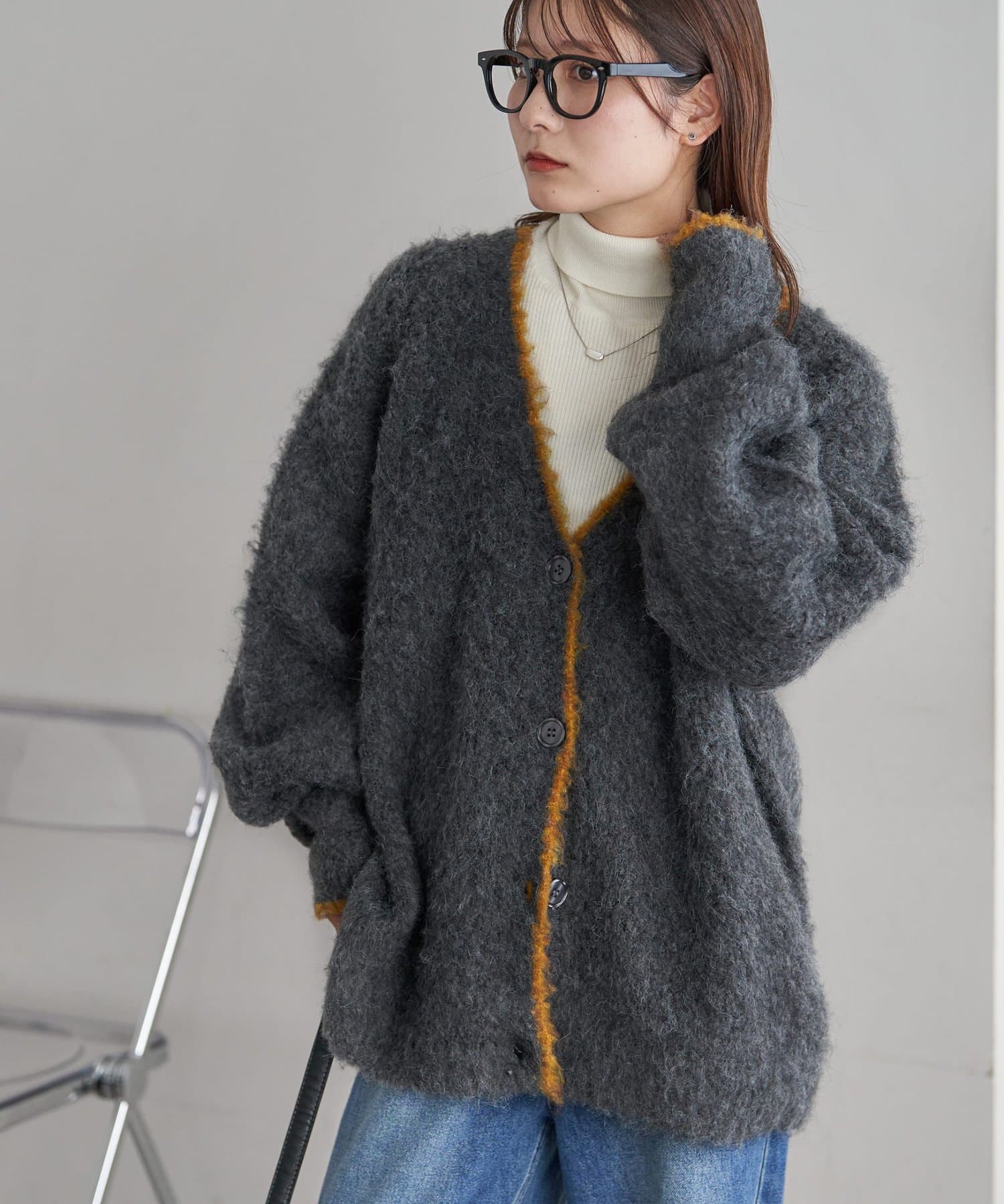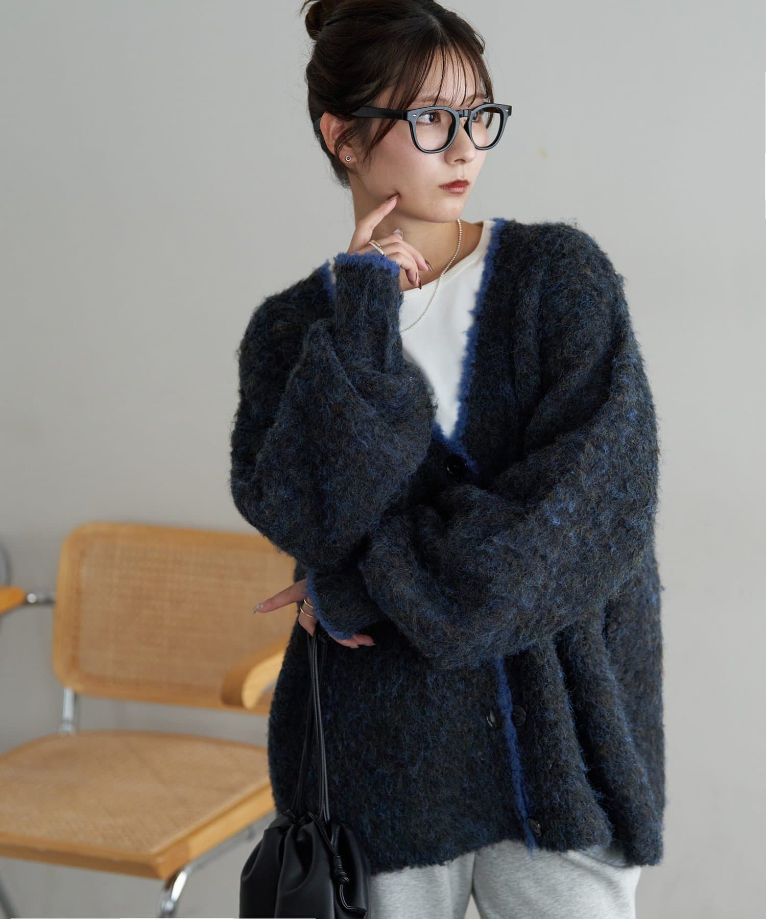 【15色展開/柔らか素材】MIXブークレシャギー配色Vネックカーディガン《WEB限定》