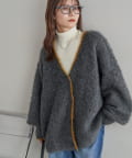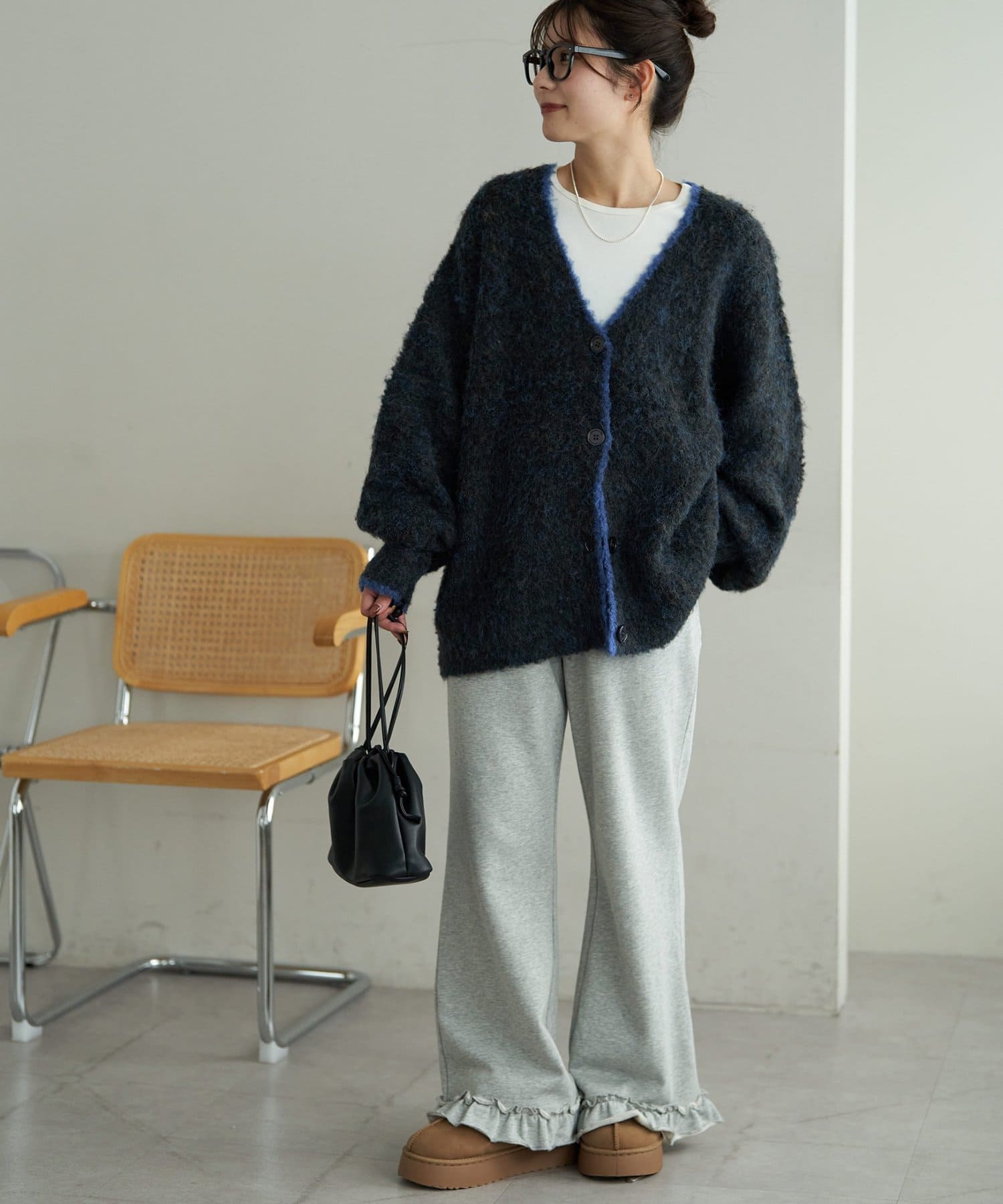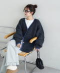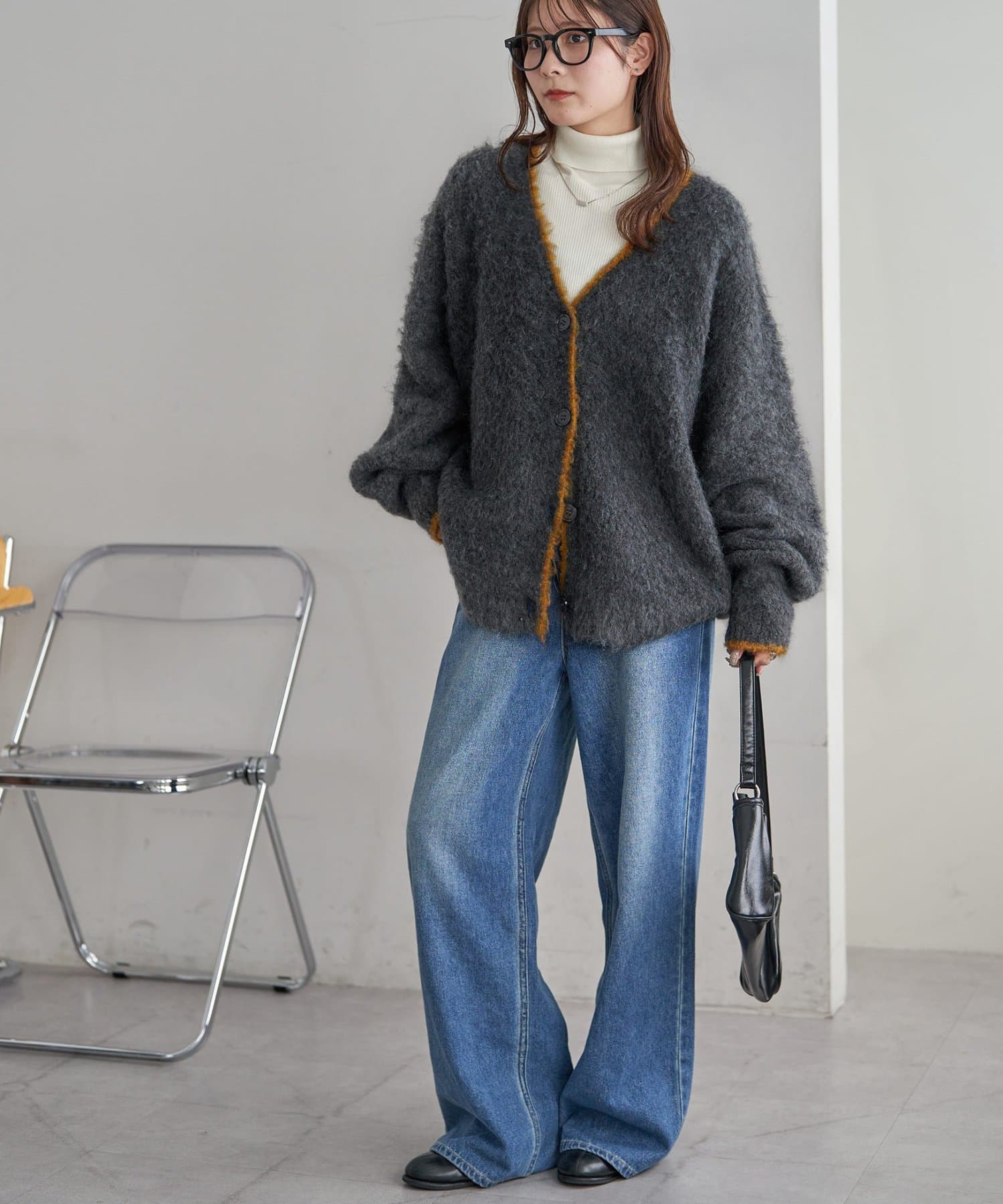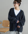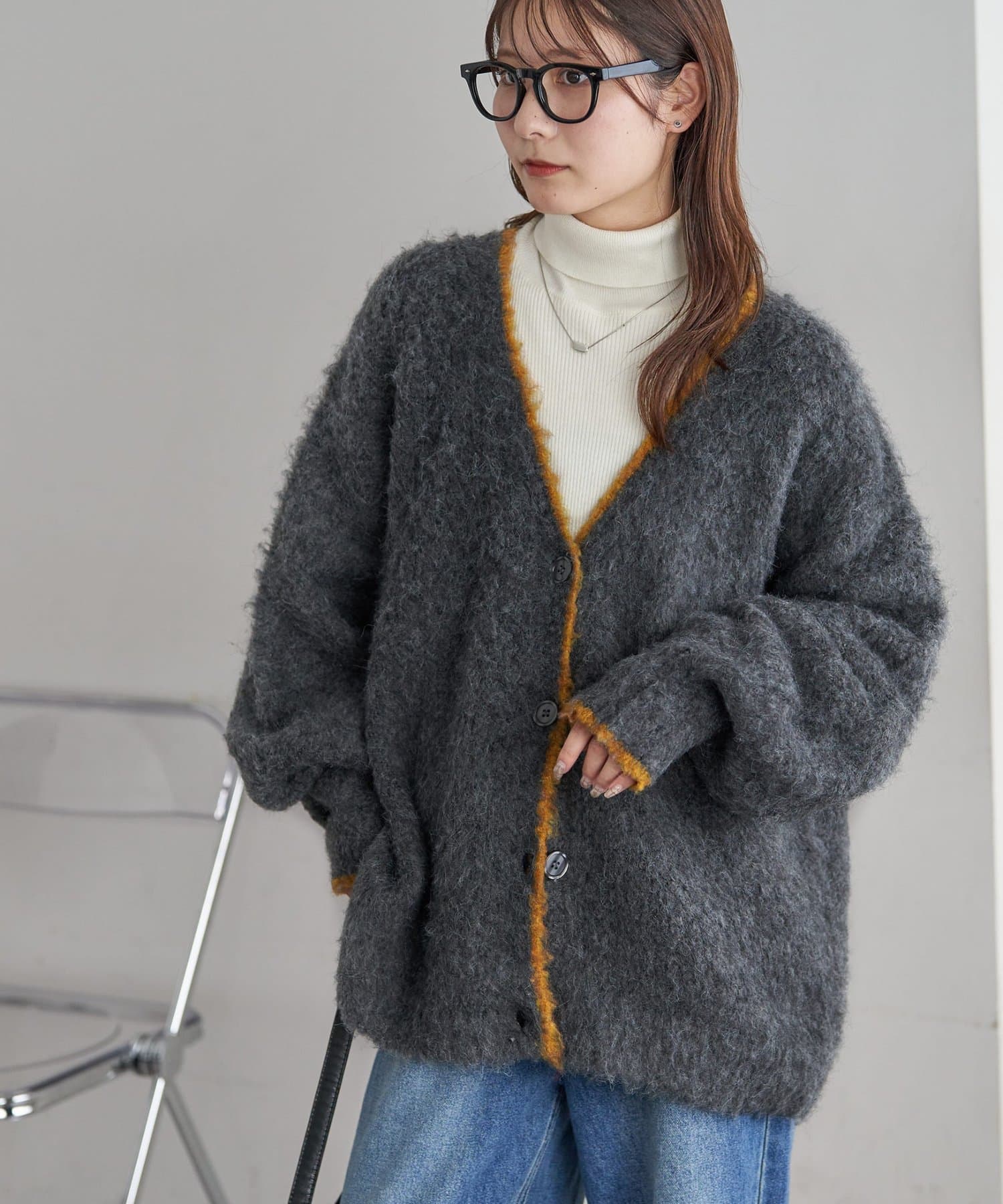【15色展開/柔らか素材】MIXブークレシャギー配色Vネックカーディガン《WEB限定》