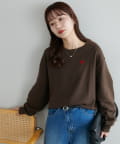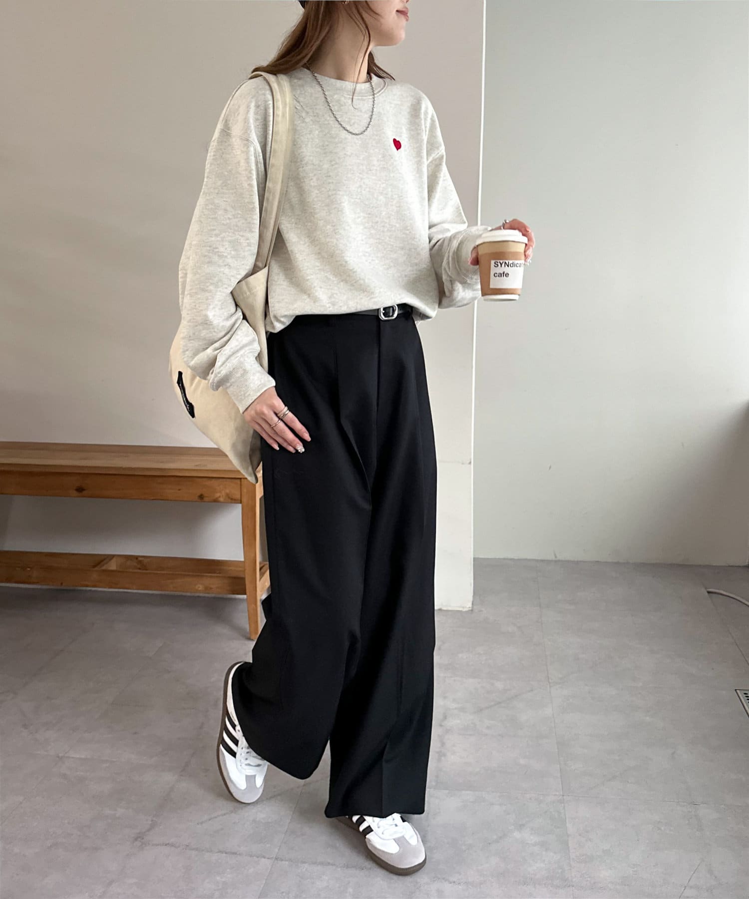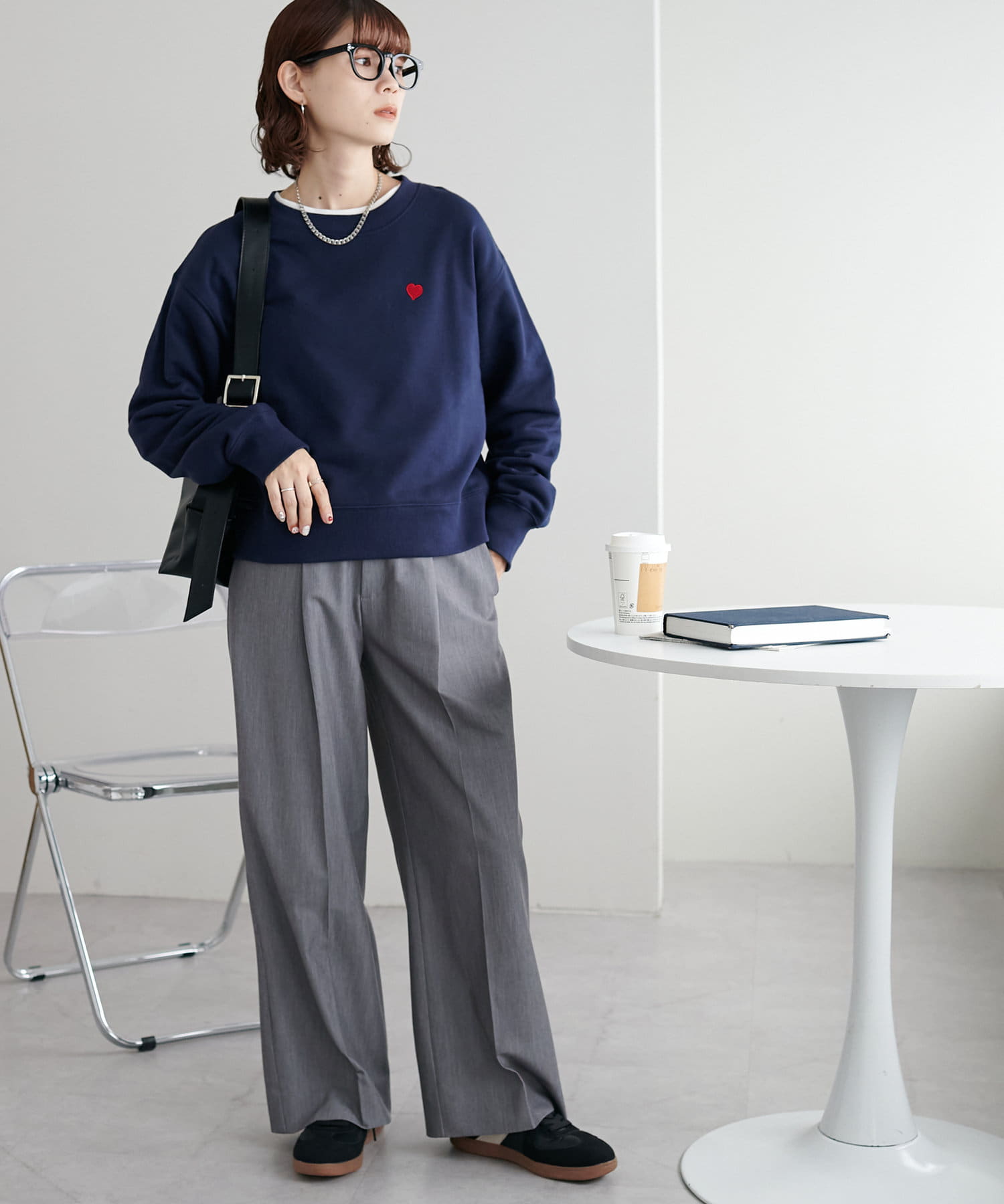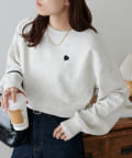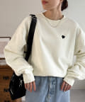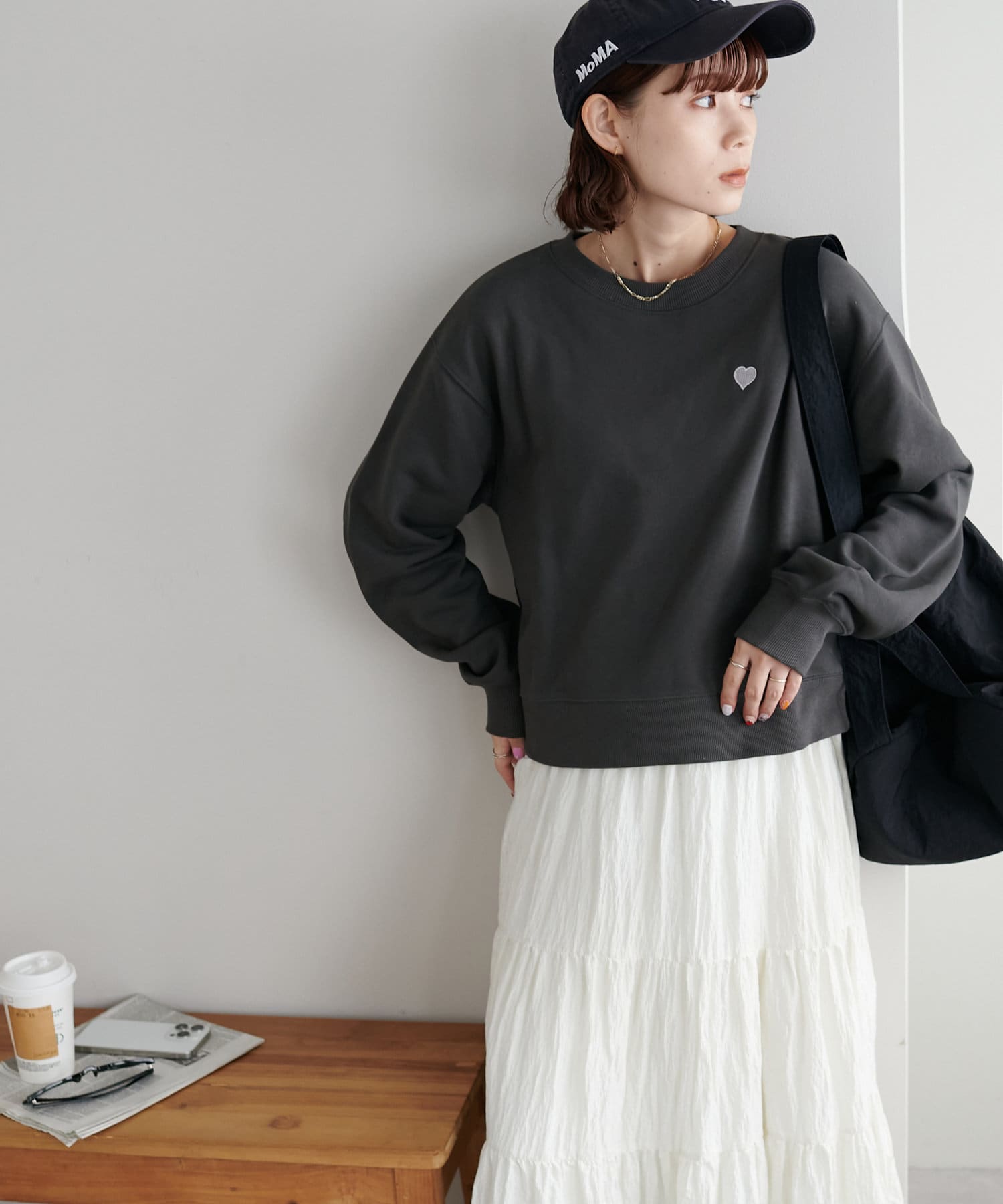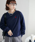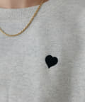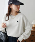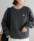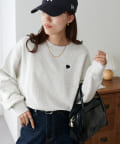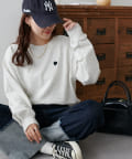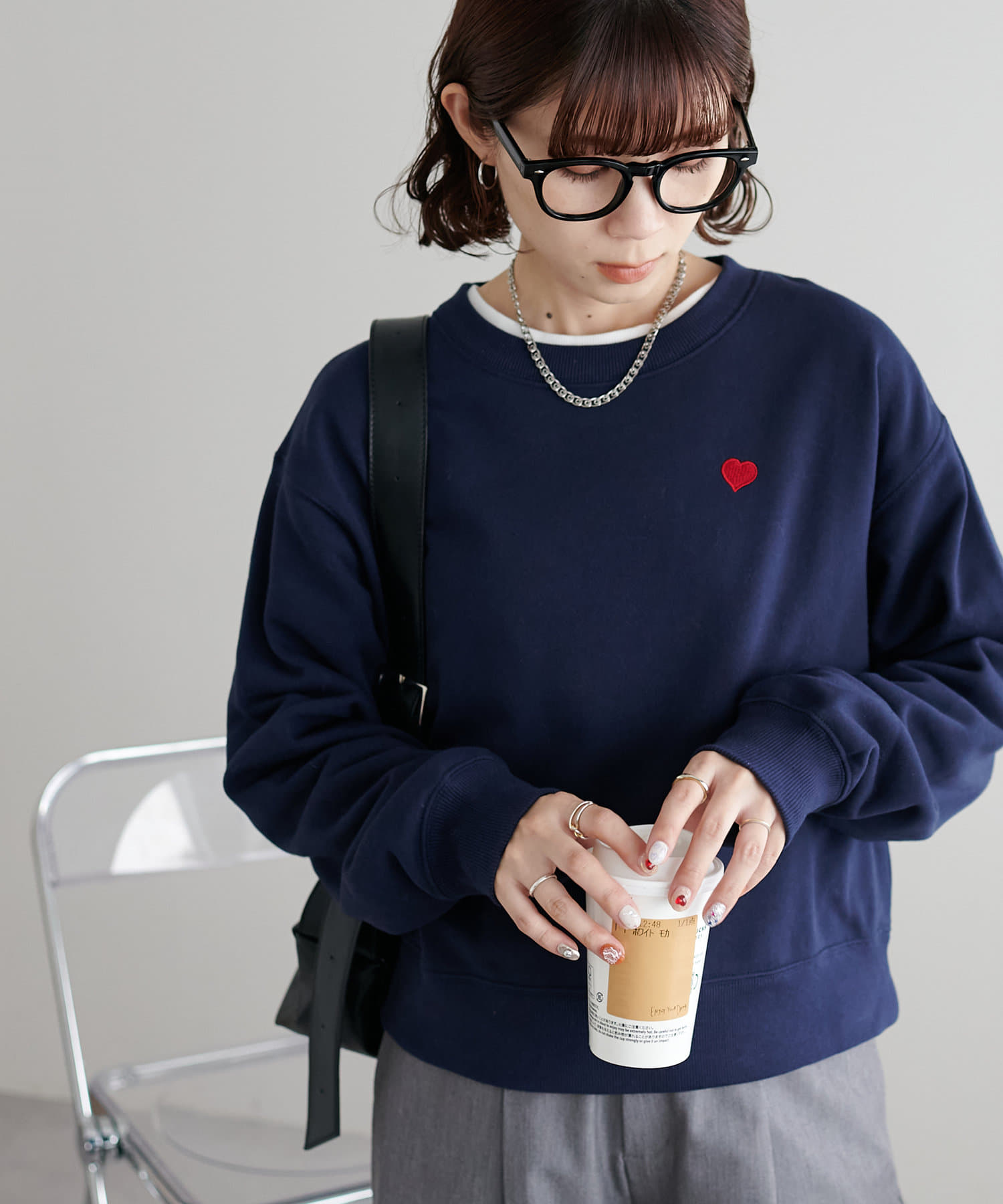 シンプルなデザインだからこそ、ハートのワンポイント刺繍が目を惹くスウェット。