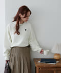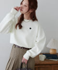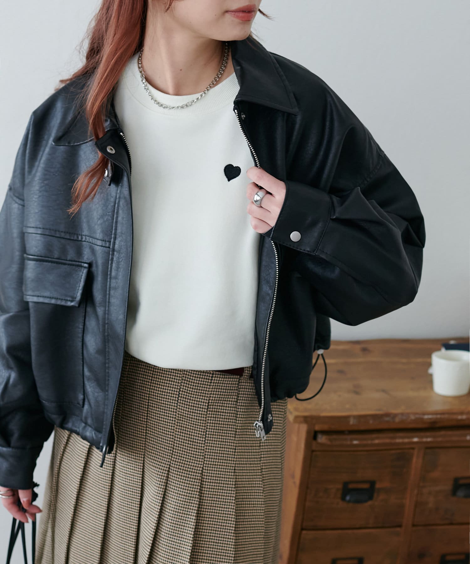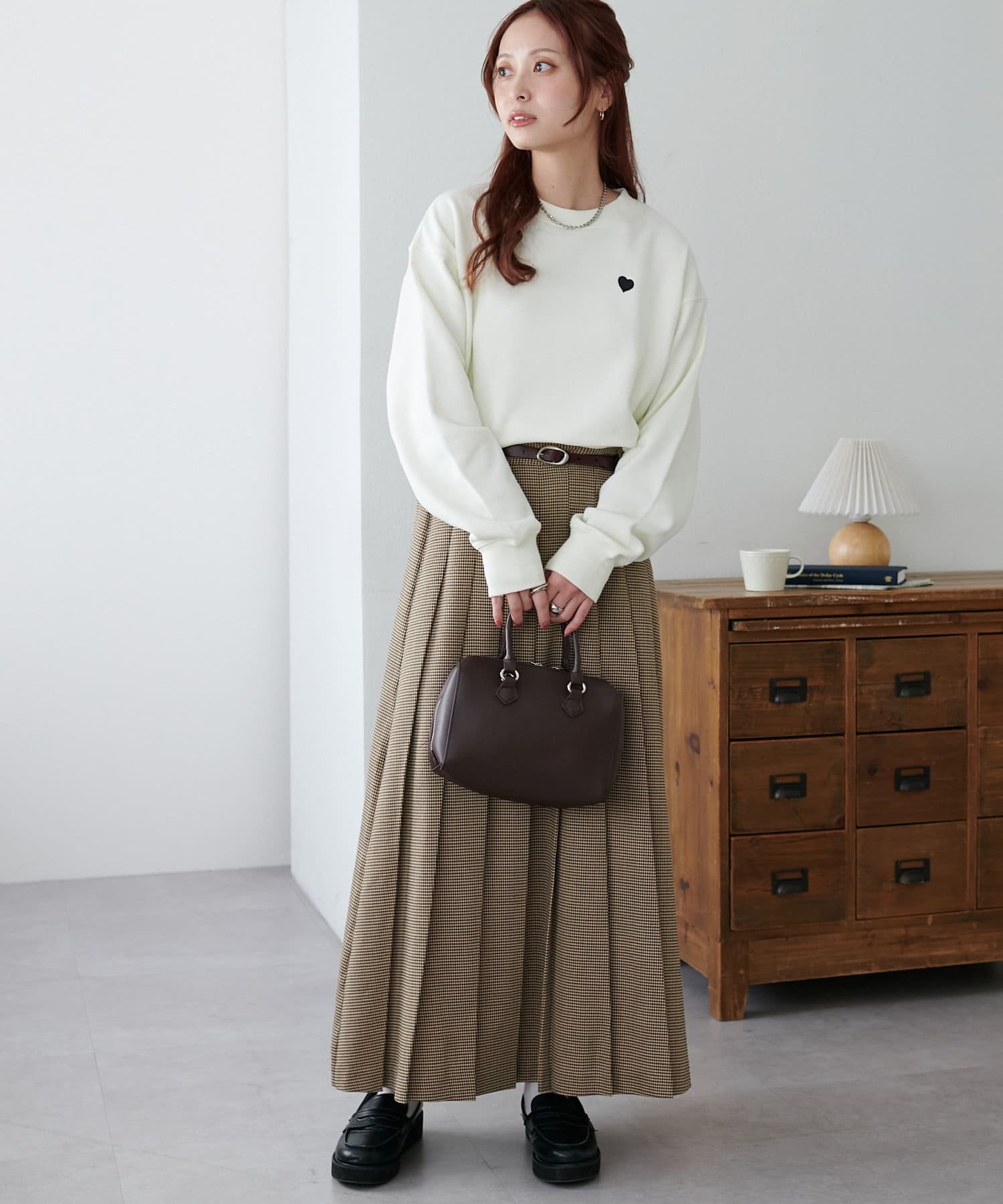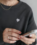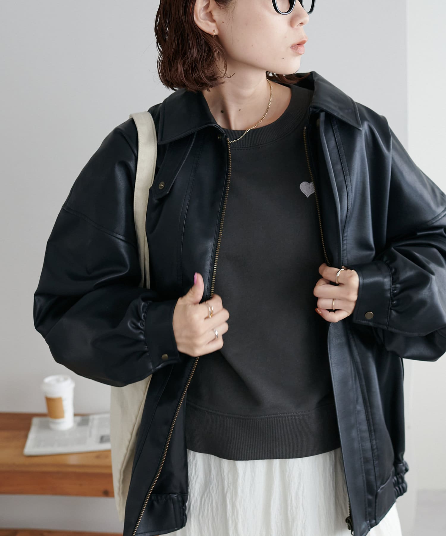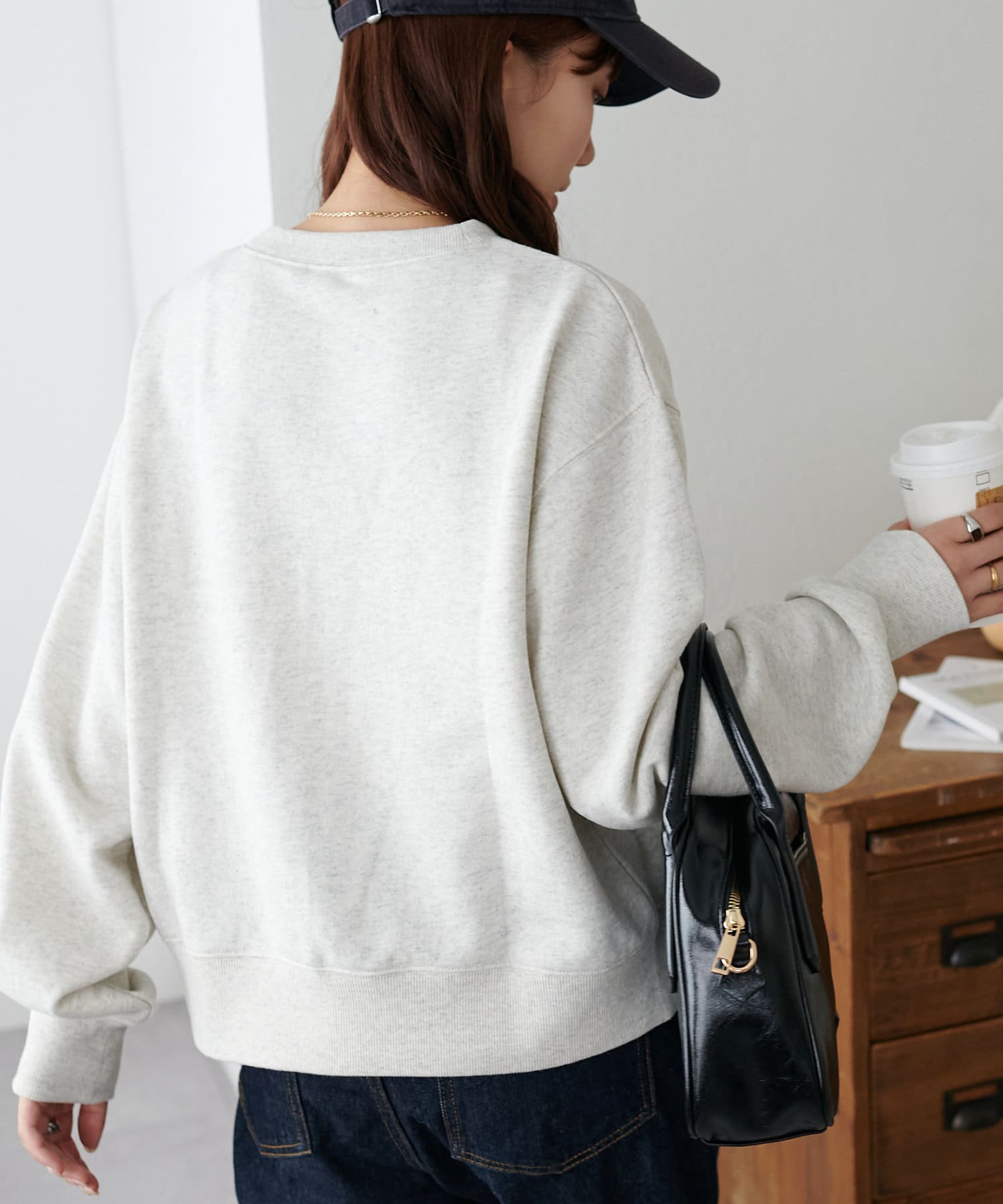 シンプルなデザインだからこそ、ハートのワンポイント刺繍が目を惹くスウェット。