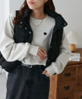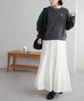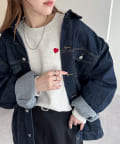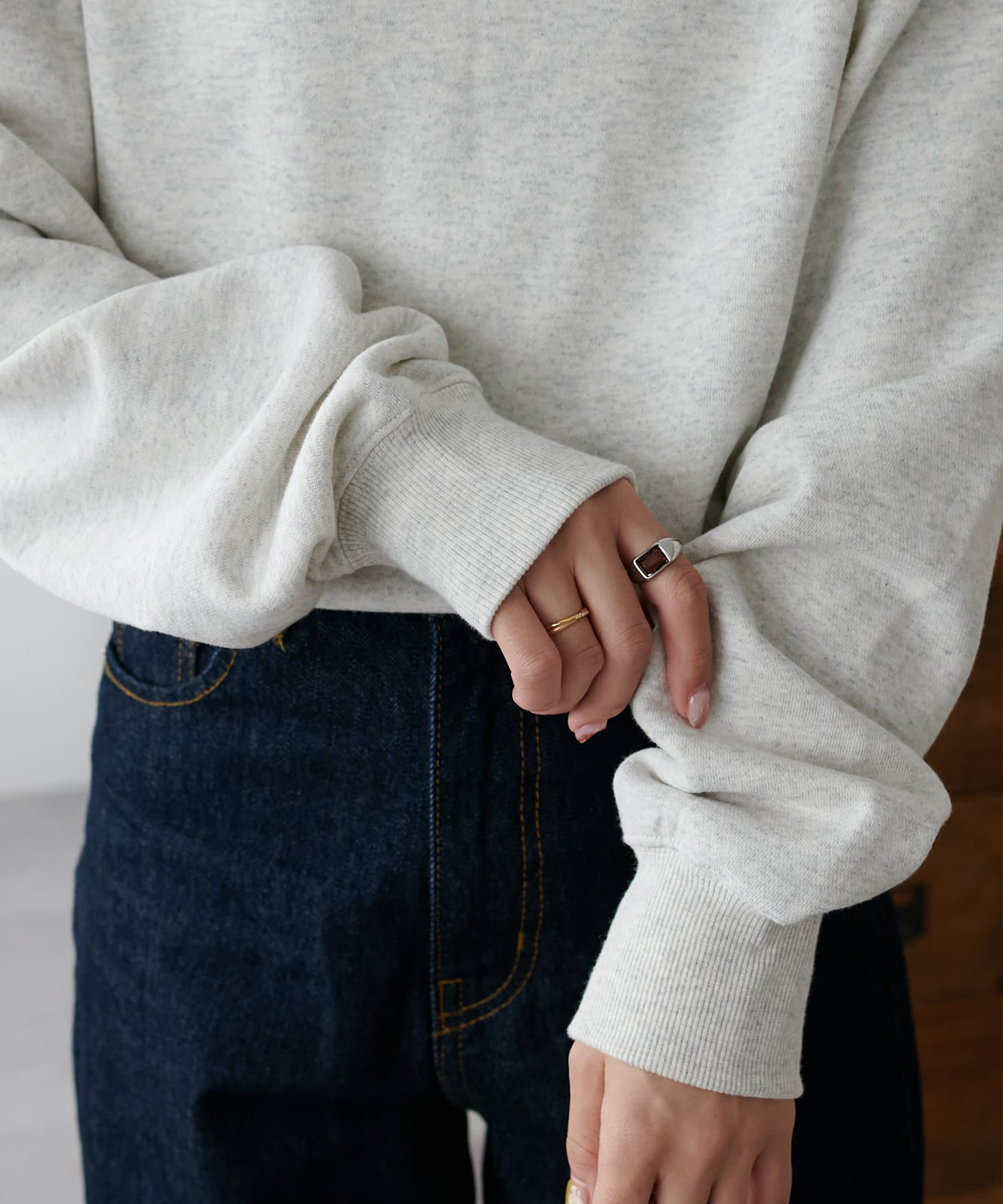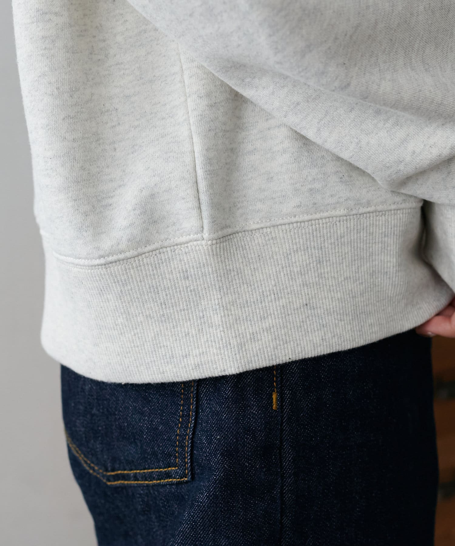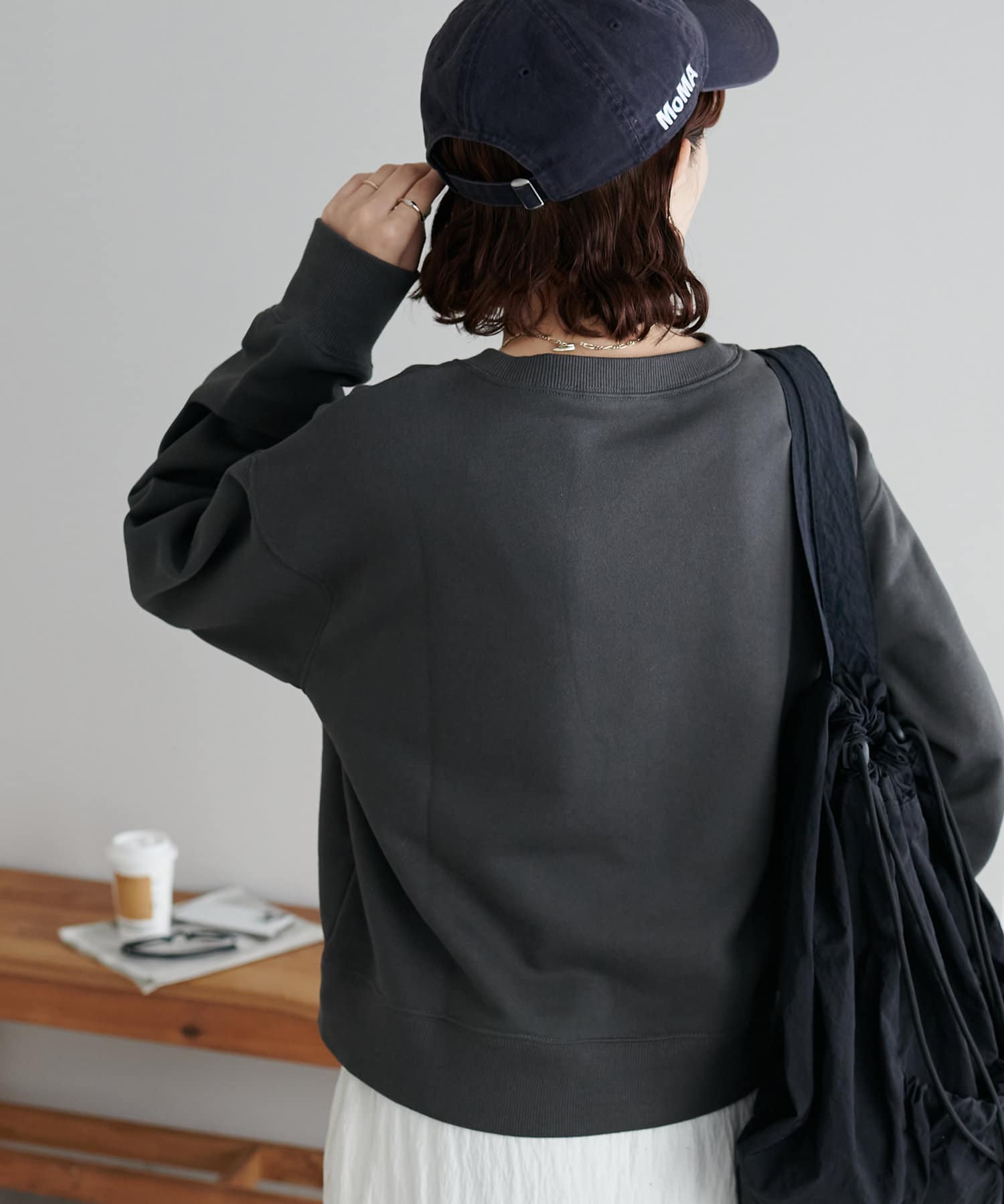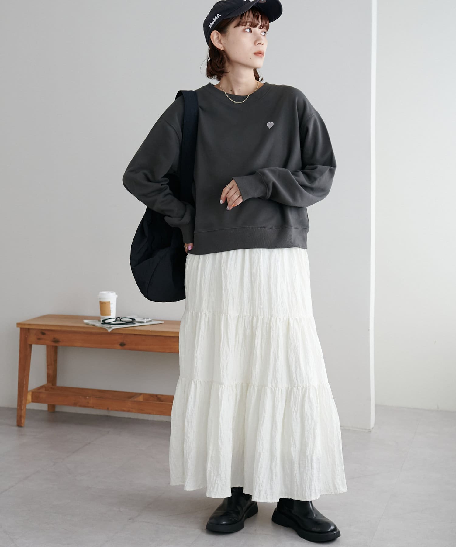 155㎝スタッフ:ベーシックなスウェットなのに、ハート刺繍のデザインがあることで特別感のある一枚!デニム合わせでもカジュアルになりすぎずに合わせていただけますよ◎