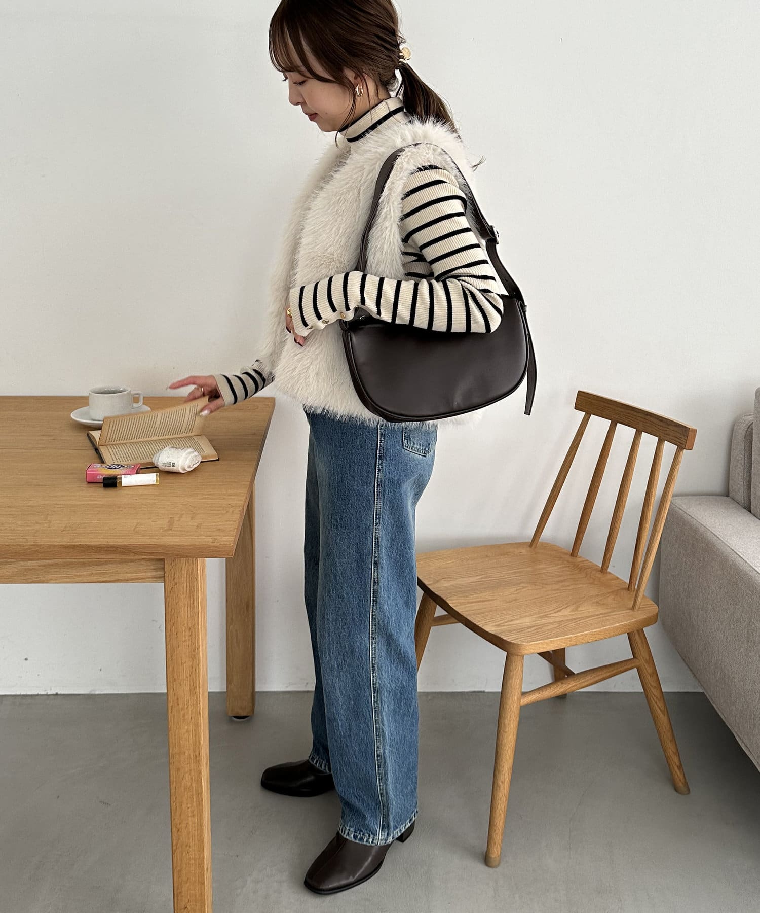 ころんとした半円のシルエットが可愛いショルダーバッグ。