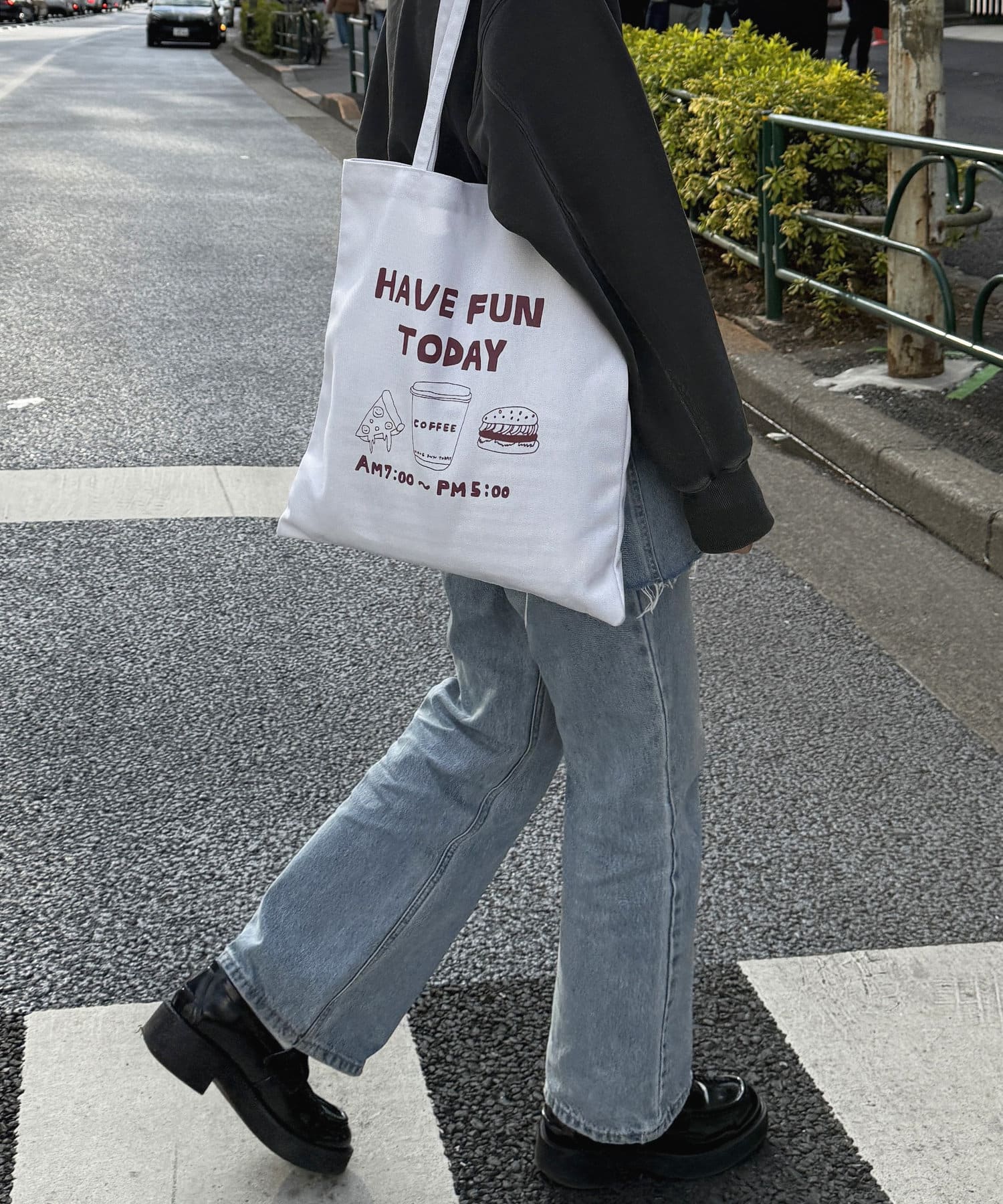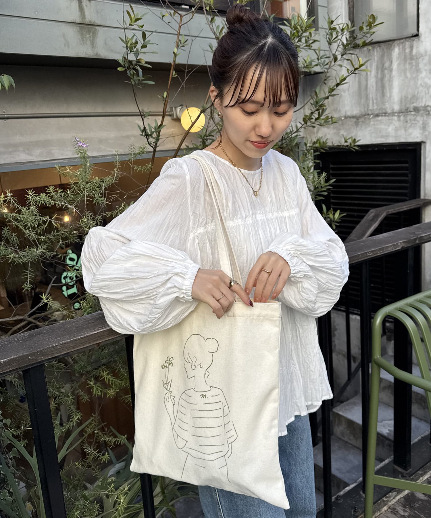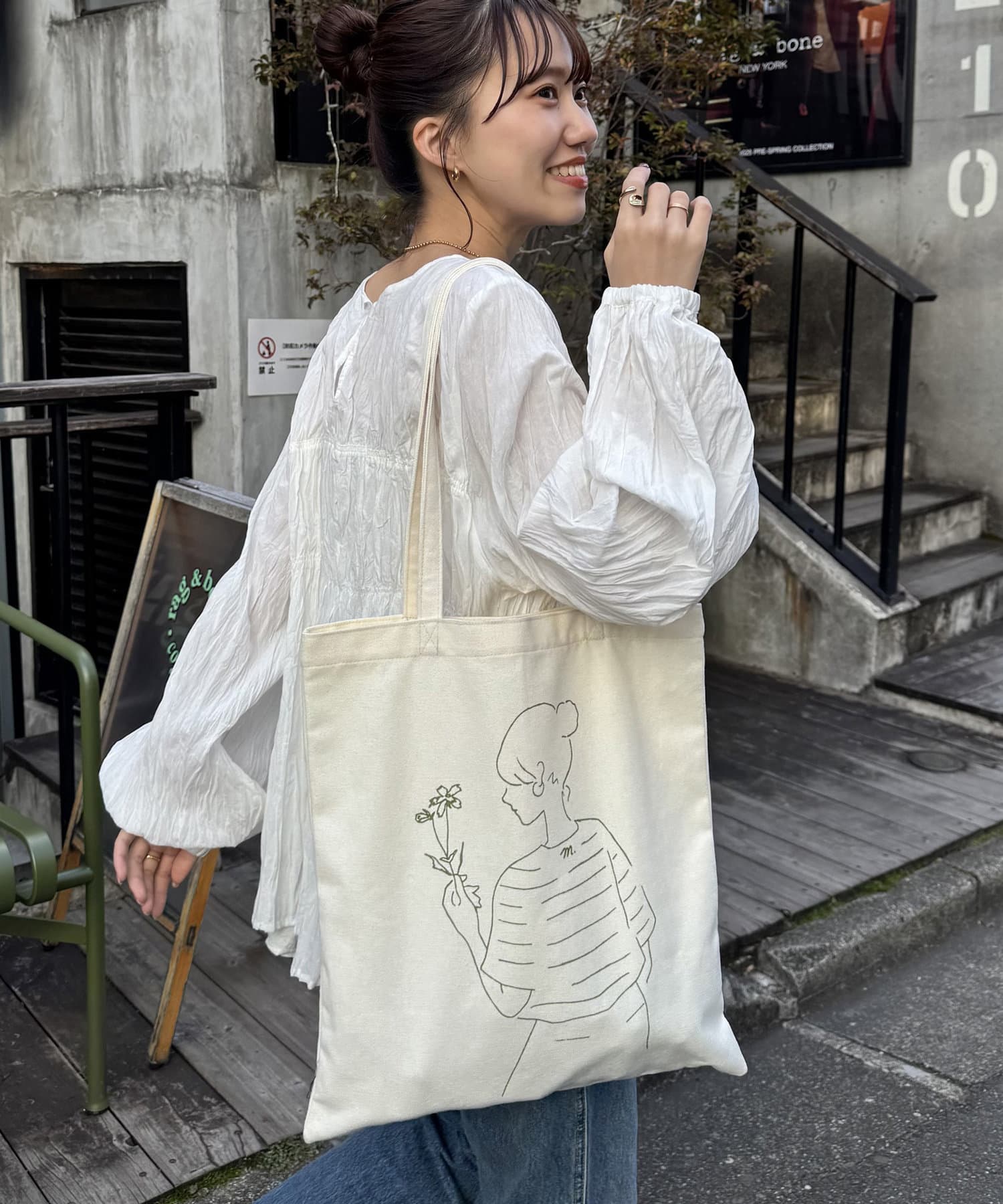 また、どんなコーデにも合うようにホワイトのトートにしました!