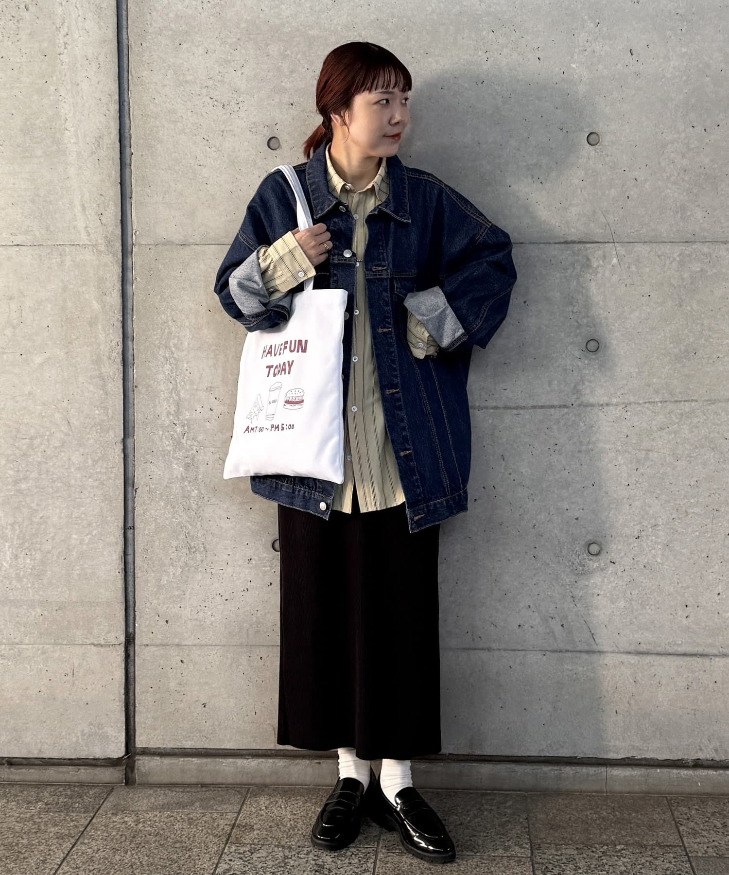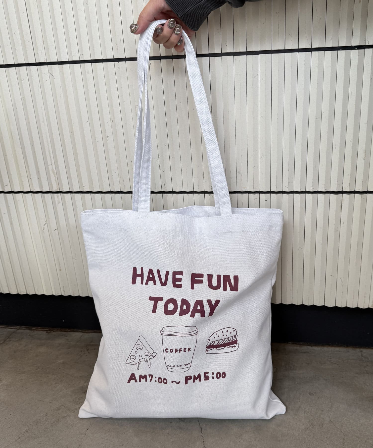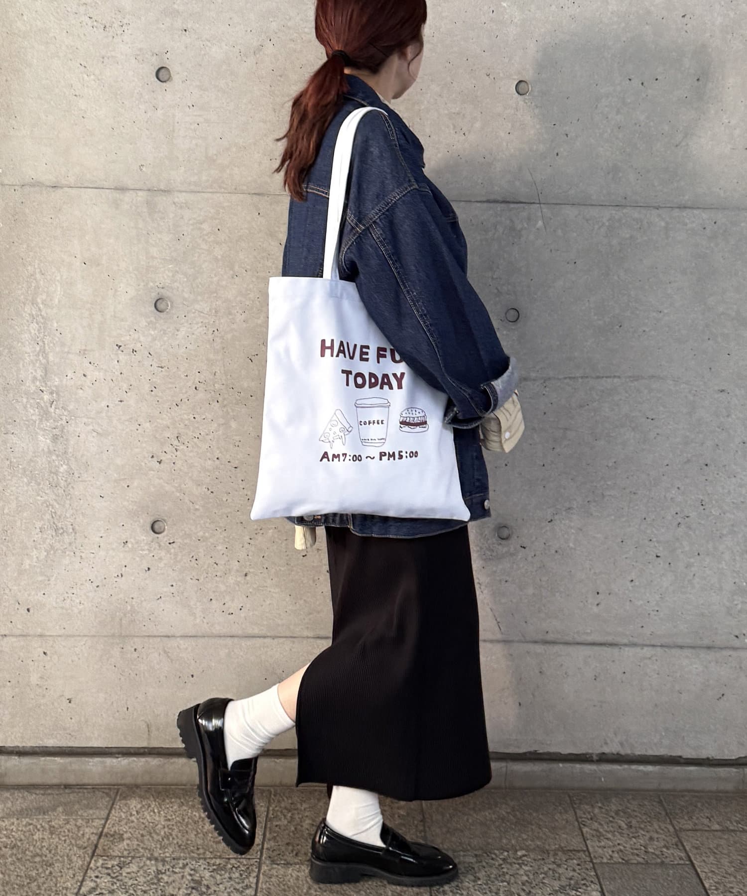 また、どんなコーデにも合うようにホワイトのトートにしました!