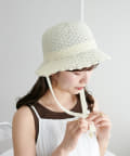 繊細なレース編みが目を引く、涼しげなスリットハット。サイドのスリットが程よい抜け感をプラスし、軽やかな印象に◎また、髪をまとめても被りやすくなっています♪通気性が良く、暑い季節でも快適に着用いただけます。トレンドのあごひも付きで、あご下で結んでも、ラフに垂らしてもサマになるデザインなので、機能性とオシャレを両立できます。