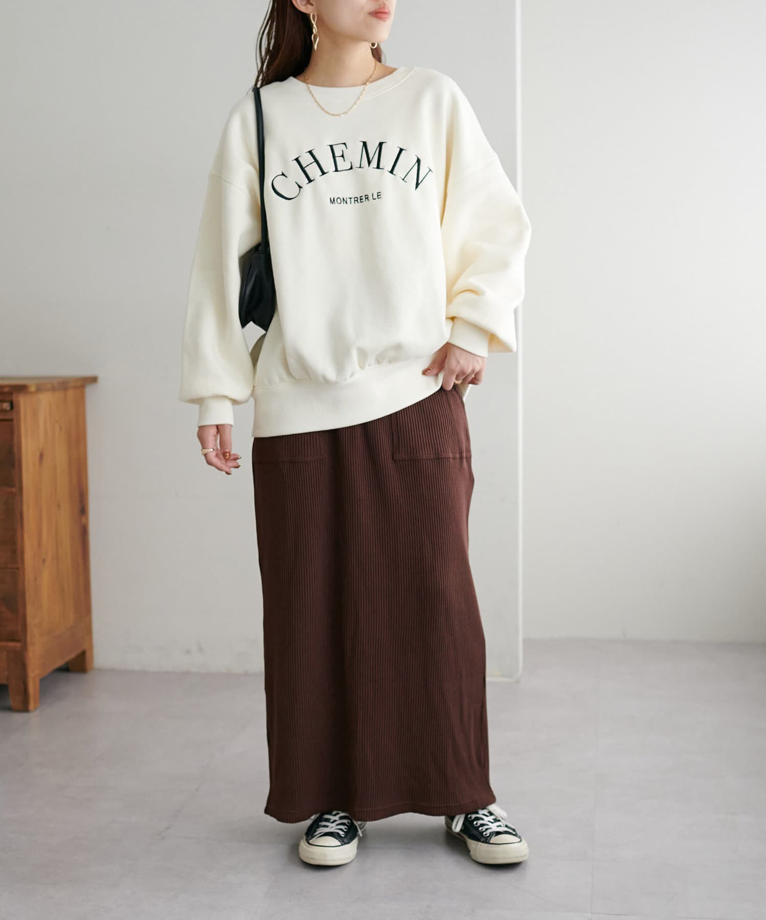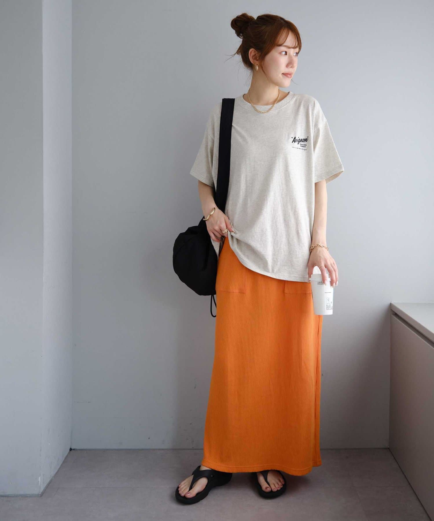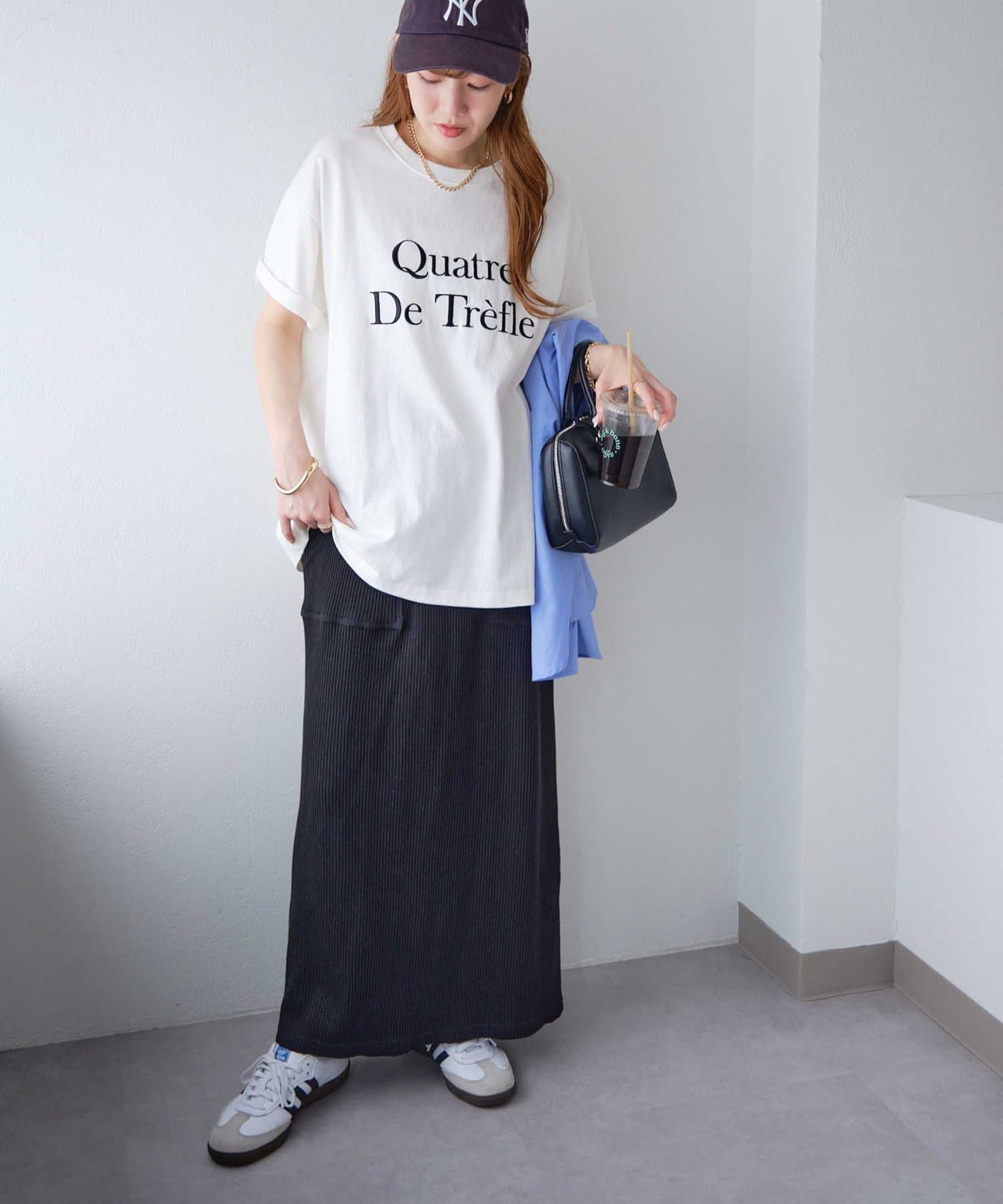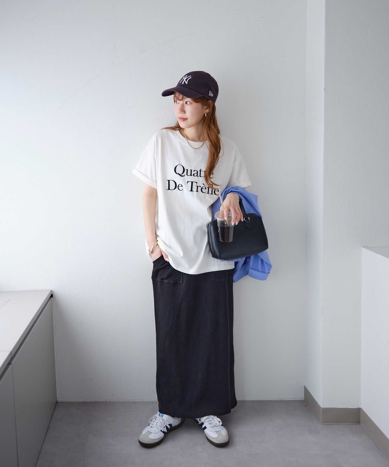 トップス選ばず合わせやすさ抜群のアイテムです!ロゴプリントのカットソーでカジュアルに仕上げたり、ボウタイブラウスやシャツアイテムと組み合わせてキレイめな着こなしにしたりと、コーディネートは様々です♪