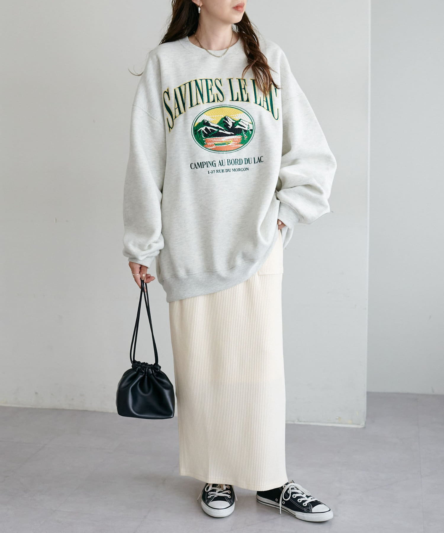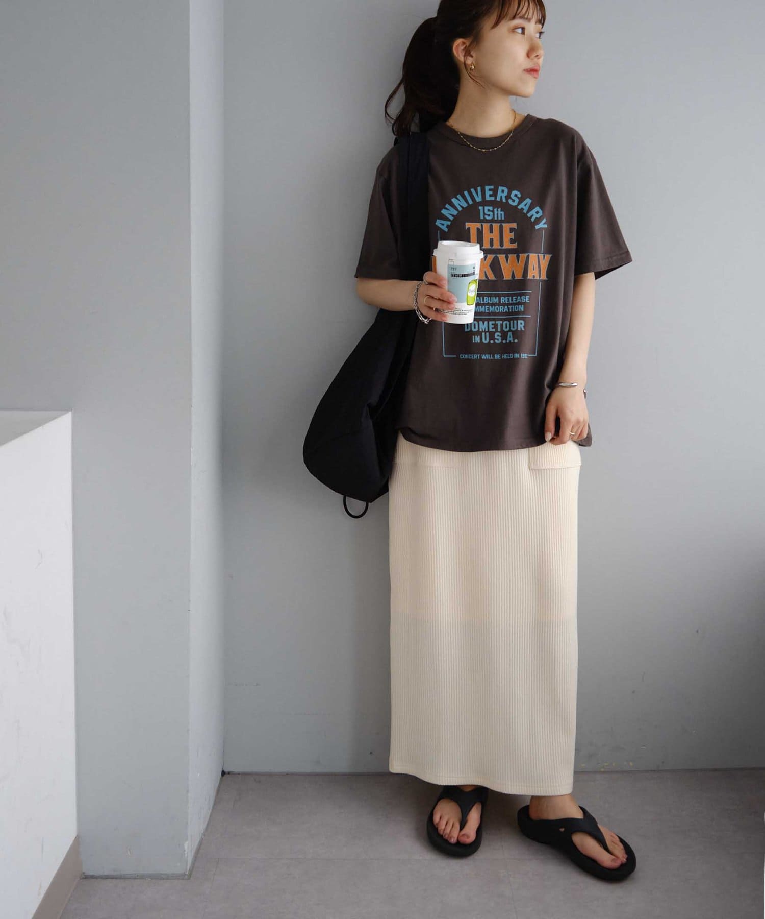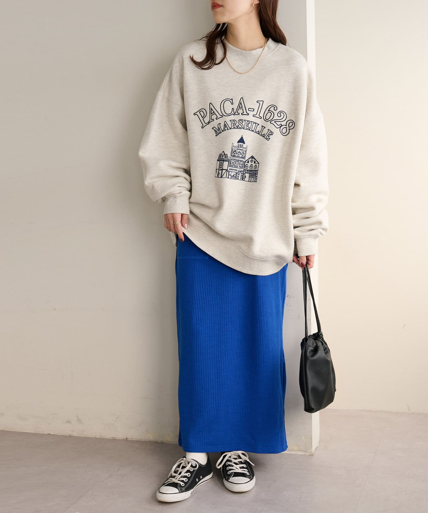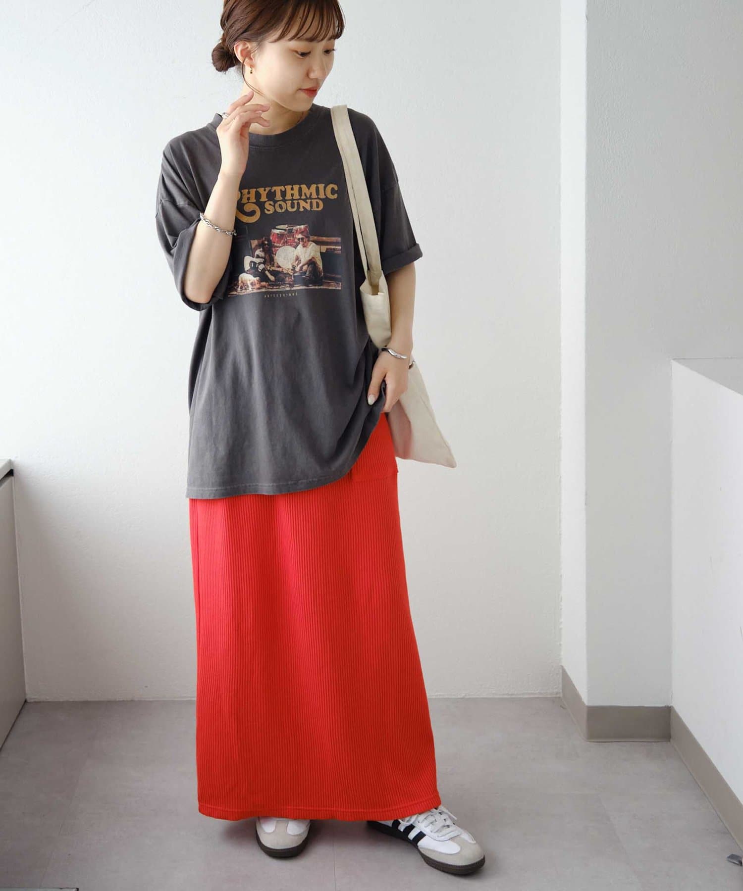 トップス選ばず合わせやすさ抜群のアイテムです!ロゴプリントのカットソーでカジュアルに仕上げたり、ボウタイブラウスやシャツアイテムと組み合わせてキレイめな着こなしにしたりと、コーディネートは様々です♪