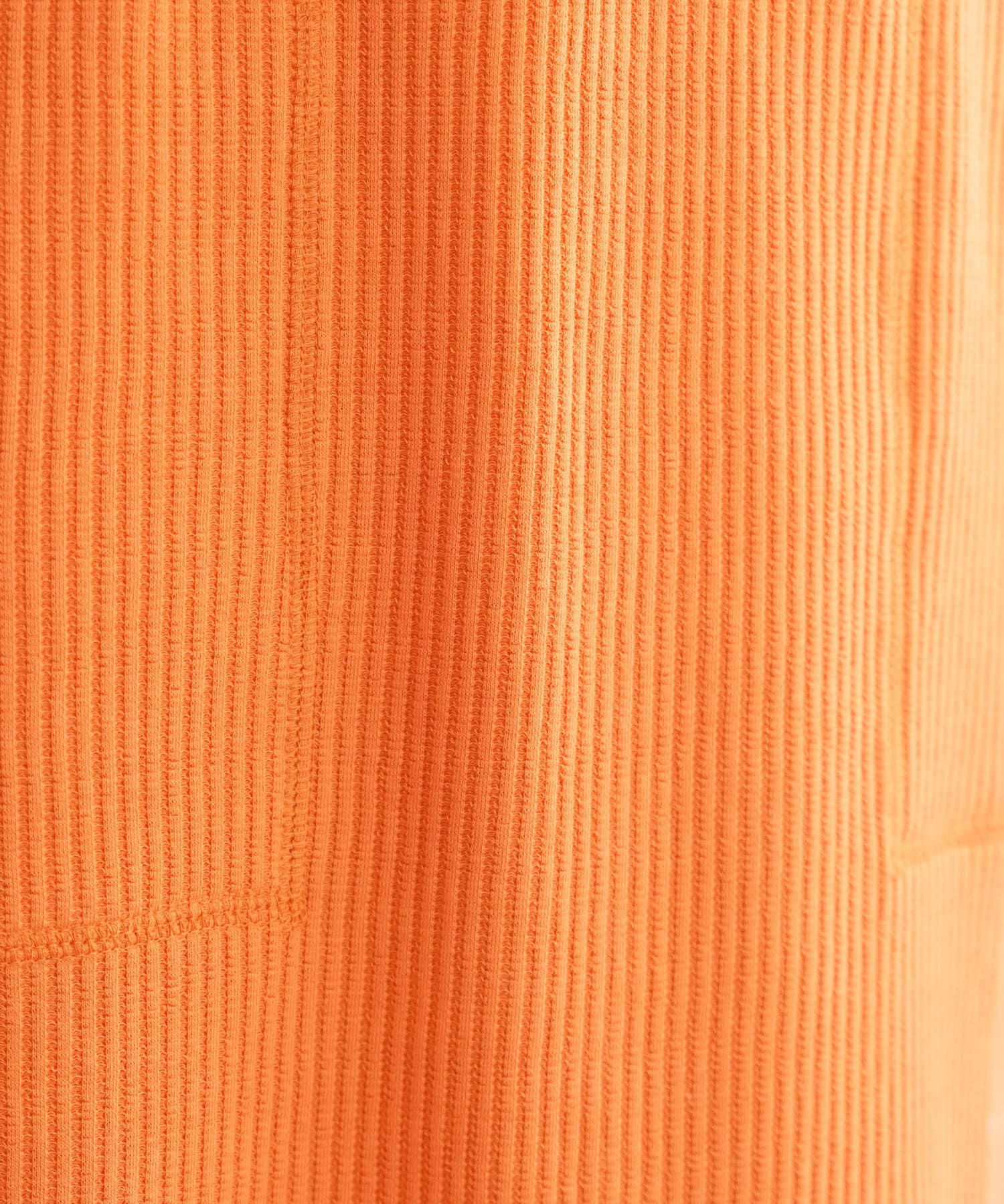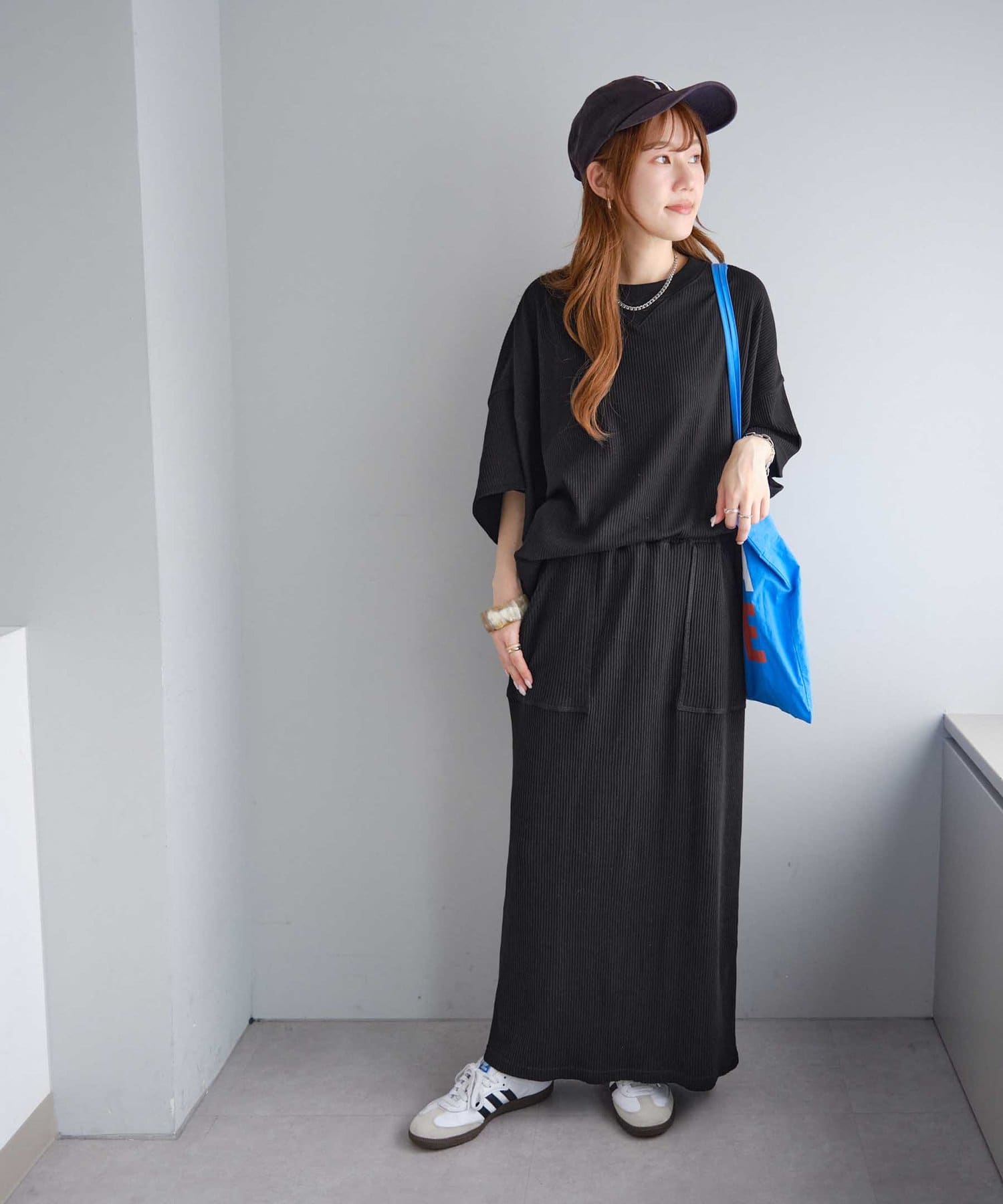 155cmスタッフ(Mサイズ着用):丈はフラット靴でもバランス良く着られます!ワッフル素材はほんのり立体感があるのでシンプルなトップスでも相性抜群◎