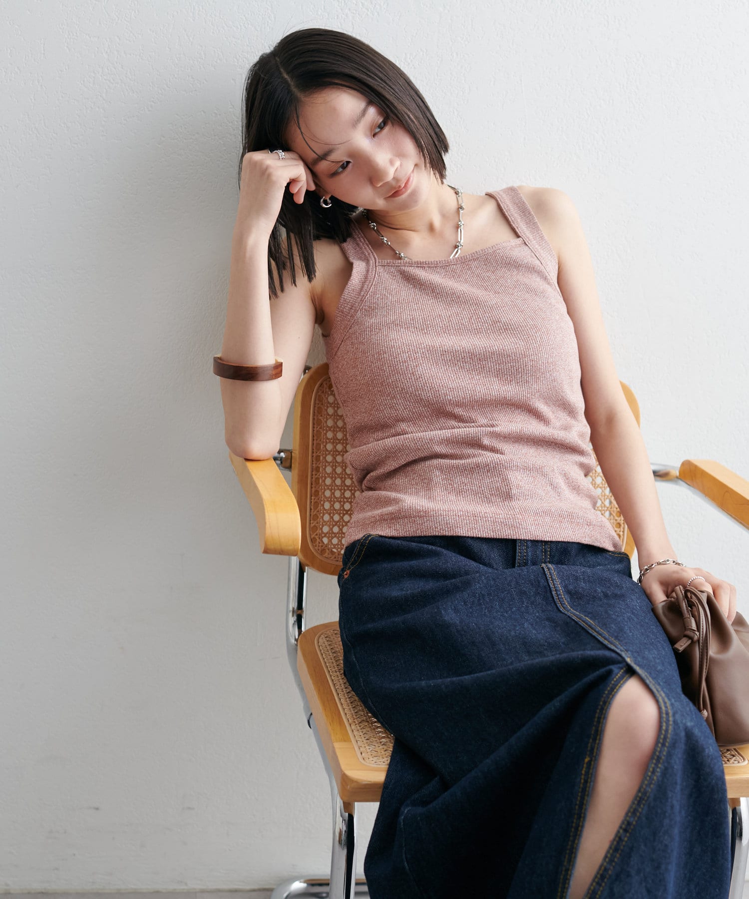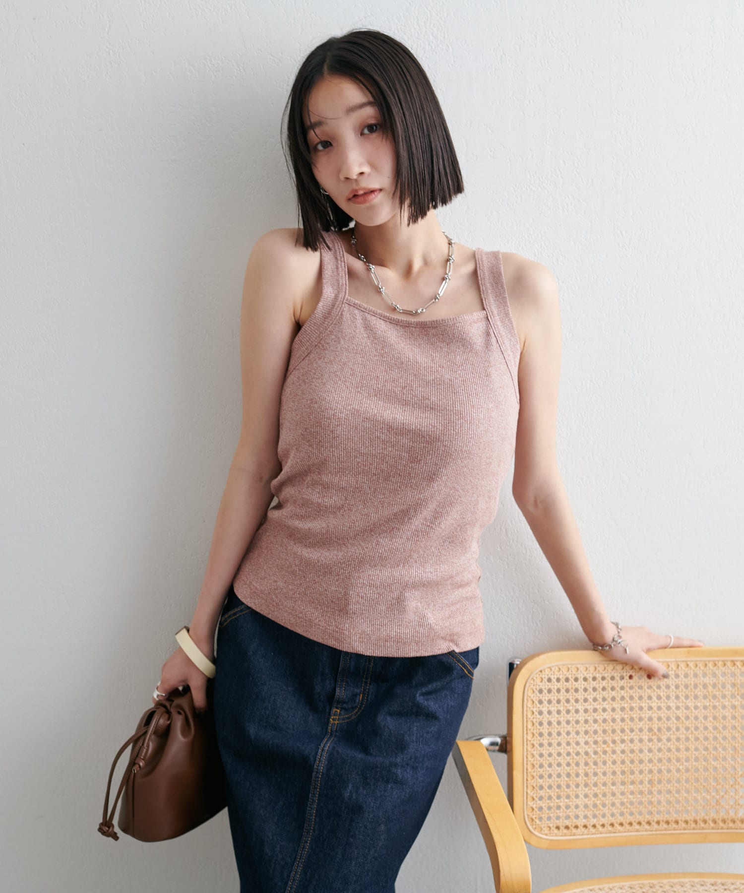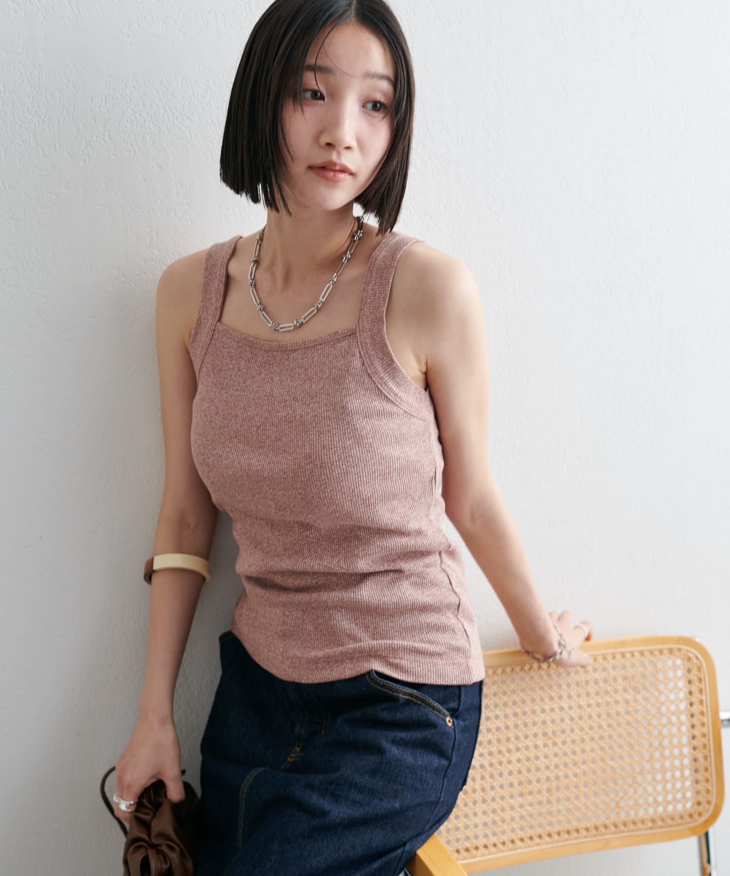 TOP > OUTLET > レディース > トップス > タンクトップ > 【Discoat】リブメランジスクエアタンクトップ